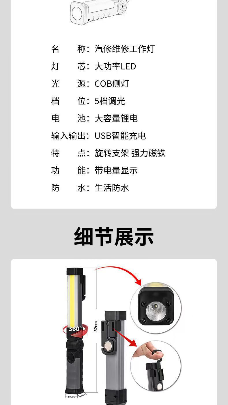 LED 접이식 작업 빛 USB 충전 다기능 COB 홍수 손전등 마그네틱 야외 자동차 수리 조명스토어 가기