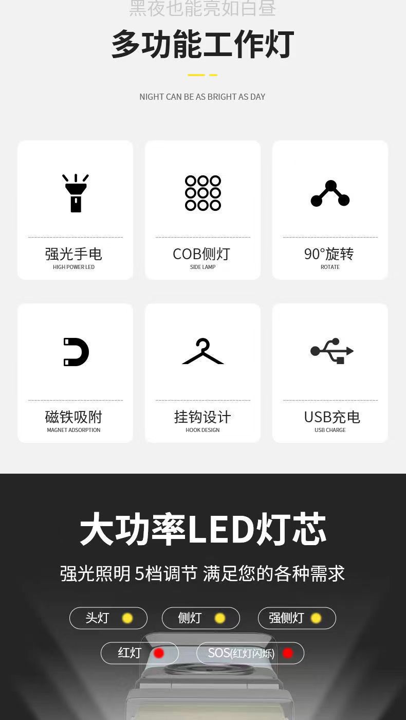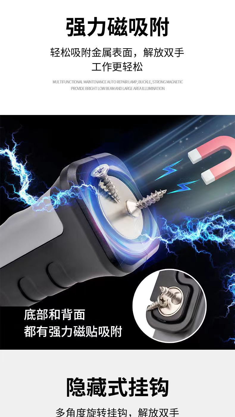 LED 접이식 작업 빛 USB 충전 다기능 COB 홍수 손전등 마그네틱 야외 자동차 수리 조명