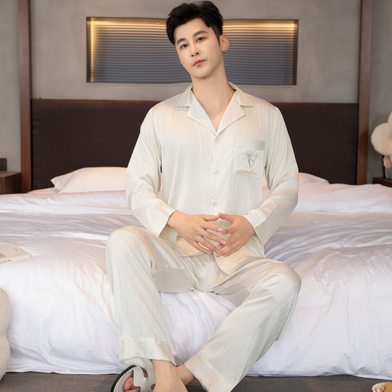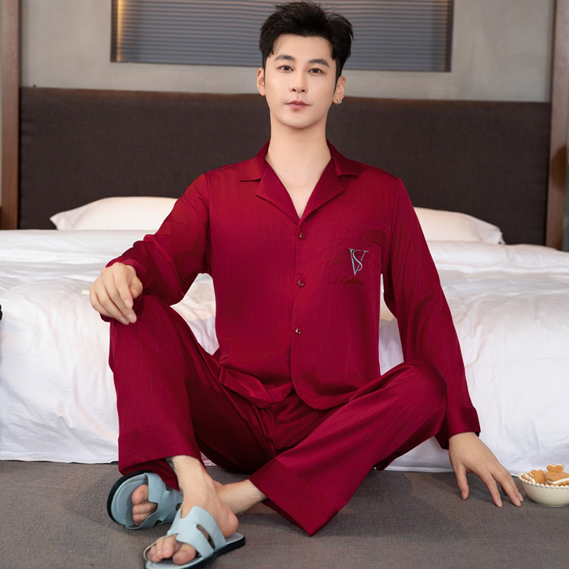 커플 얼음 실크 잠옷 여성 봄, 가을 긴팔 바지 인터넷 연예인 정장 겉옷 남성 레드 웨딩 홈웨어 겨울스토어 가기