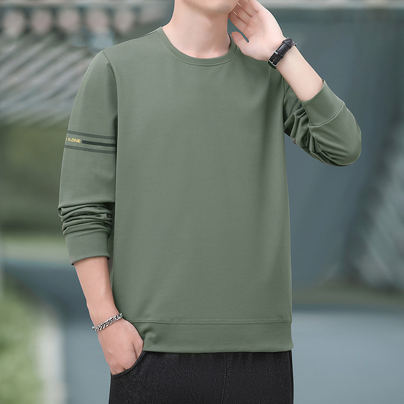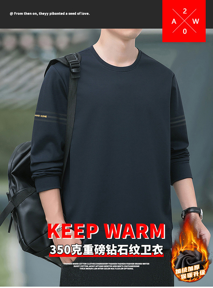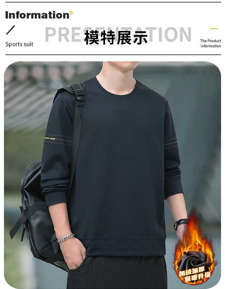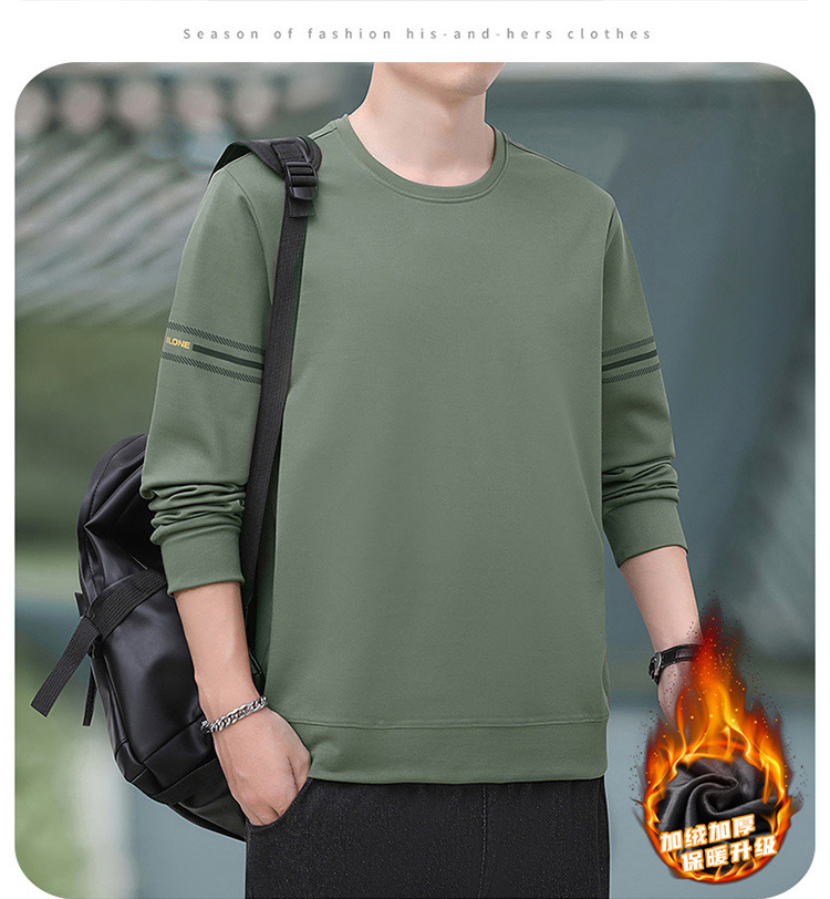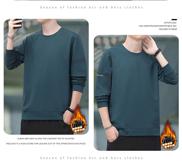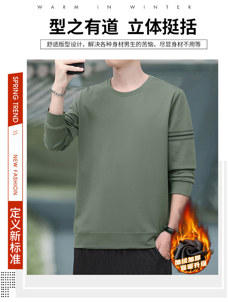 2024 년 새로운 가을과 겨울 둥근 목면 스웨터는 기모 두껍고 중년의 긴 소매 티셔츠 남성용 의류스토어 가기