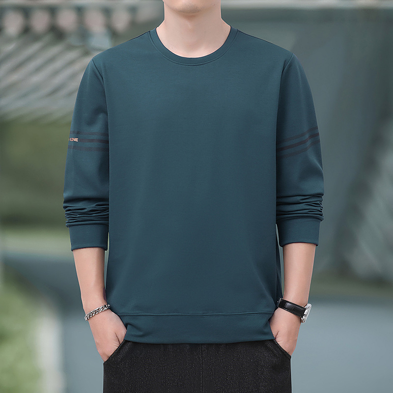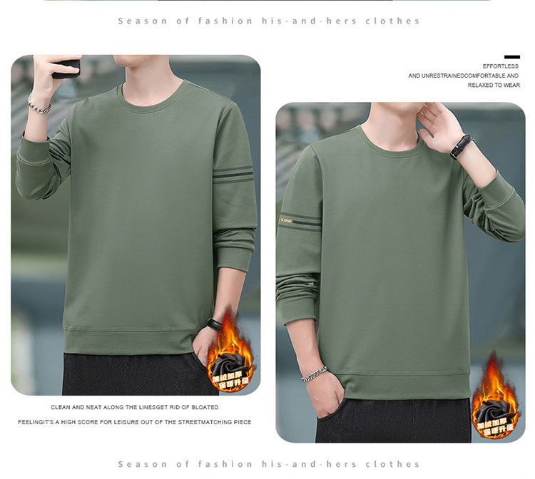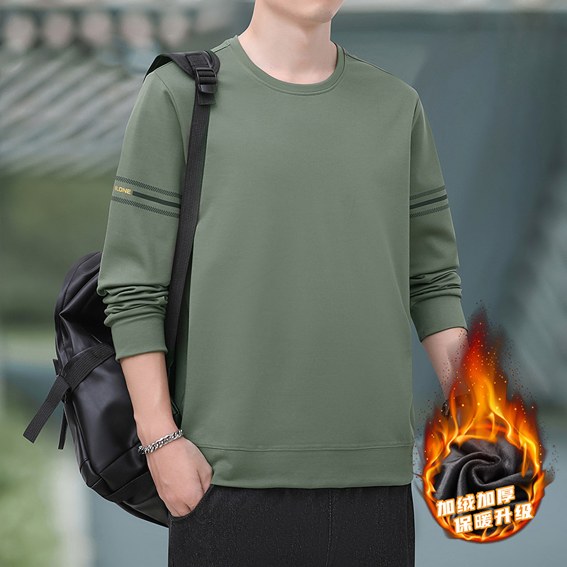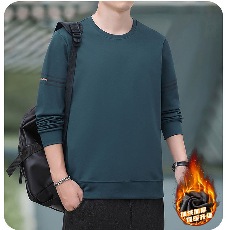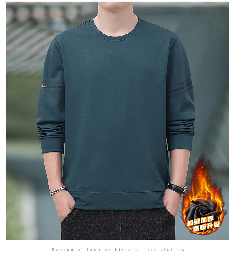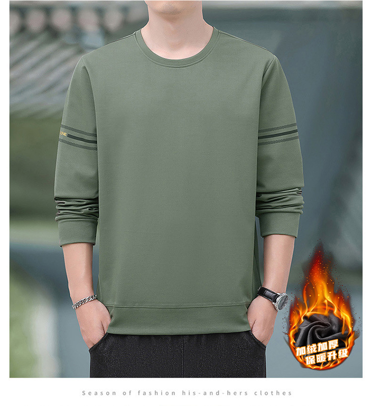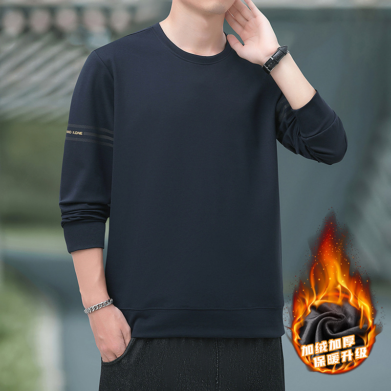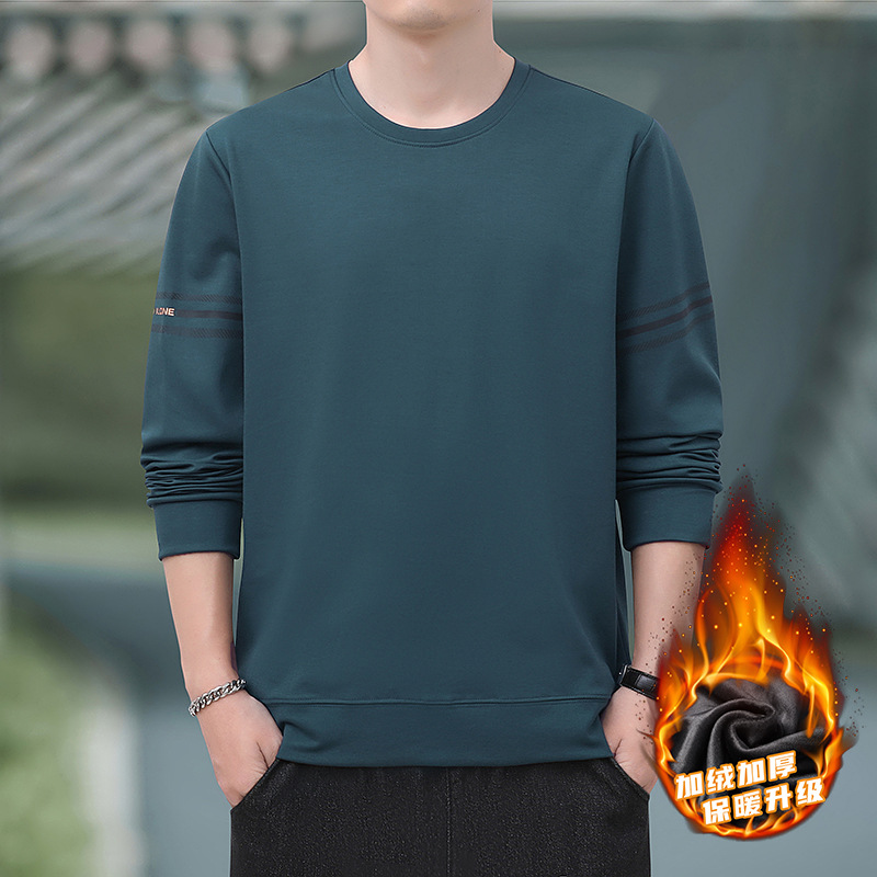 2024 년 새로운 가을과 겨울 둥근 목면 스웨터는 기모 두껍고 중년의 긴 소매 티셔츠 남성용 의류