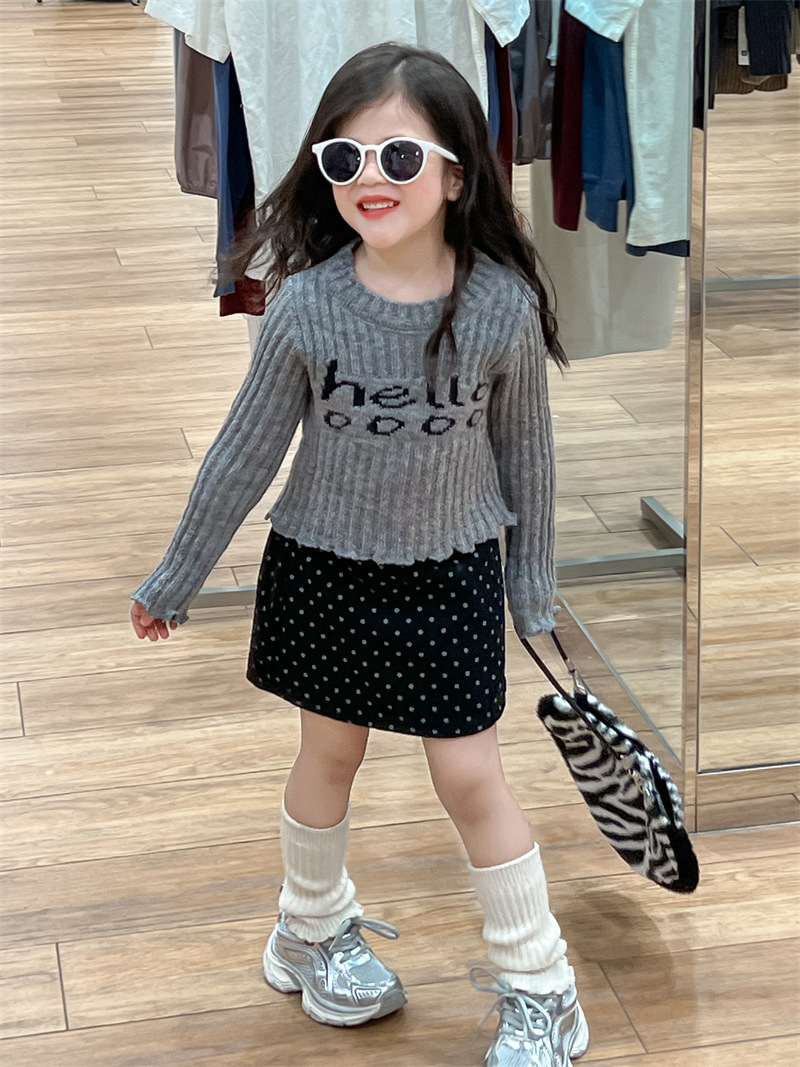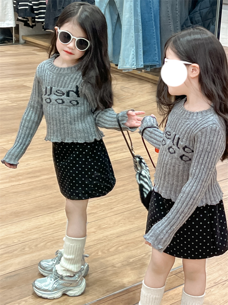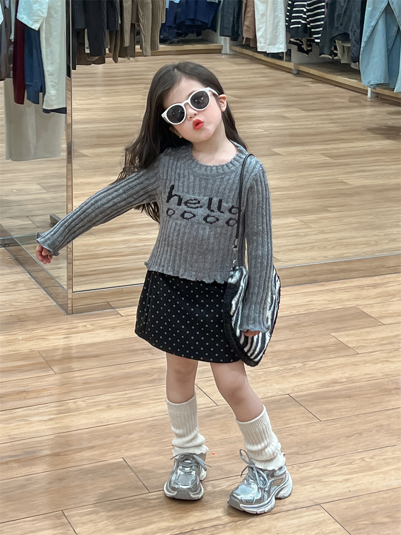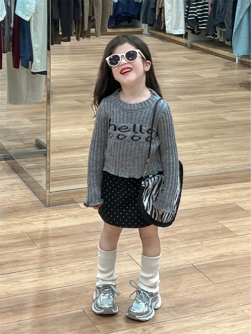 한국 아동복 소녀의 편지 니트 스웨터 2024 가을 빈티지 미국 짧은 긴 소매 내베이스 셔츠스토어 가기