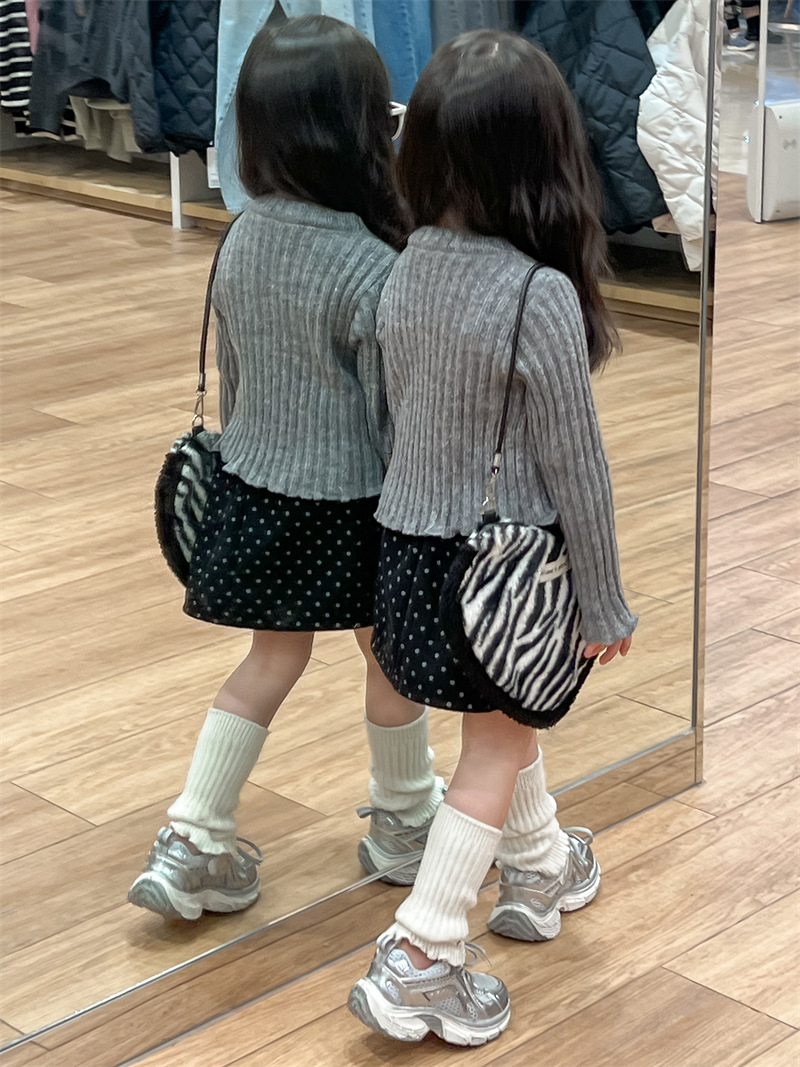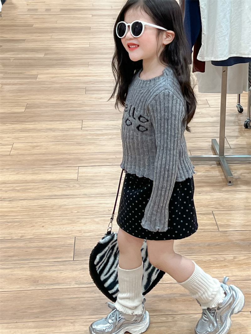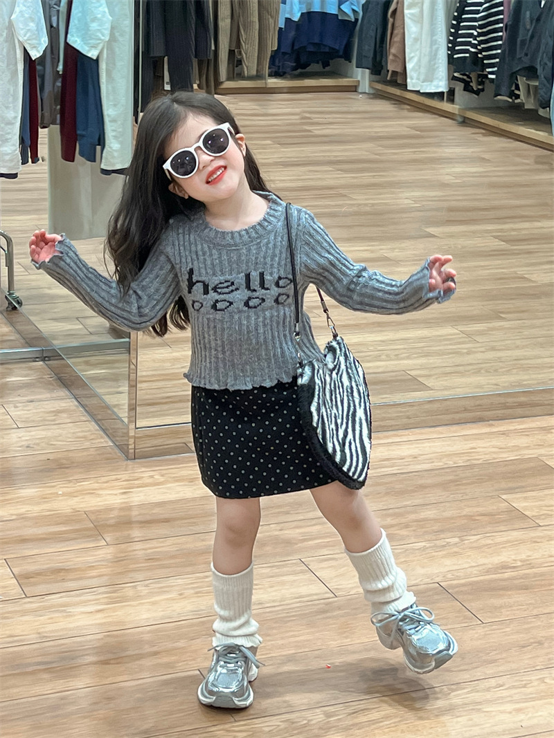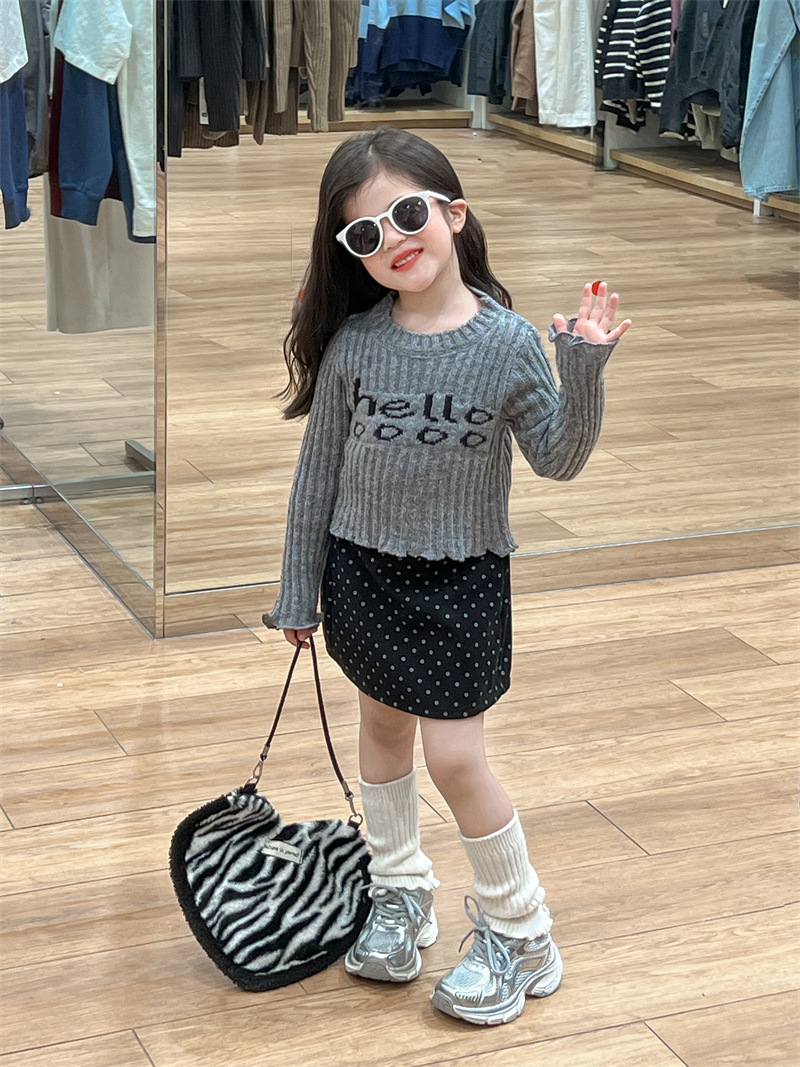 한국 아동복 소녀의 편지 니트 스웨터 2024 가을 빈티지 미국 짧은 긴 소매 내베이스 셔츠스토어 가기