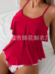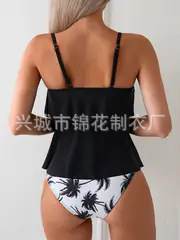 국경 간 유럽과 미국 새로운 대외 무역 분할 인쇄 된 연꽃 잎 비행 비키니 살 높은 허리 여성 수영복