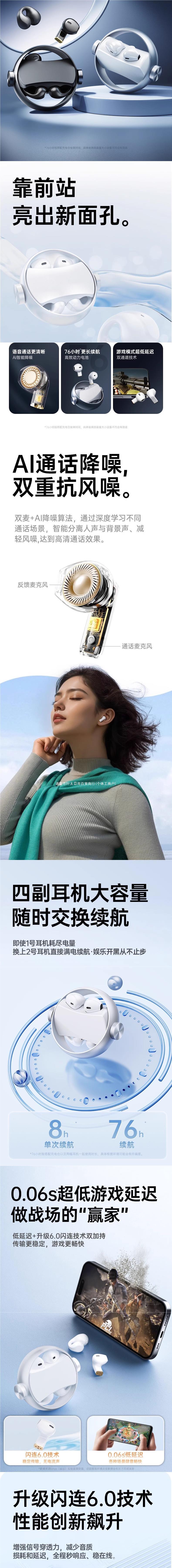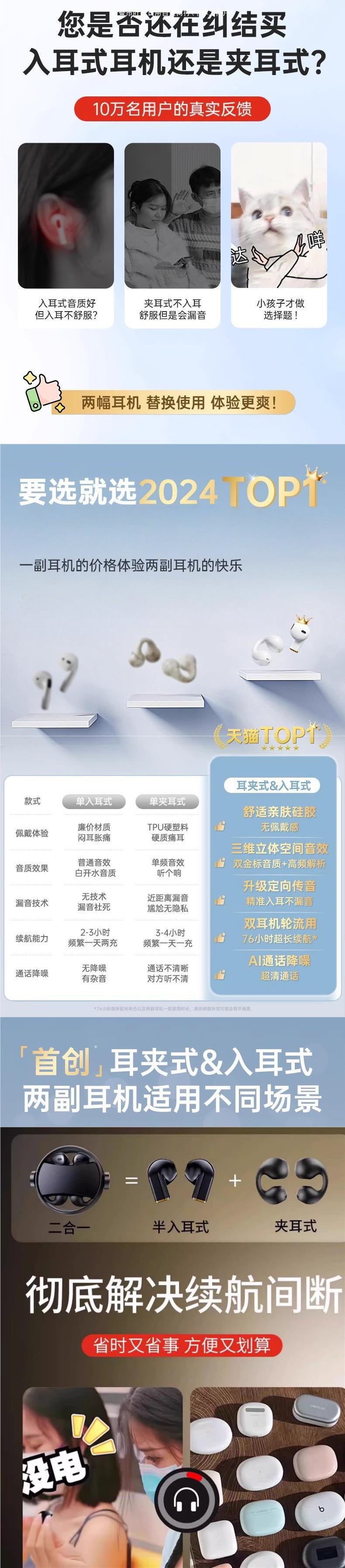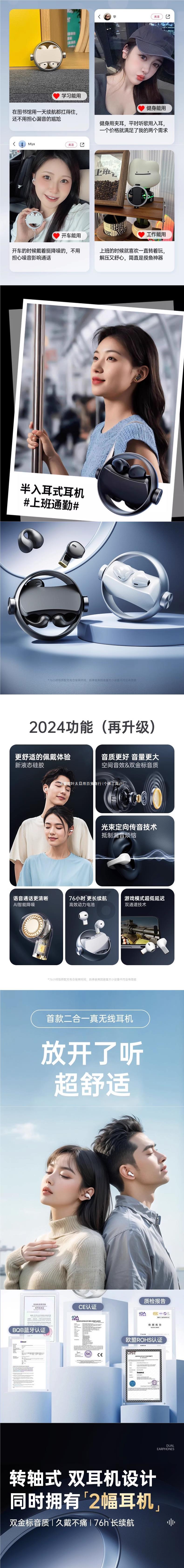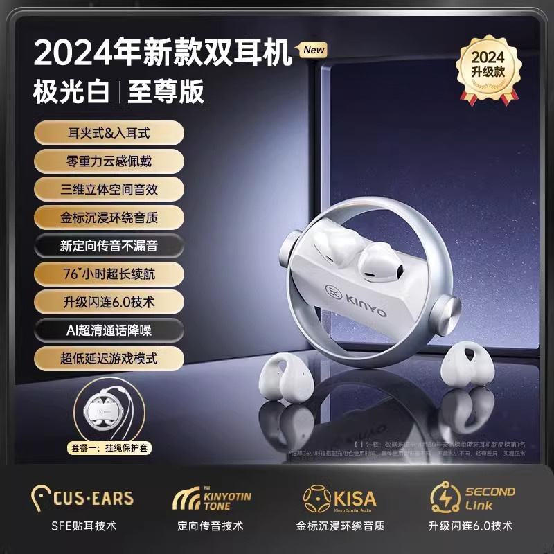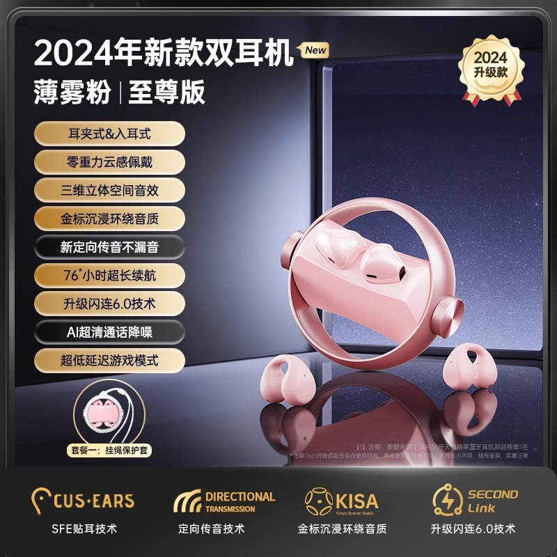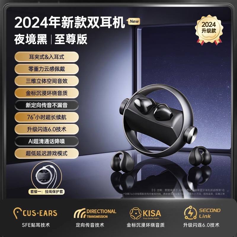 블루투스 헤드셋 2024 새로운 귀 클립 인 듀얼 목적 스포츠 무선 오픈 울트라 긴 배터리 수명과 큰 힘스토어 가기