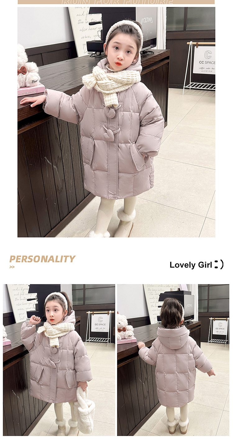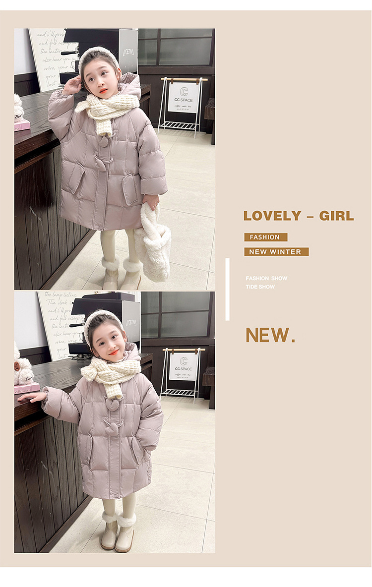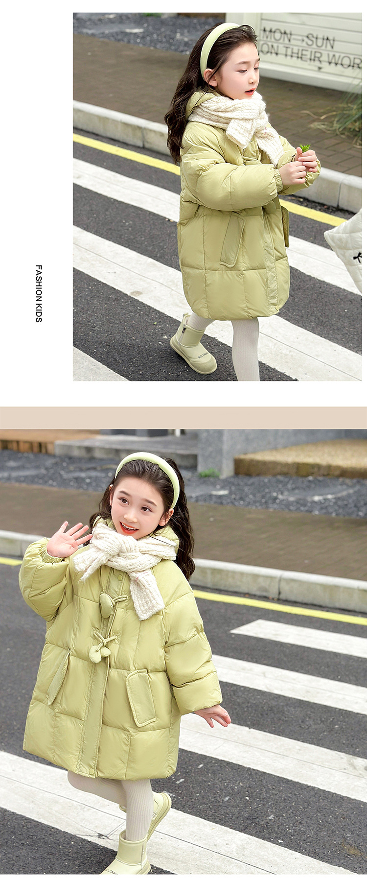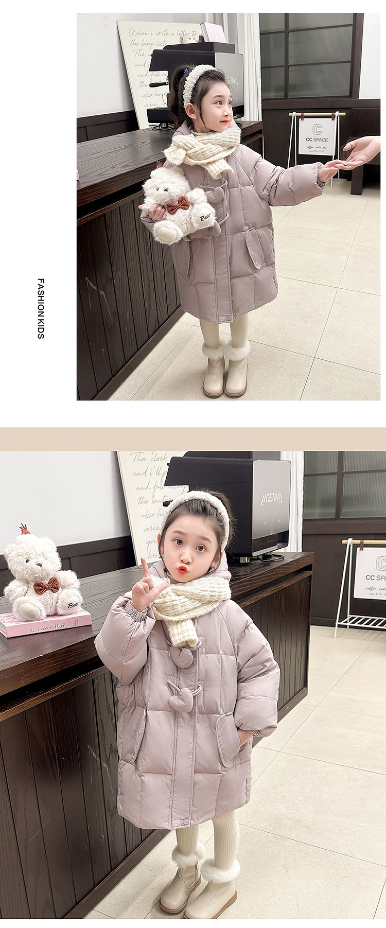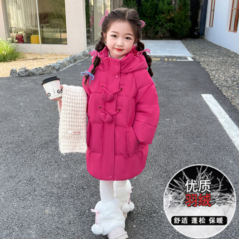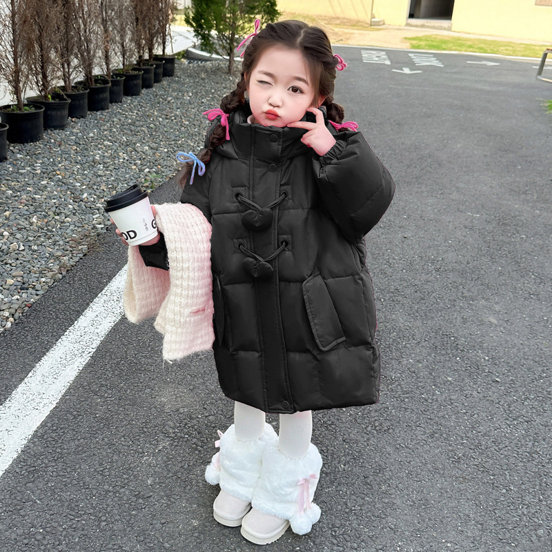여아 다운 재킷, 아동 2025 겨울 의류, 새로운 아동용 두꺼운 겨울 여아 중간 길이 방한 스타일 재킷스토어 가기