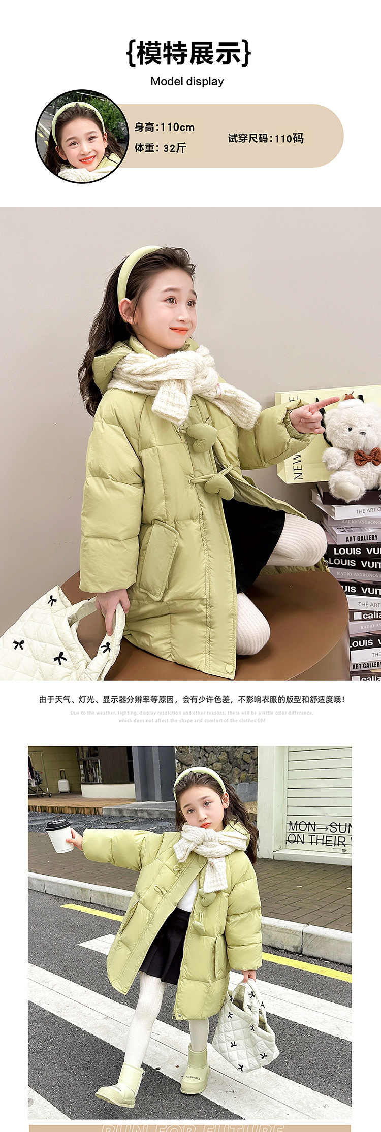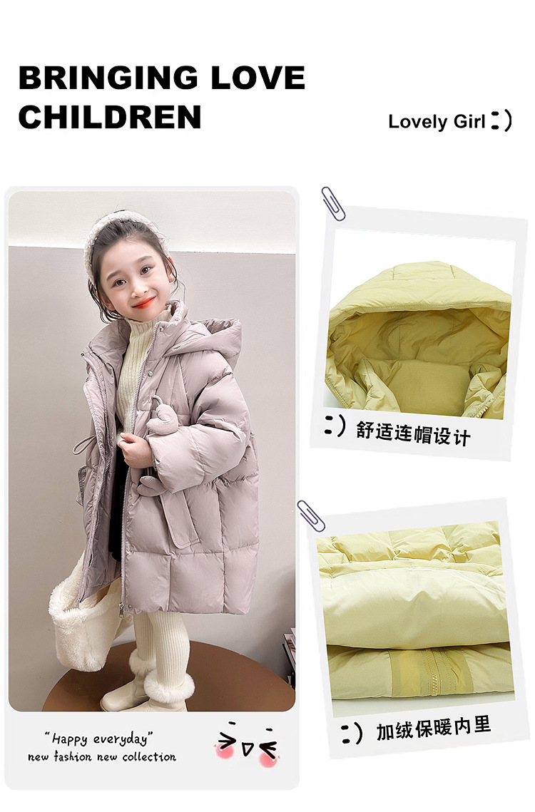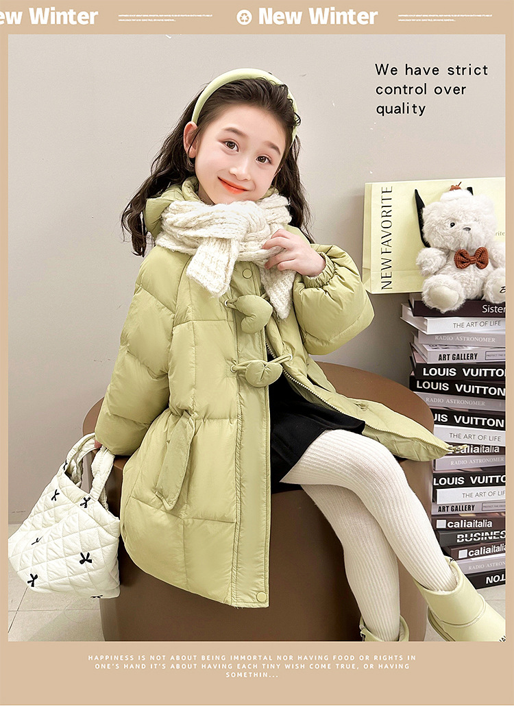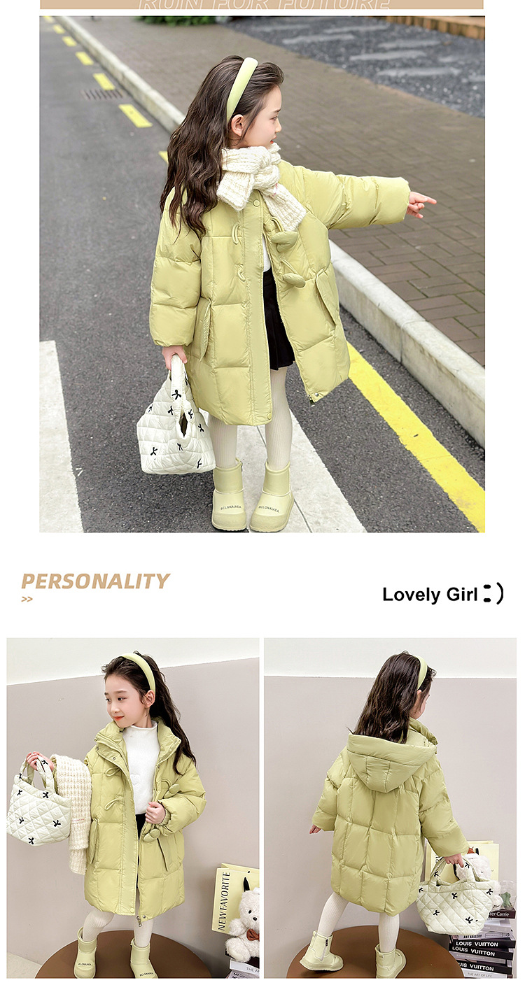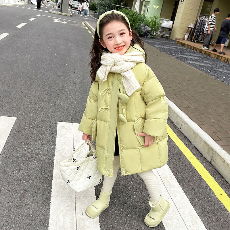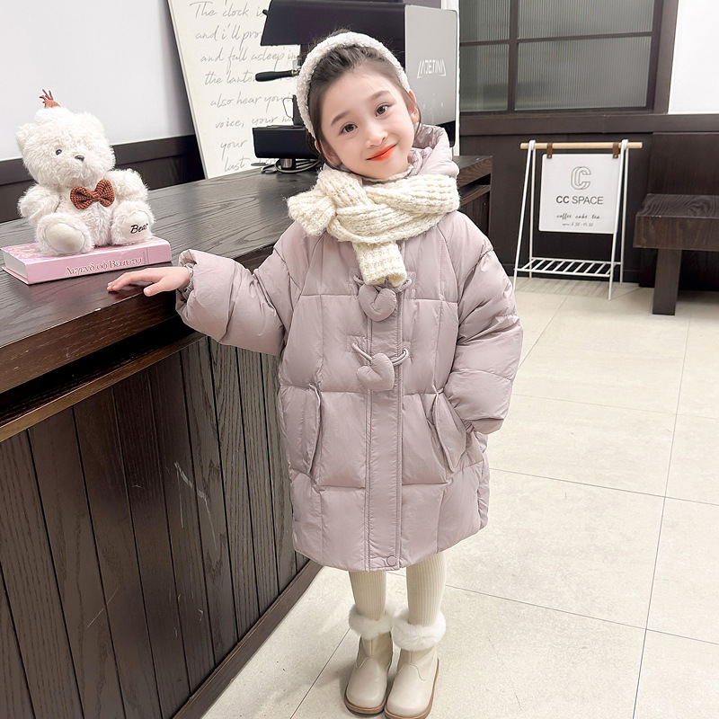 여아 다운 재킷, 아동 2025 겨울 의류, 새로운 아동용 두꺼운 겨울 여아 중간 길이 방한 스타일 재킷스토어 가기