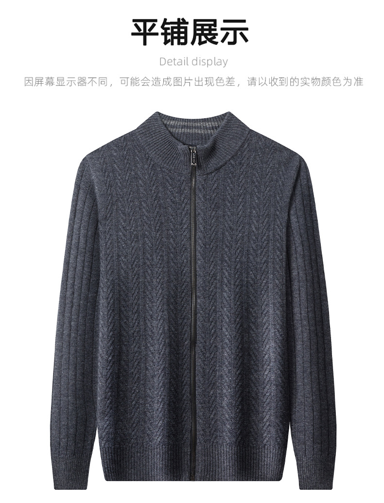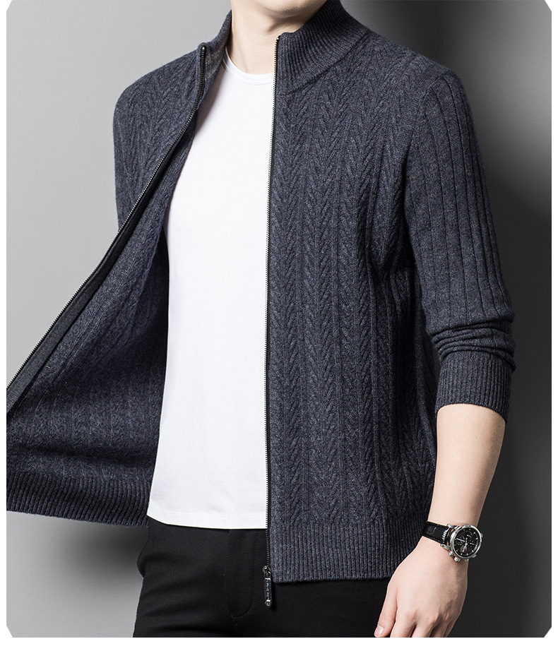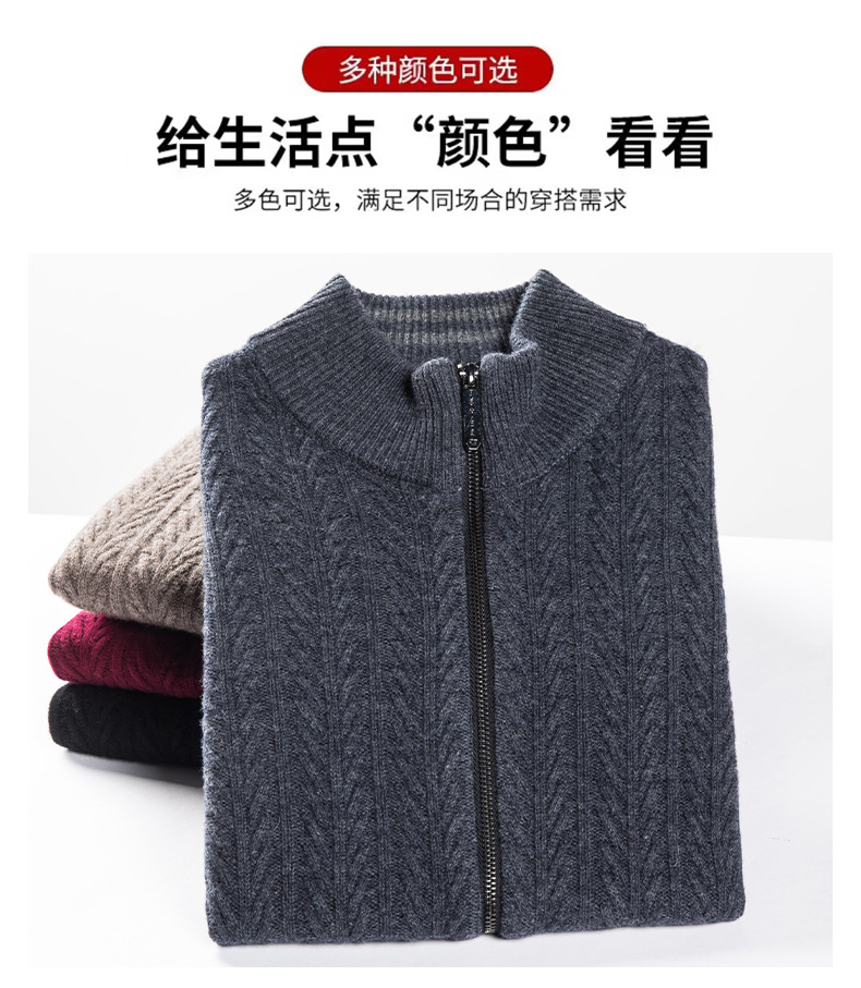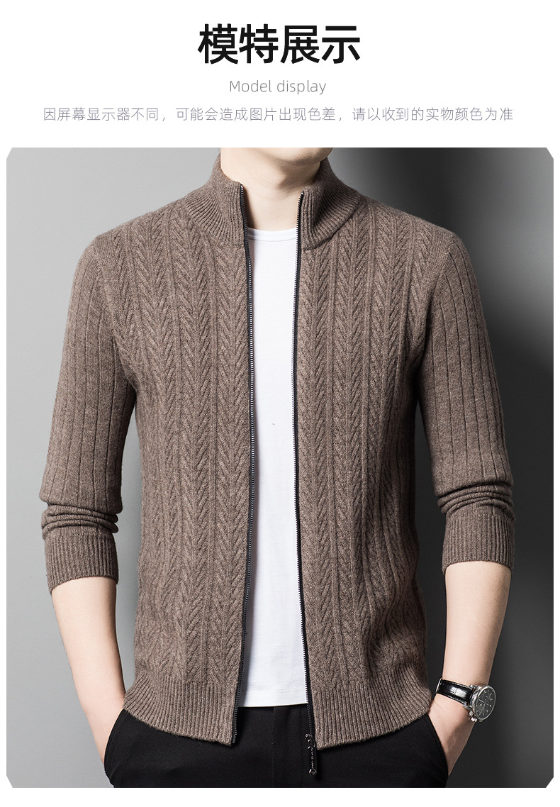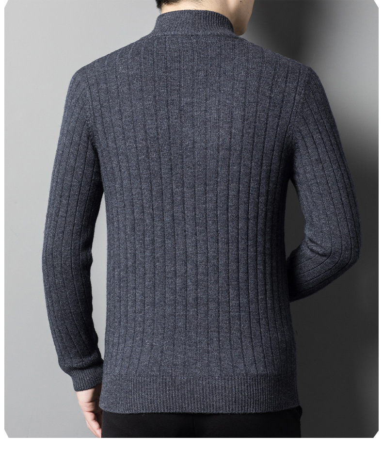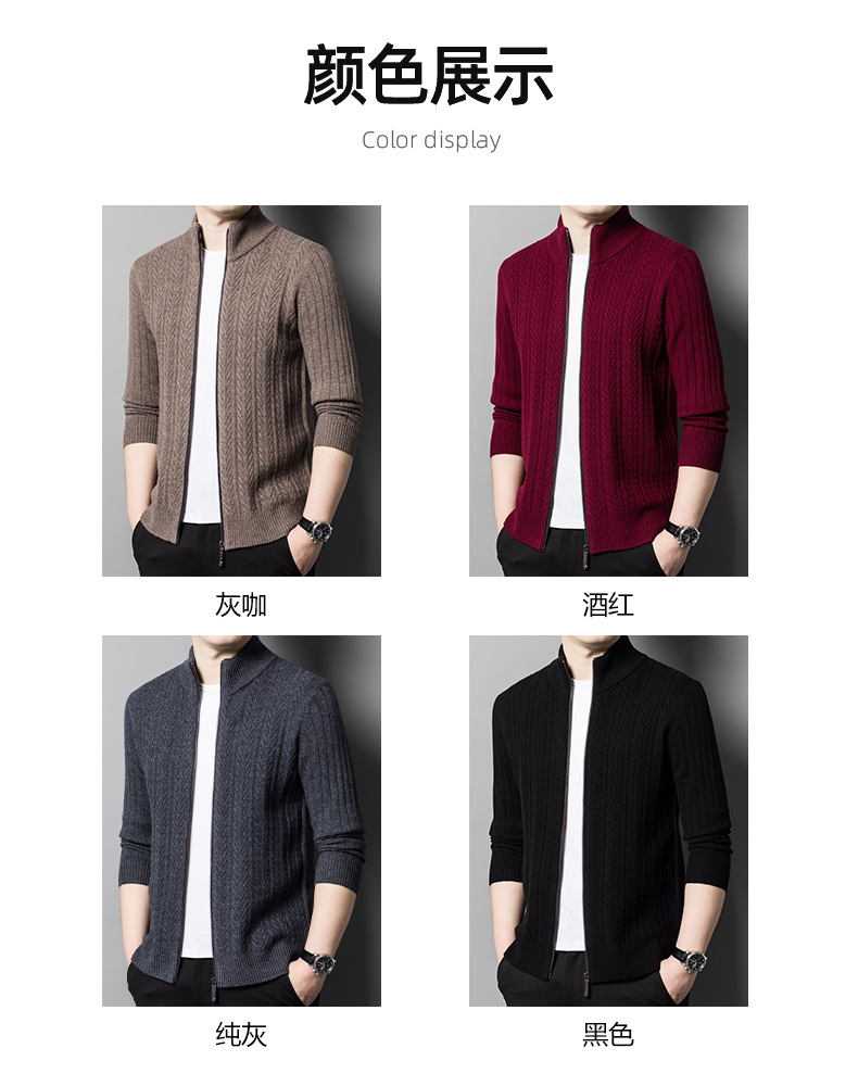 2024 가을, 겨울 새로운 하프 터틀넥 지퍼 솔리드 컬러 100% 울 카디건 남성 두꺼운 캐주얼 니트 코트 스웨터스토어 가기