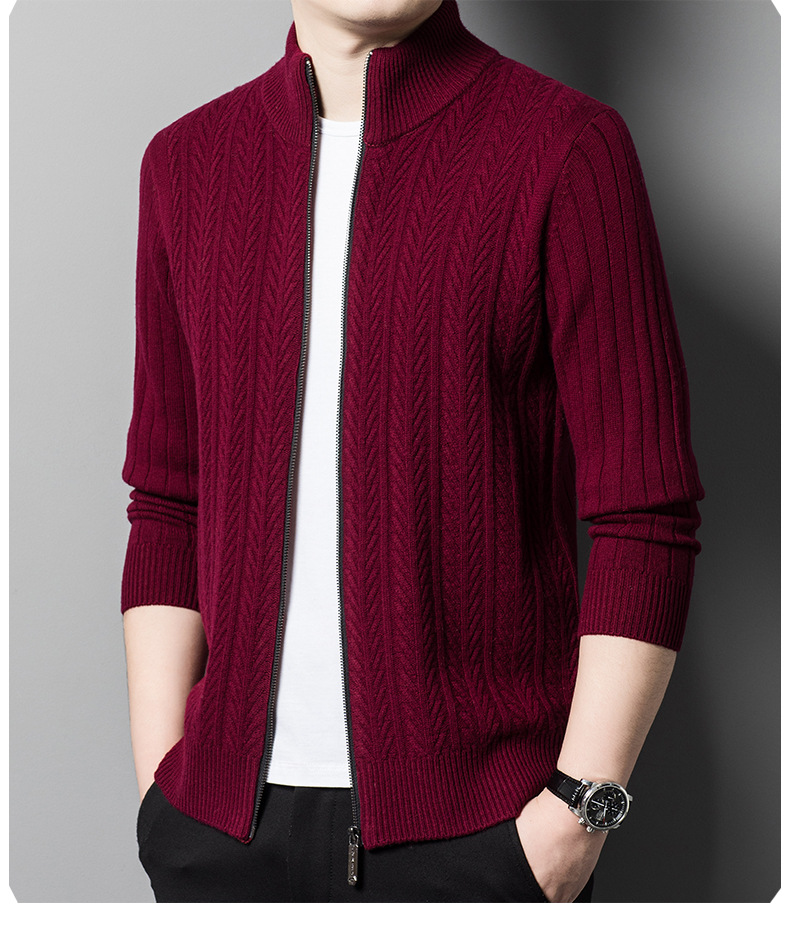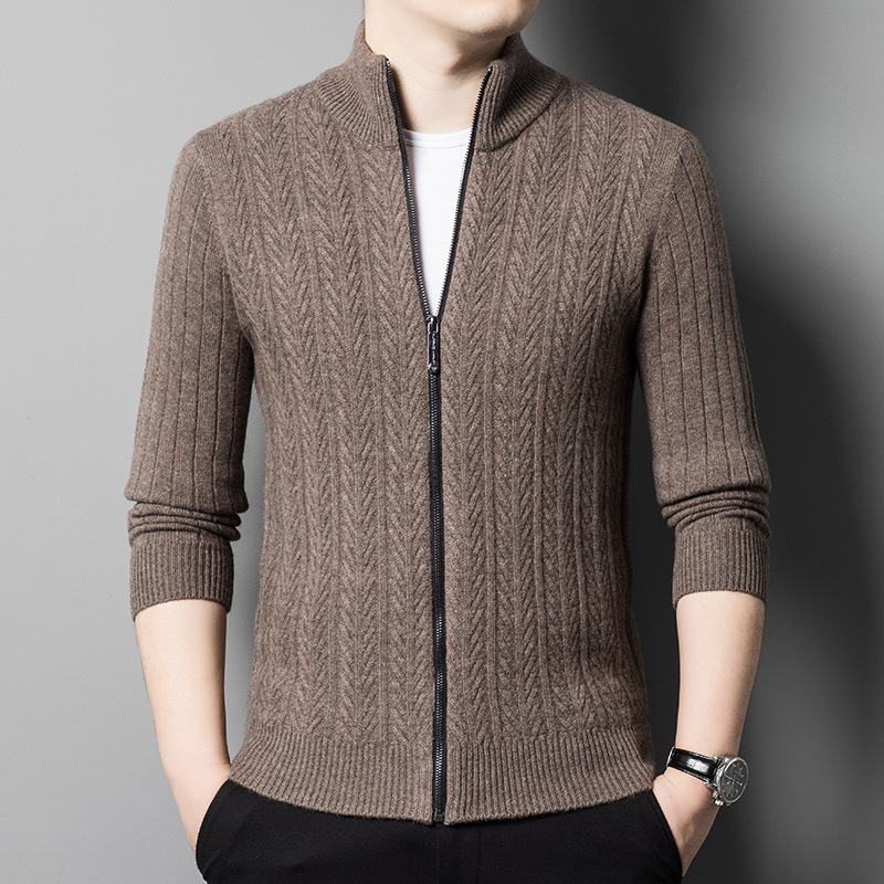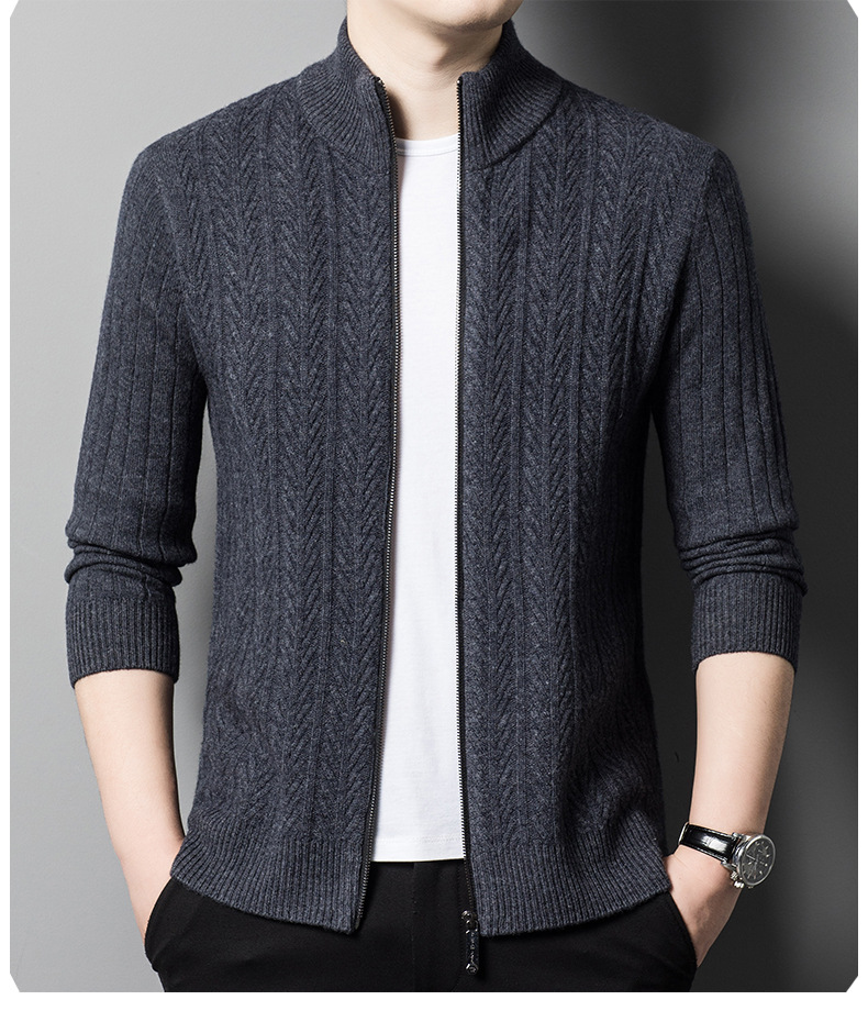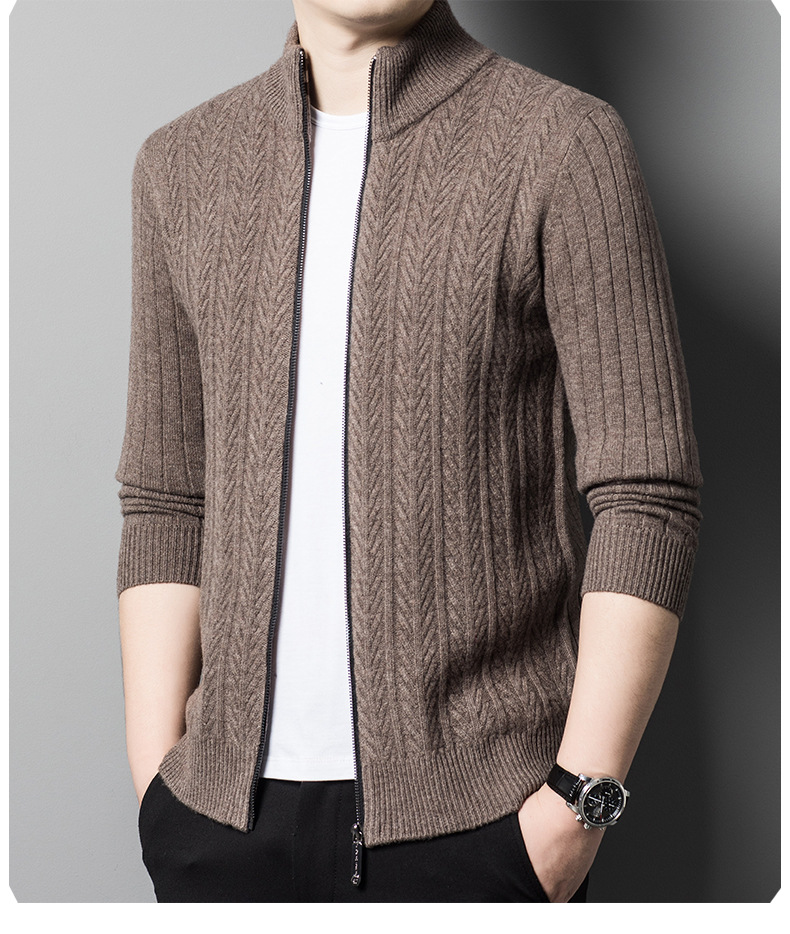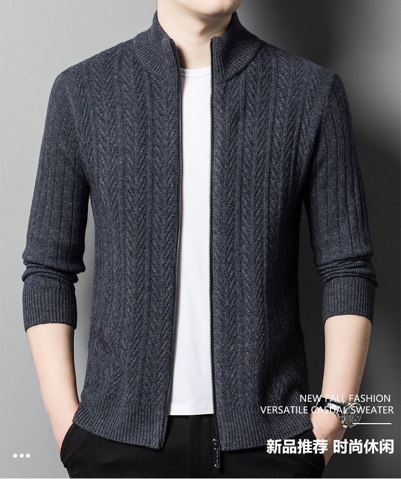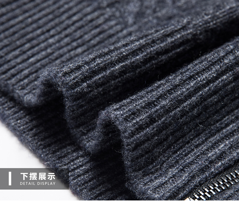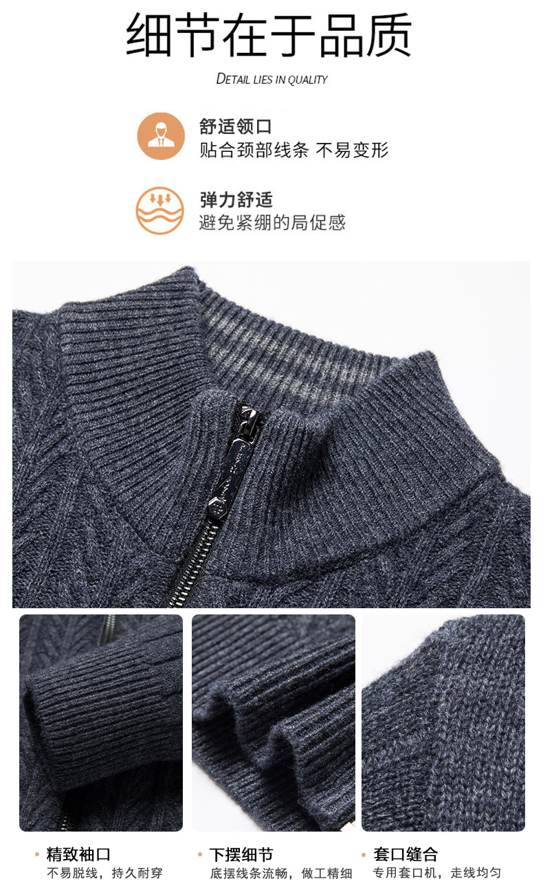 2024 가을, 겨울 새로운 하프 터틀넥 지퍼 솔리드 컬러 100% 울 카디건 남성 두꺼운 캐주얼 니트 코트 스웨터스토어 가기