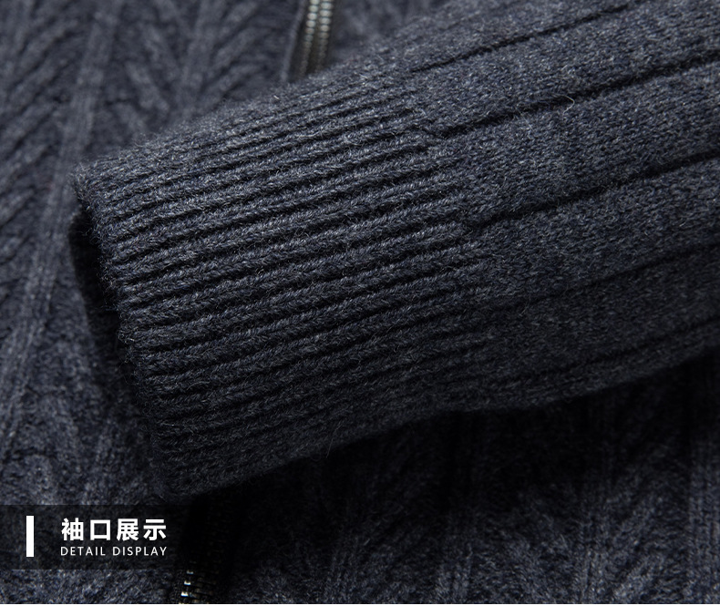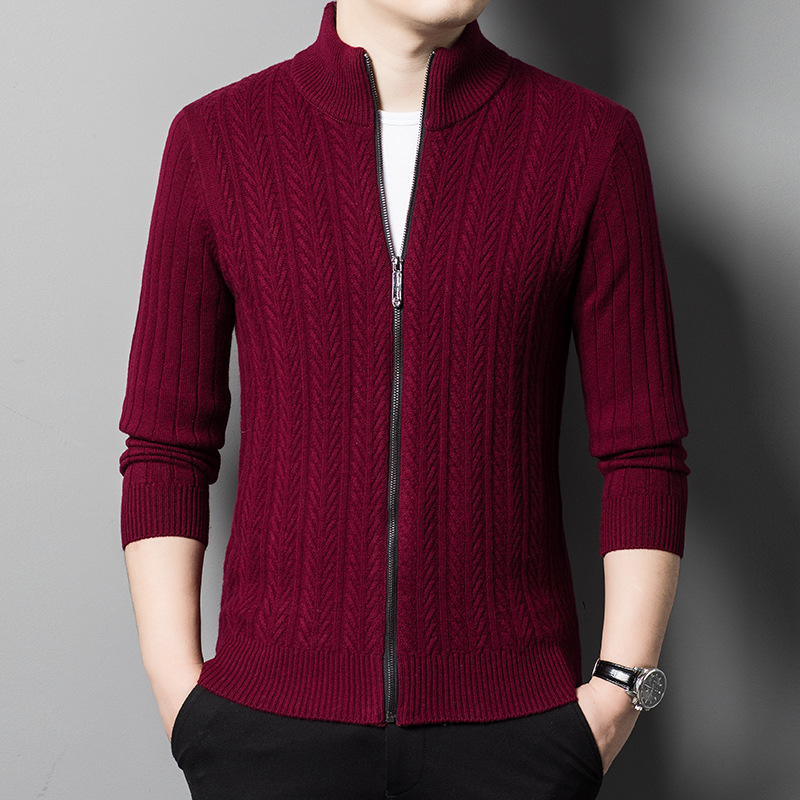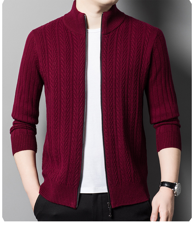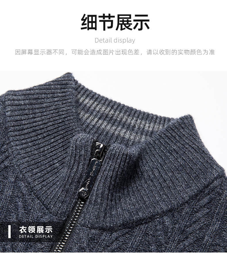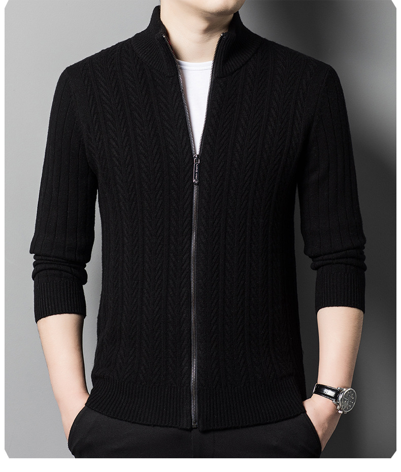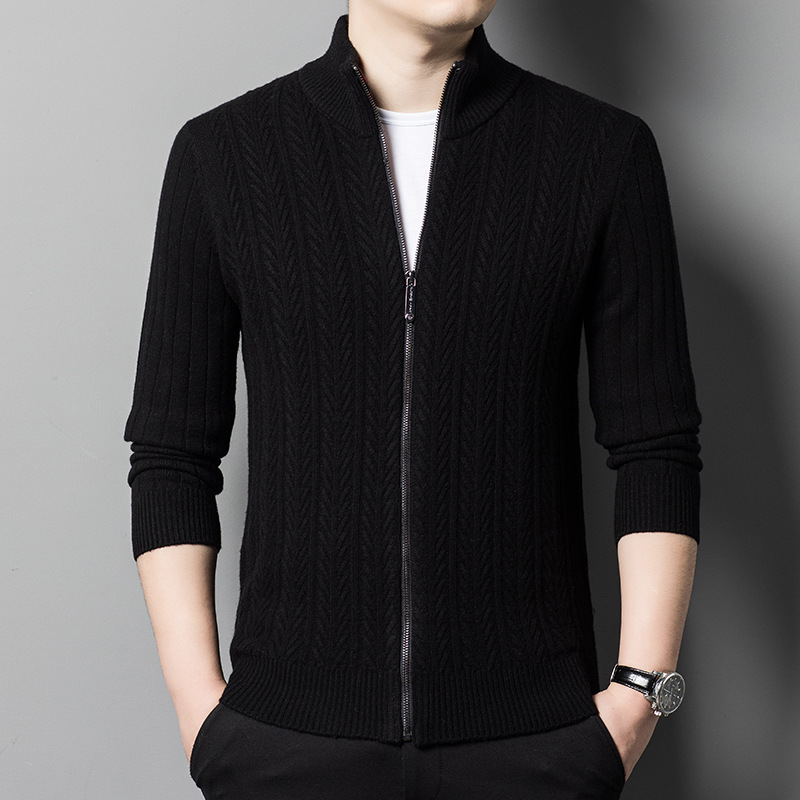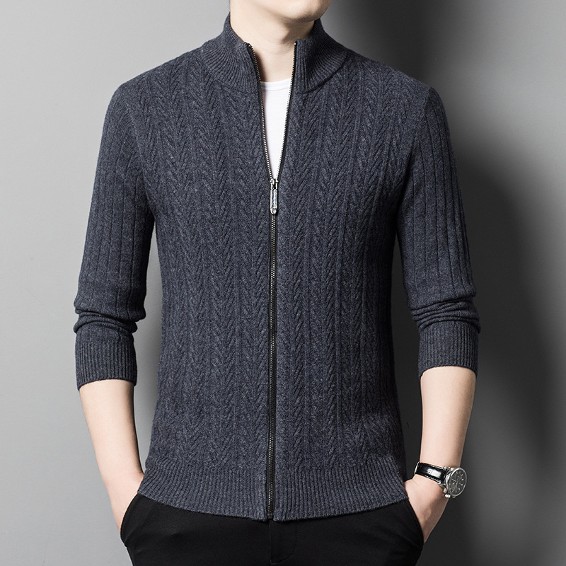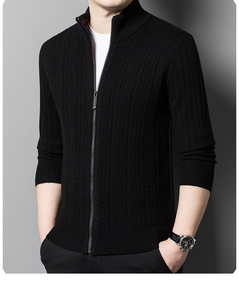2024 가을, 겨울 새로운 하프 터틀넥 지퍼 솔리드 컬러 100% 울 카디건 남성 두꺼운 캐주얼 니트 코트 스웨터스토어 가기