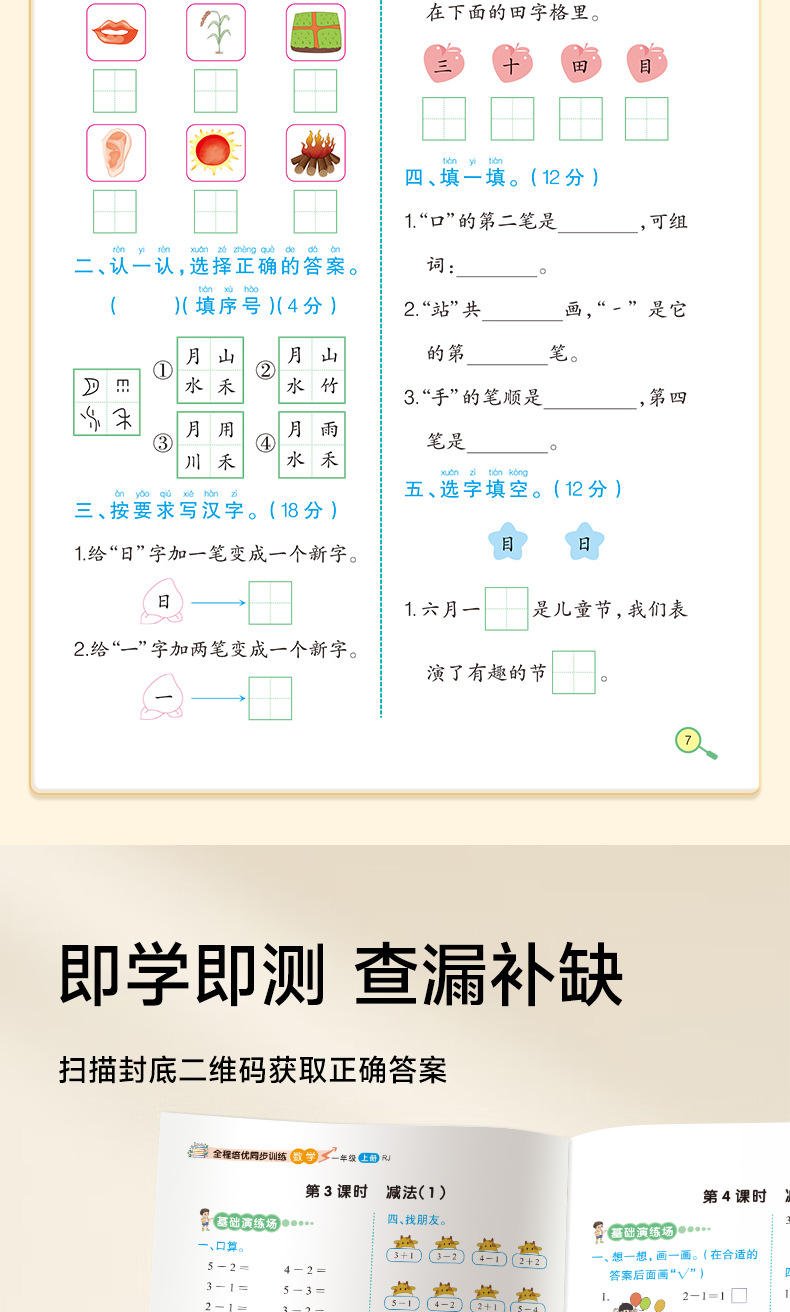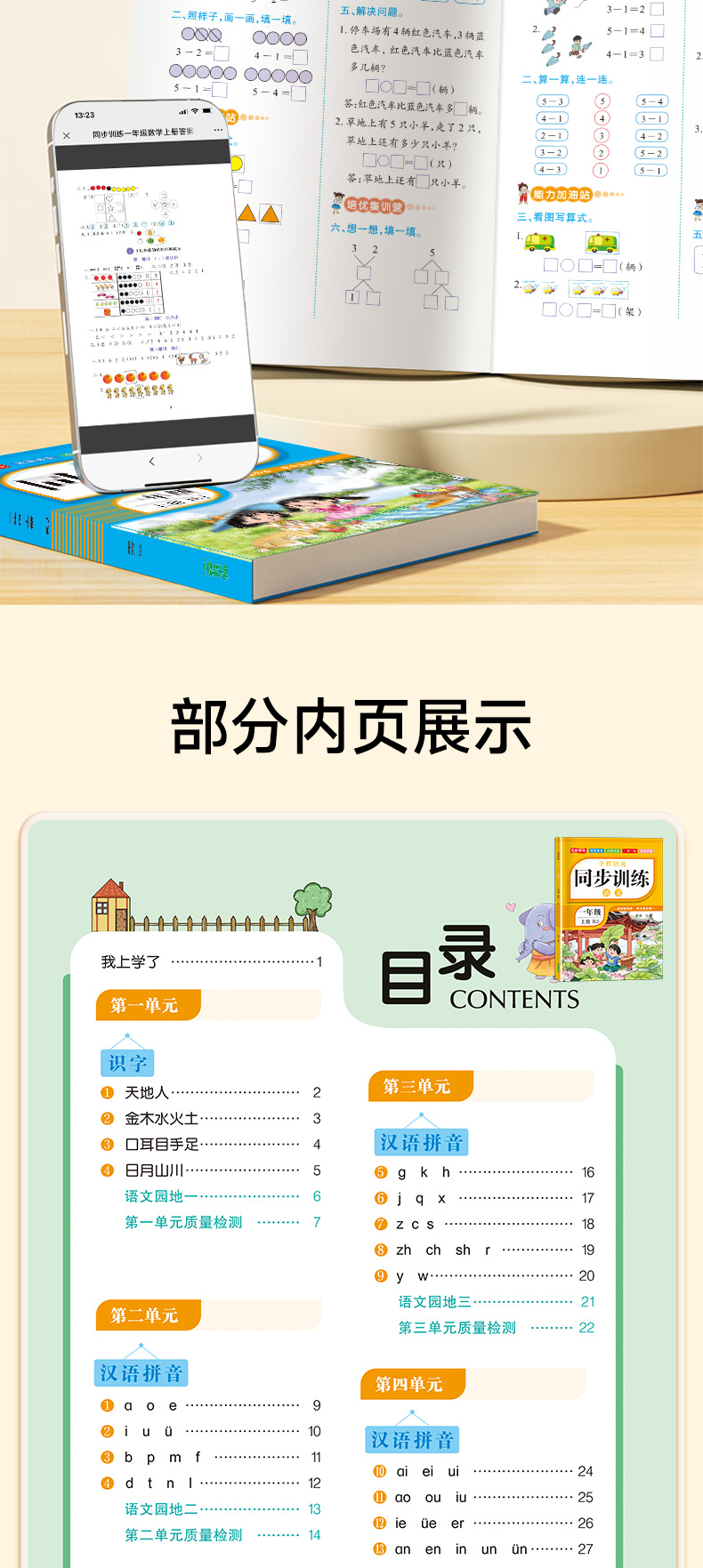 1 학년 상위 및 하위 중국어 수학 동기 교육 전체 세트 동기 1 수업 1 연습 운동 책 2