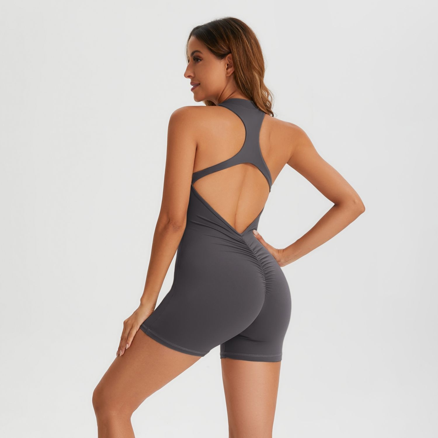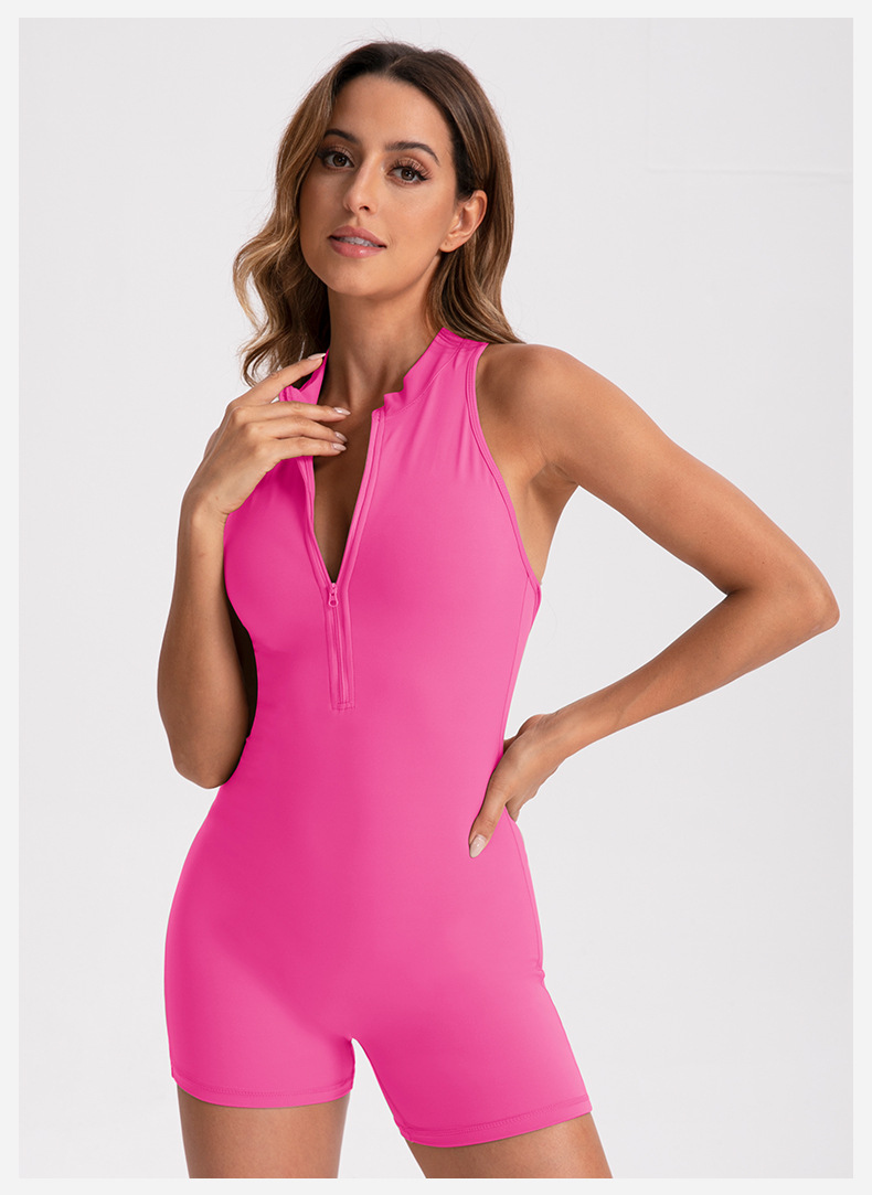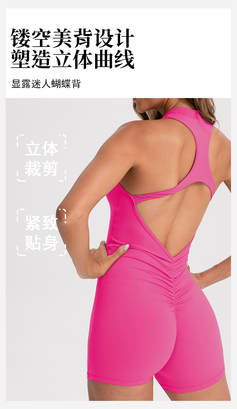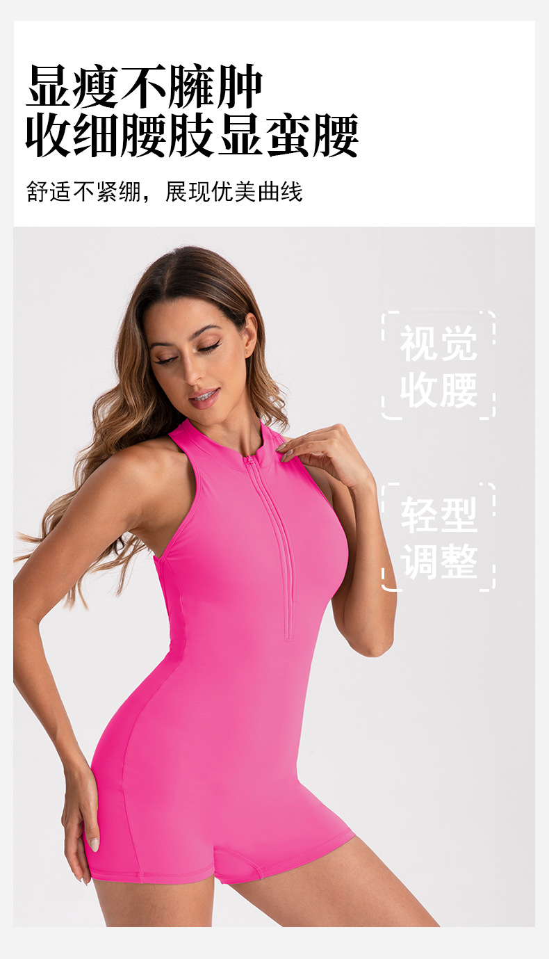 여름 고탄력 복숭아 엉덩이 요가복 여성용 원피스 반바지 솔리드 컬러 지퍼 누드 섹시 스포츠 원피스 요가복스토어 가기