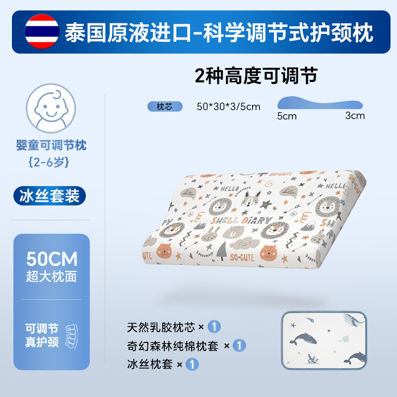 • ❤️업그레이드된 태국 오리지널 수입 베개 코어 [2-6세] 판타지 포레스트 + 아이스 실크 베개 커버 아기 베개