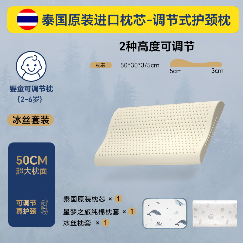 • ❤️업그레이드된 태국 오리지널 수입 베개 코어 [2-6세] Star Dream Journey + 아이스 실크 베개 커버 아기 베개
