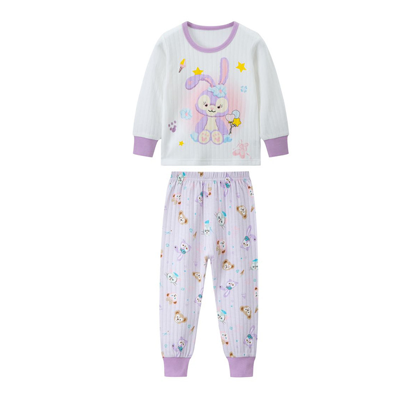 일본 봄과 가을 새로운 어린이 세트 소년 및 소녀 홈 옷 더블 레이어 호흡 면화 가을 옷과 바지 세트