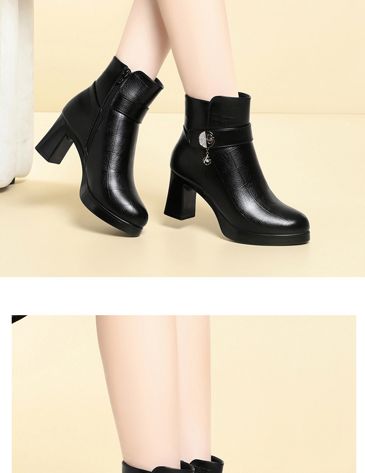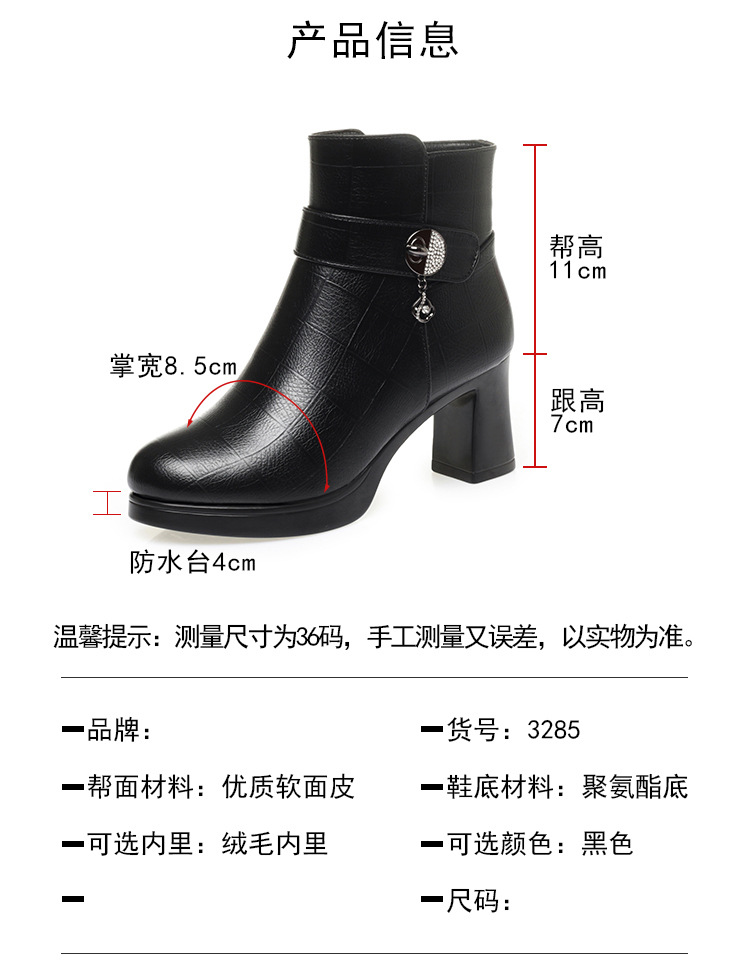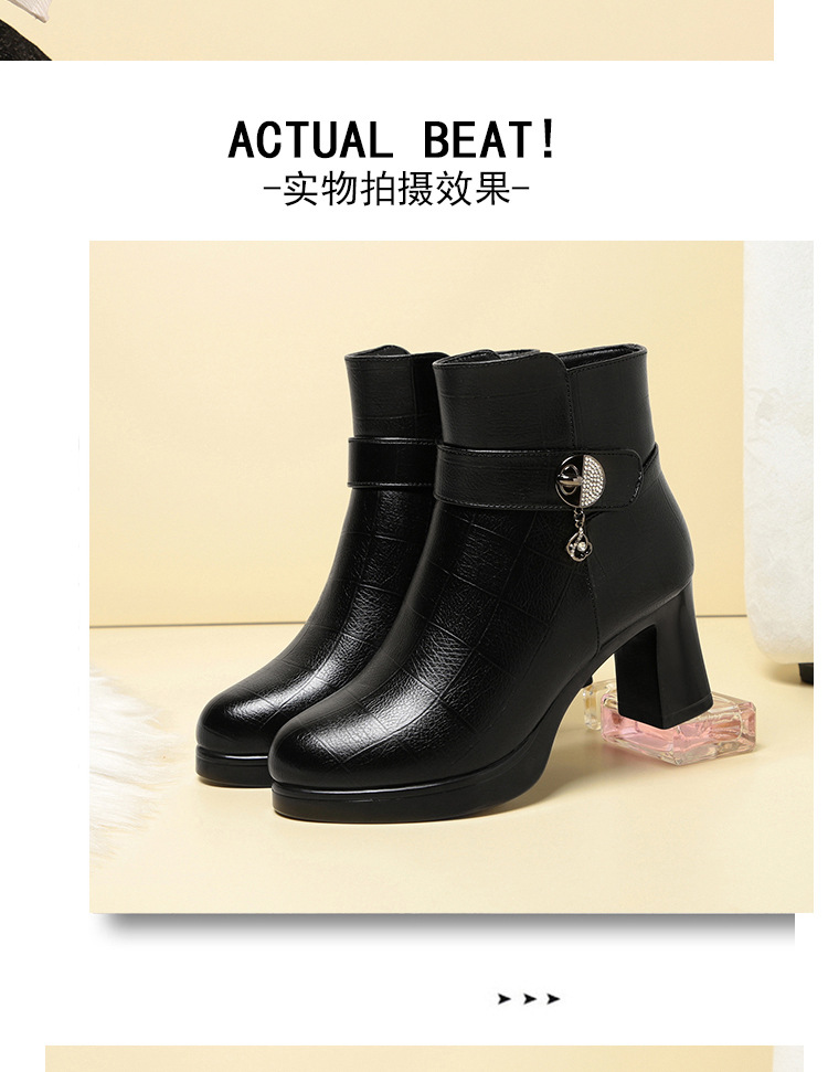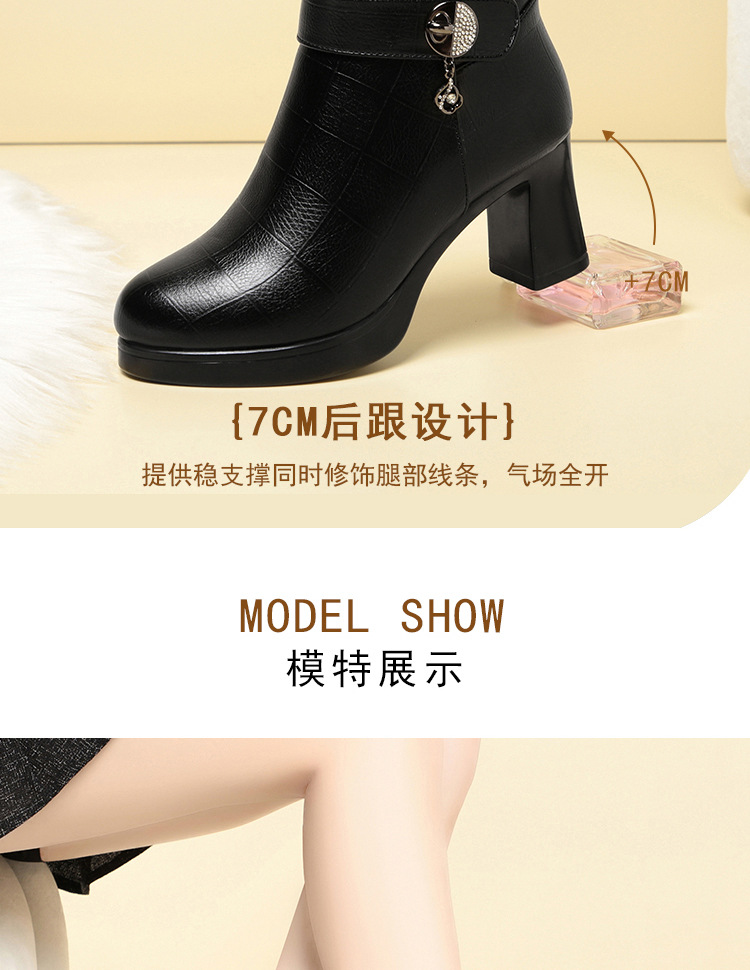 부드러운 가죽 짧은 부츠 여성용 하이힐 두꺼운 겨울 새로운 벨벳 여성 부츠 기모 두꺼운 중년 어머니 패션 여성 부츠스토어 가기