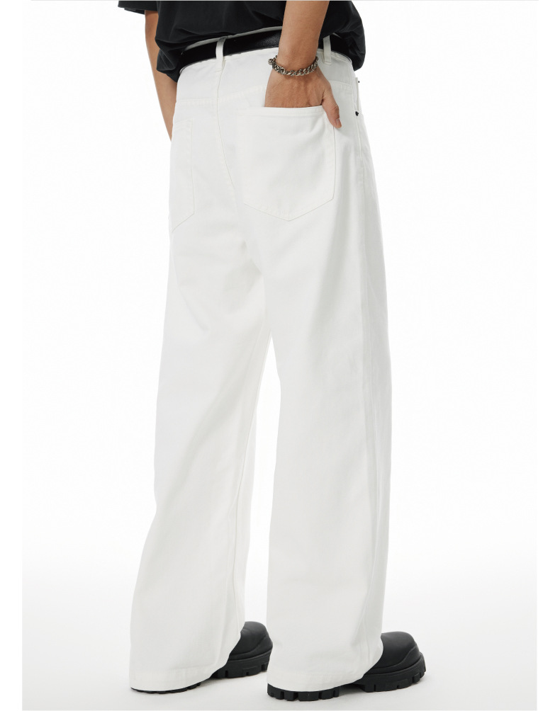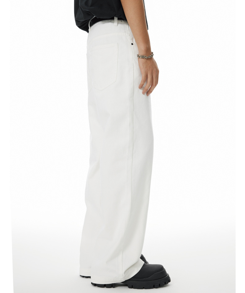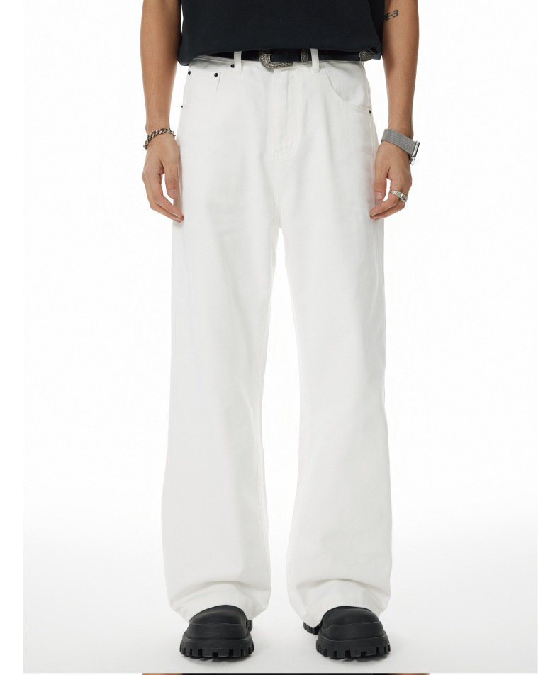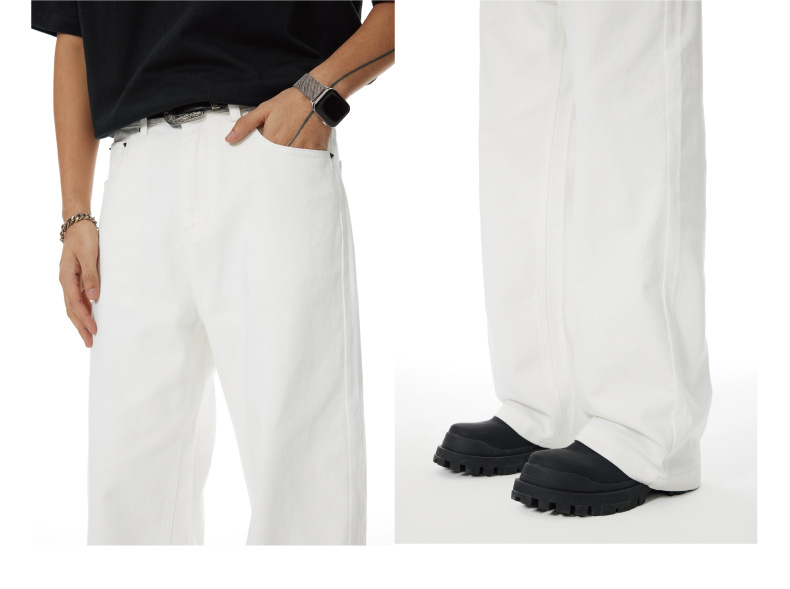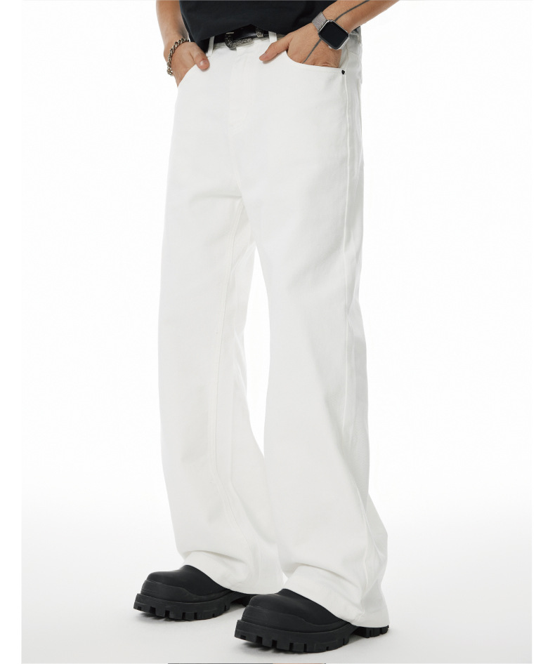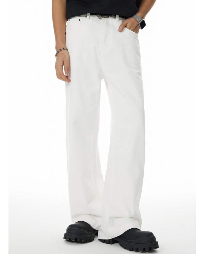 GTRG 트렌디 브랜드 봄 새로운 순수 화이트 하이 엔드 와이드 레그 바지 캐주얼 올 매치 딥 스트레이트 레그 청바지 남성용스토어 가기