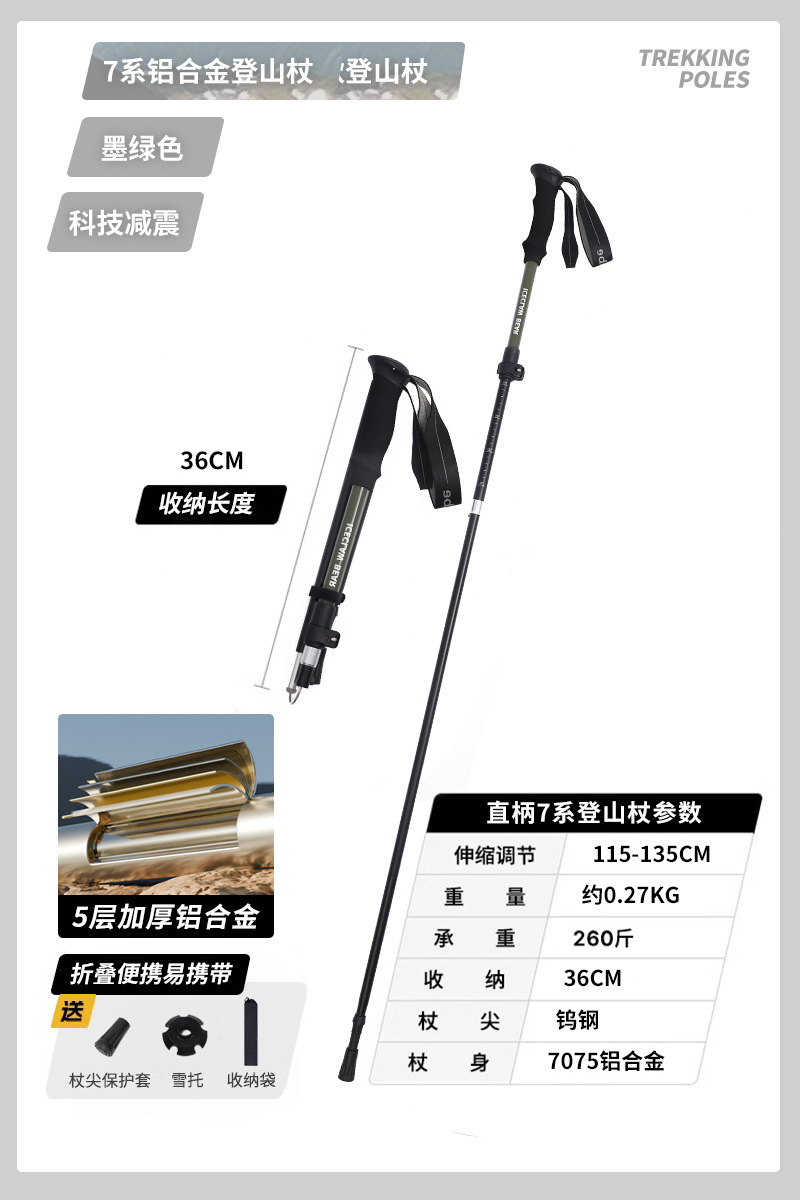 7075 알루미늄 합금 트레킹 스틱 하이킹 접이식 지팡이 전문 야외 등산 장비 초경량 휴대용 텔레스코픽 모델스토어 가기