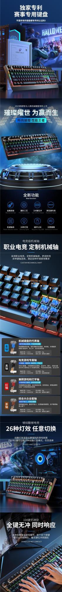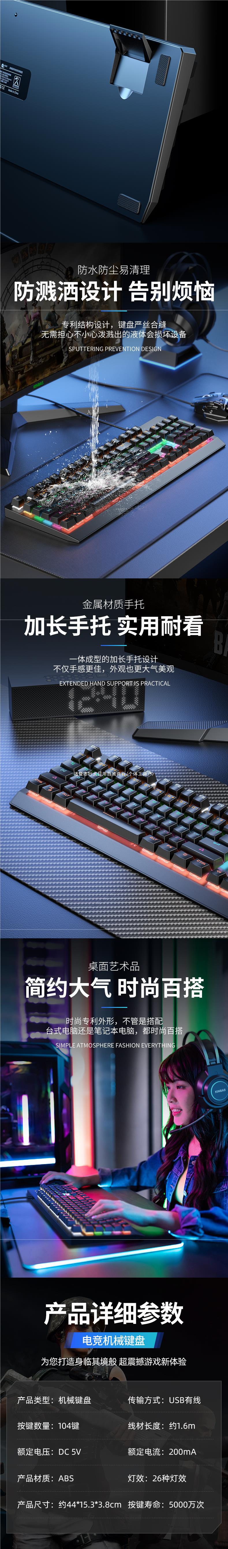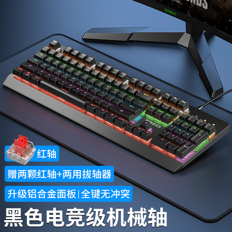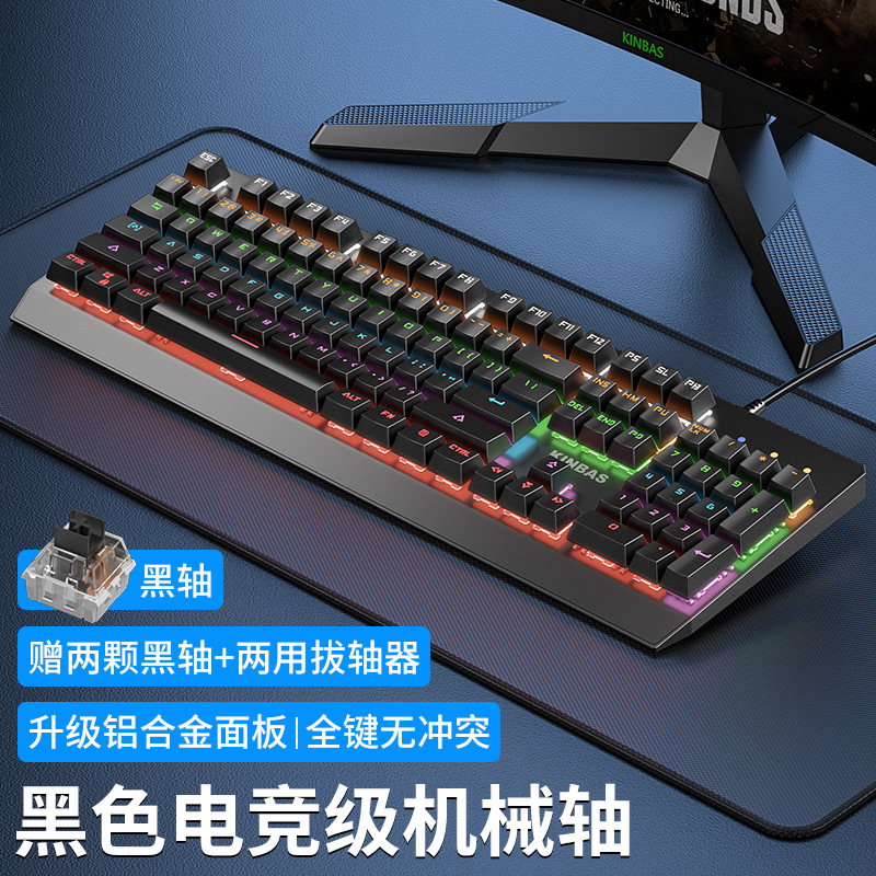 • E-스포츠 실제 기계식 축 - 검정색 [게임용 검정색 축] 고급 칩 + 26가지 조명 효과 + 풀 키 펀치 없는 검정색 검정색 축 - 없음 - 104 키 - 공식 표준 구성