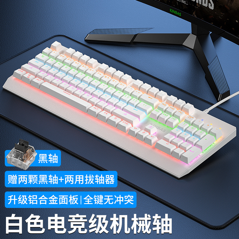 • E-스포츠 실제 기계식 축 - 흰색 [게임용 검정색 축] 고급 칩 + 26가지 조명 효과 + 풀 키 펀치 없는 흰색 검정색 축 - 없음 - 104 키 - 공식 표준 구성