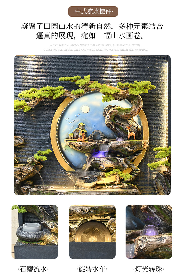 중국 스타일의 물 커튼 벽 스크린 높은 산 물 분수 조경 장식 사무실 거실 이동 열기 바닥 장식스토어 가기
