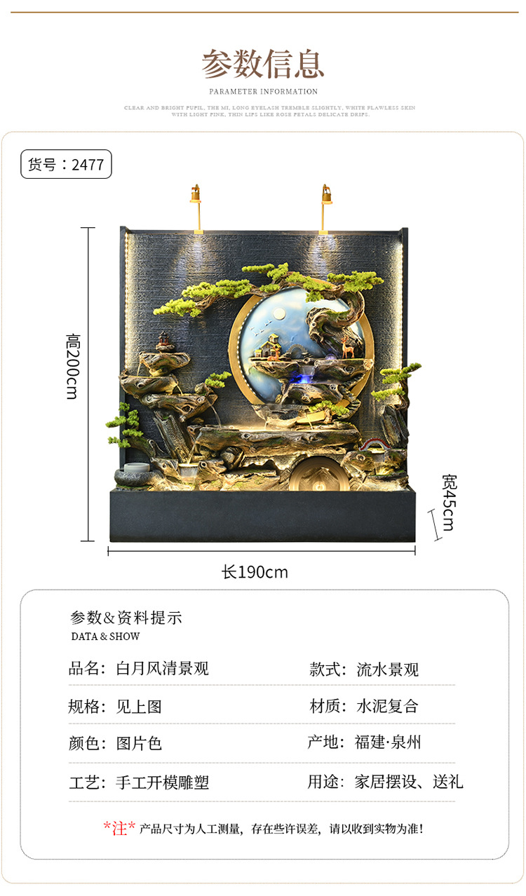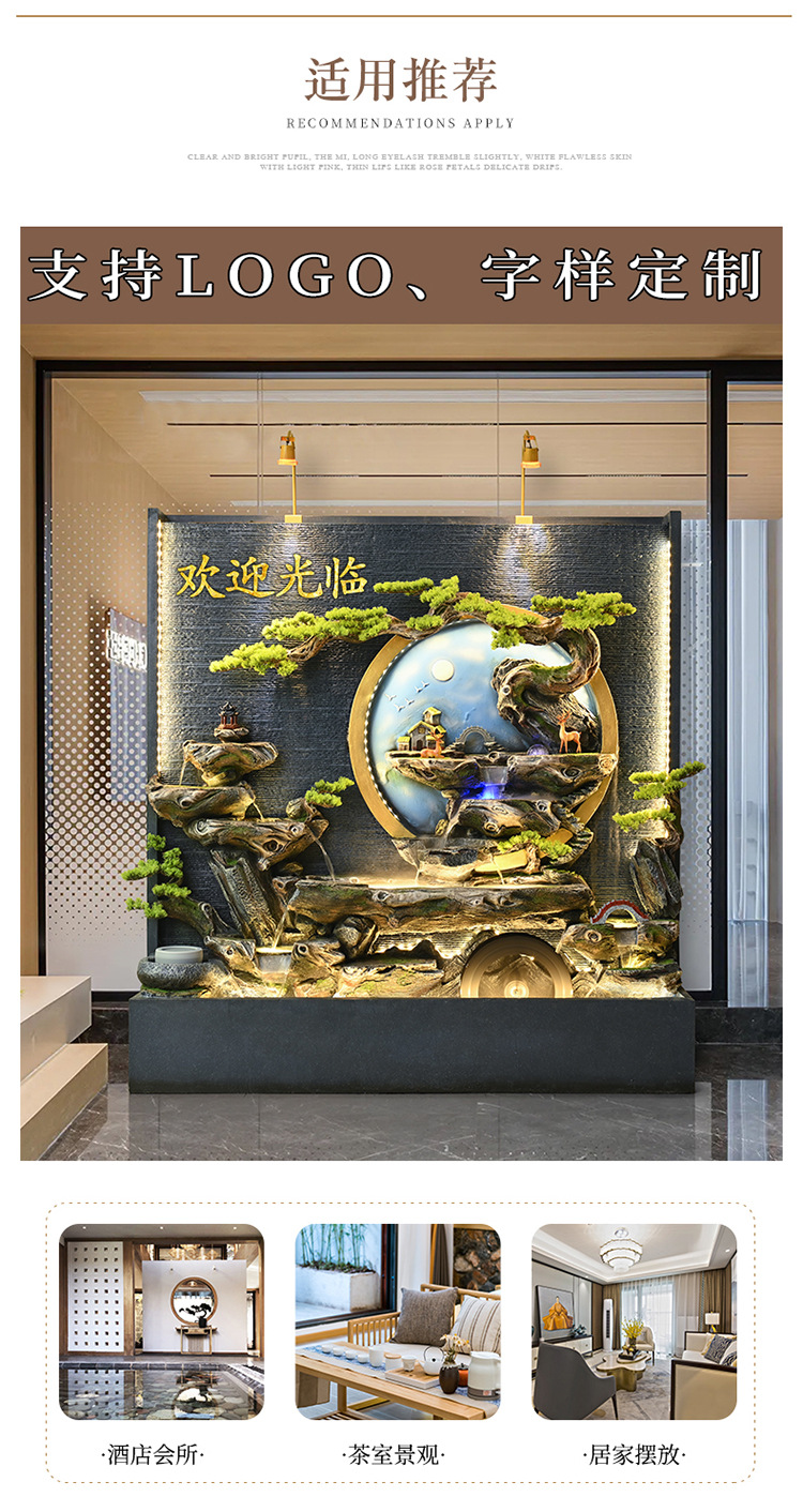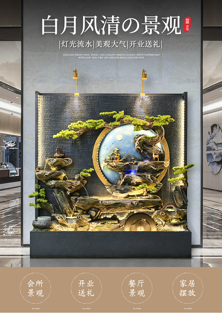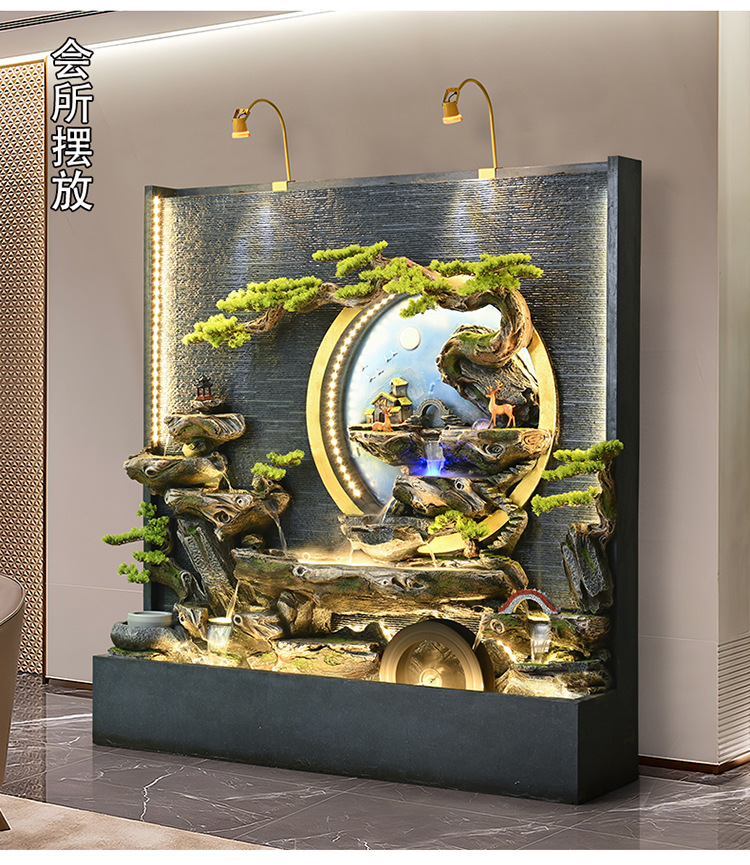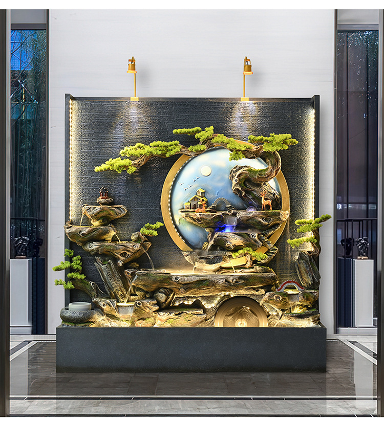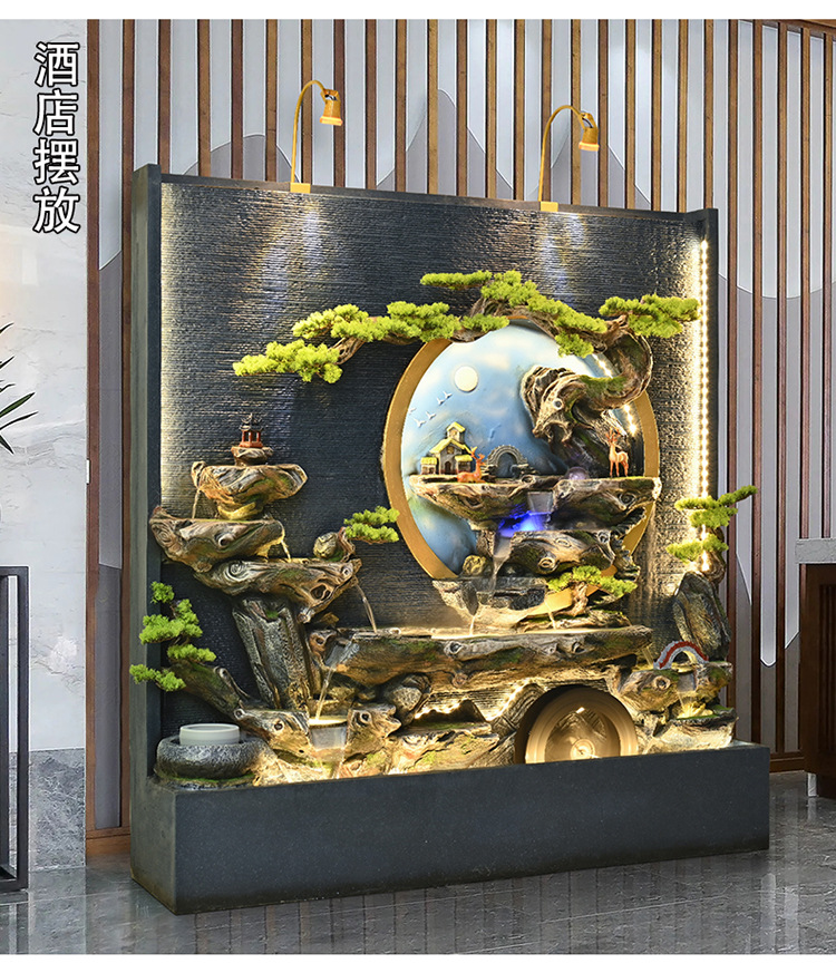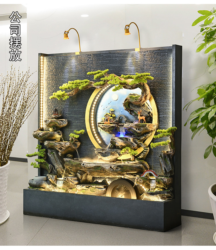 중국 스타일의 물 커튼 벽 스크린 높은 산 물 분수 조경 장식 사무실 거실 이동 열기 바닥 장식