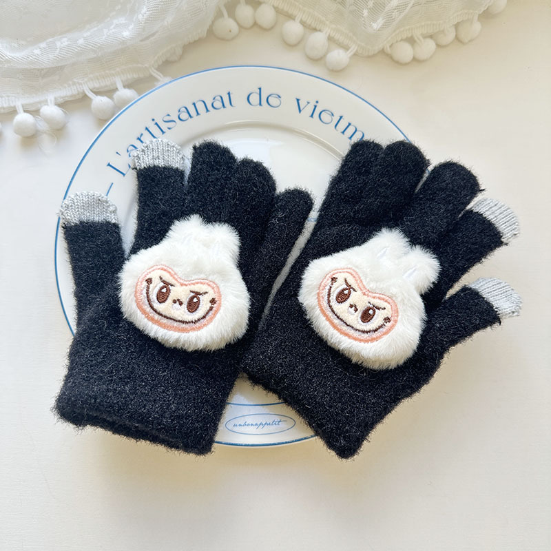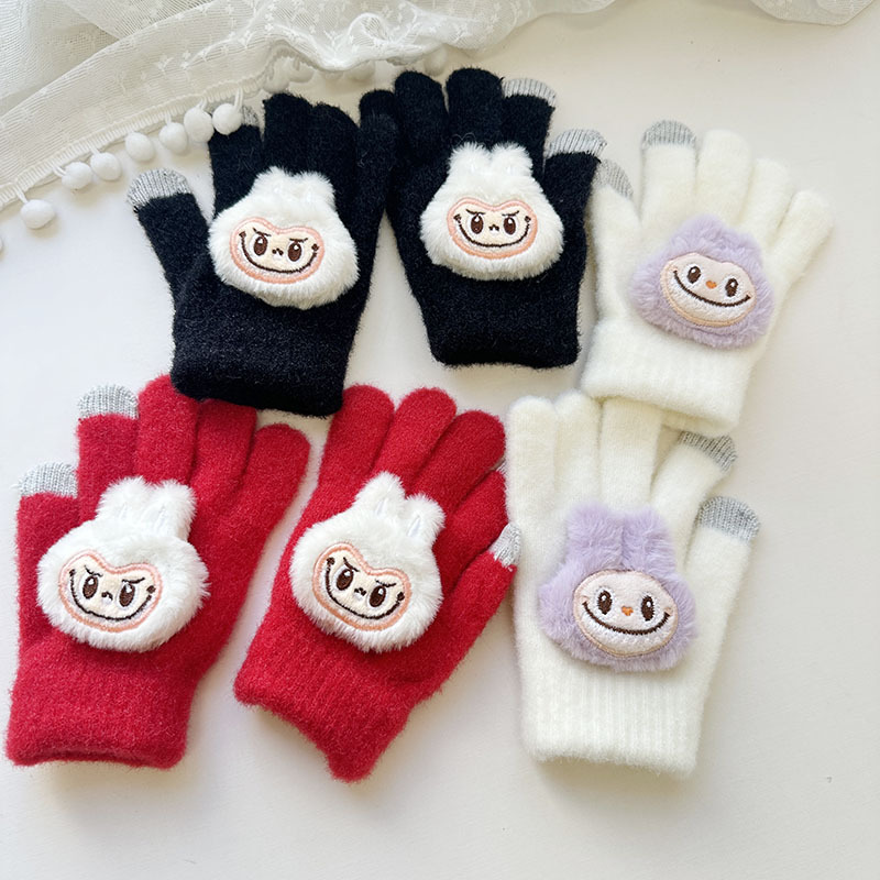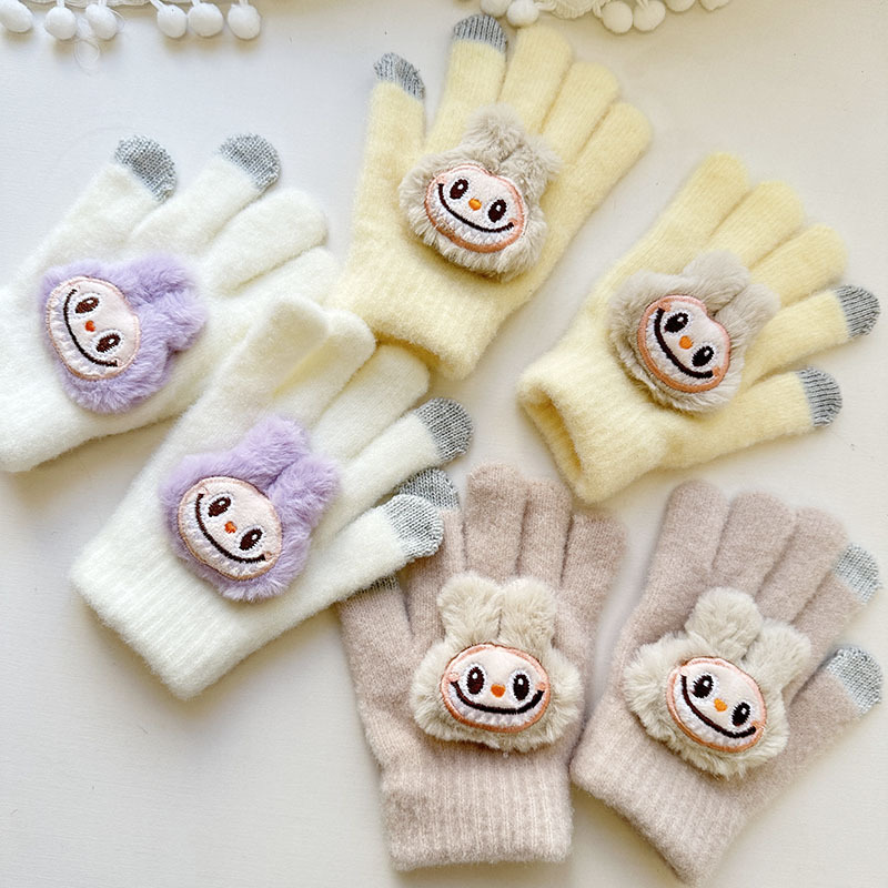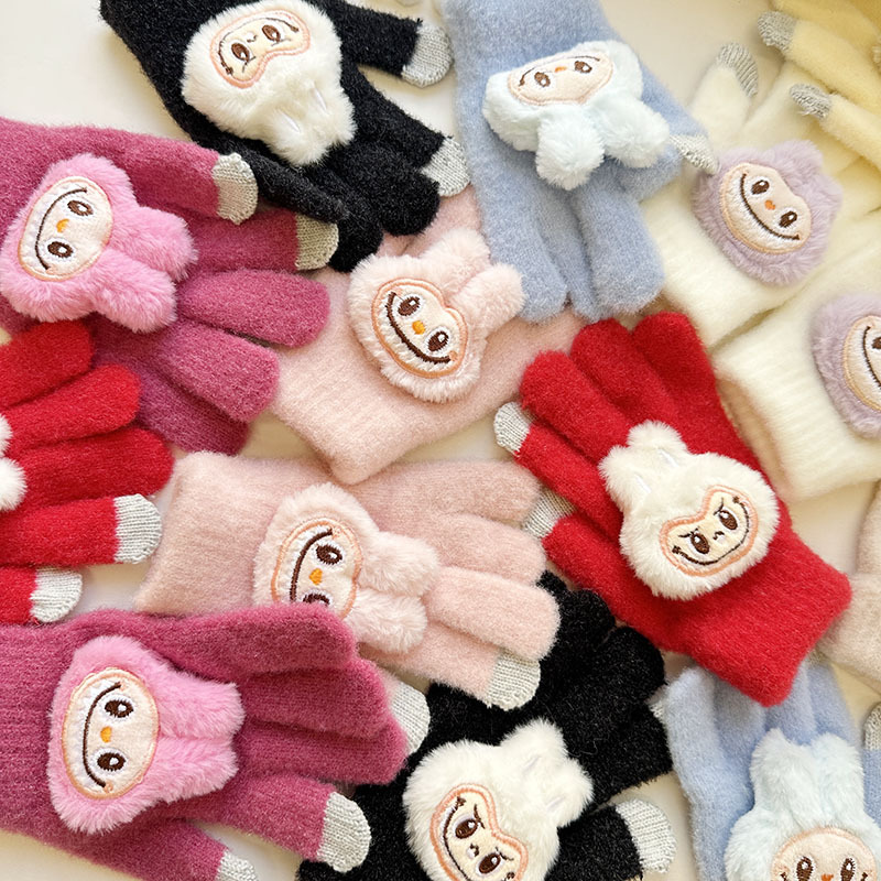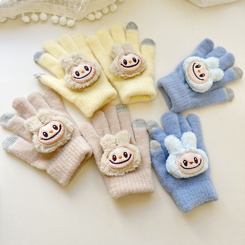 가을 겨울 만화 어린이 장갑 귀여운 라브 남녀 공용 두꺼운 보온 장갑 아기 분리형 손가락 니트 장갑