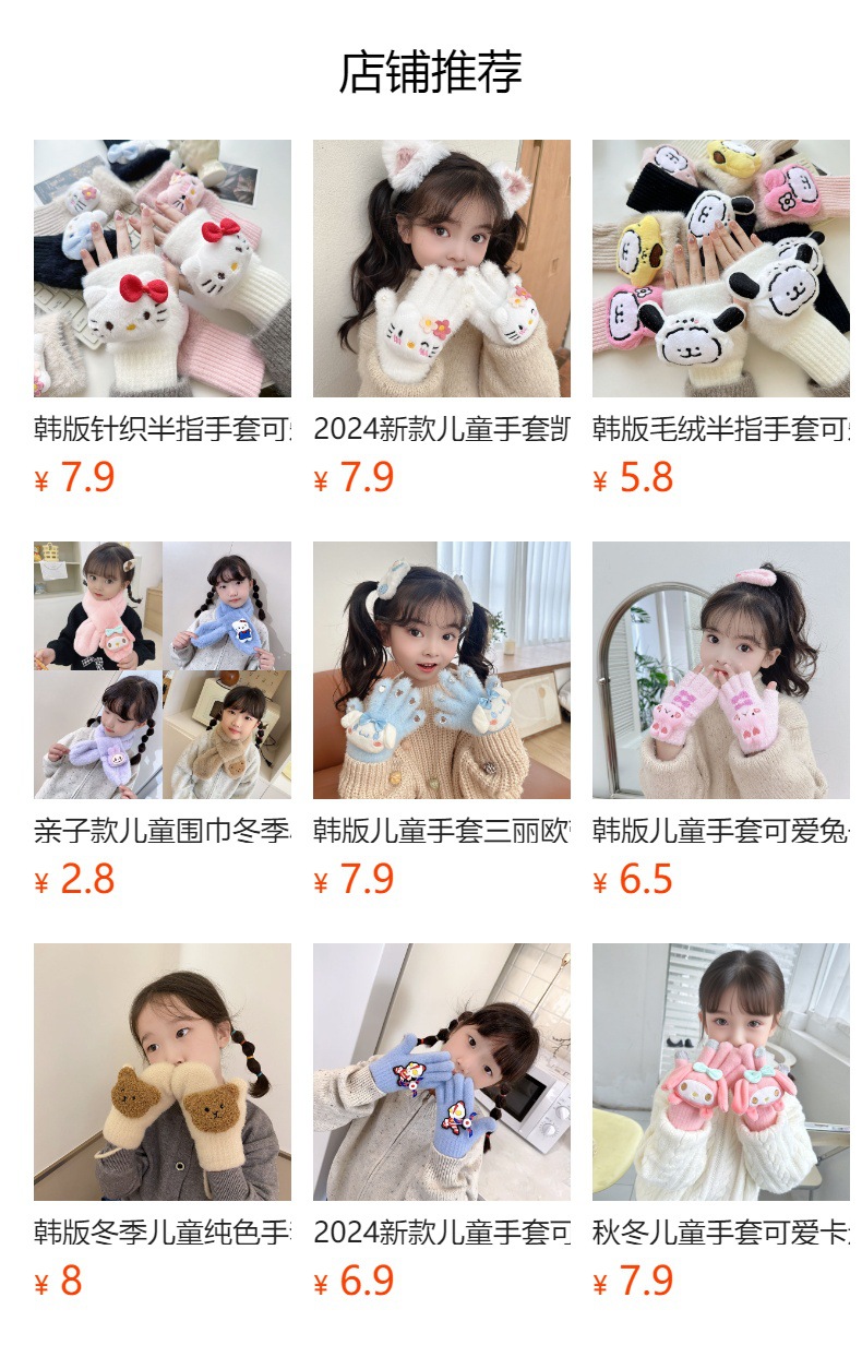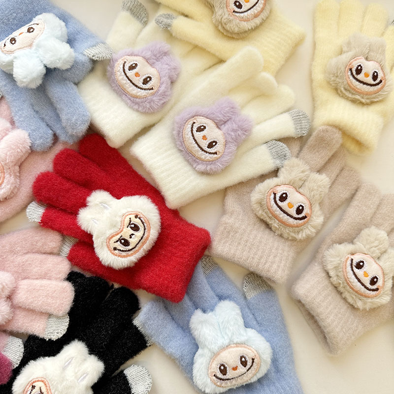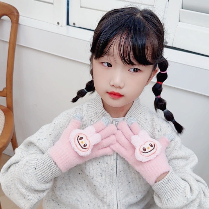 가을 겨울 만화 어린이 장갑 귀여운 라브 남녀 공용 두꺼운 보온 장갑 아기 분리형 손가락 니트 장갑스토어 가기