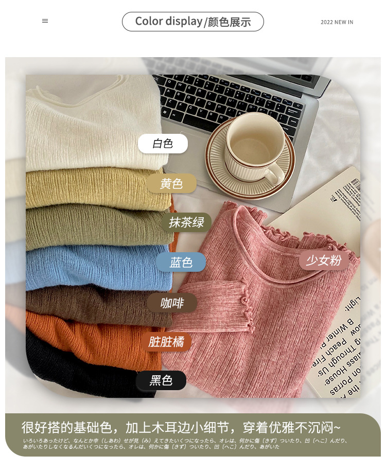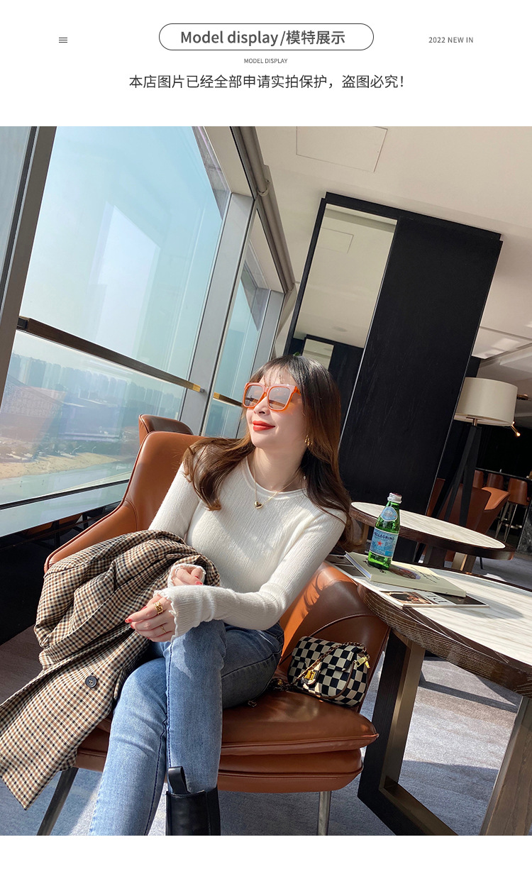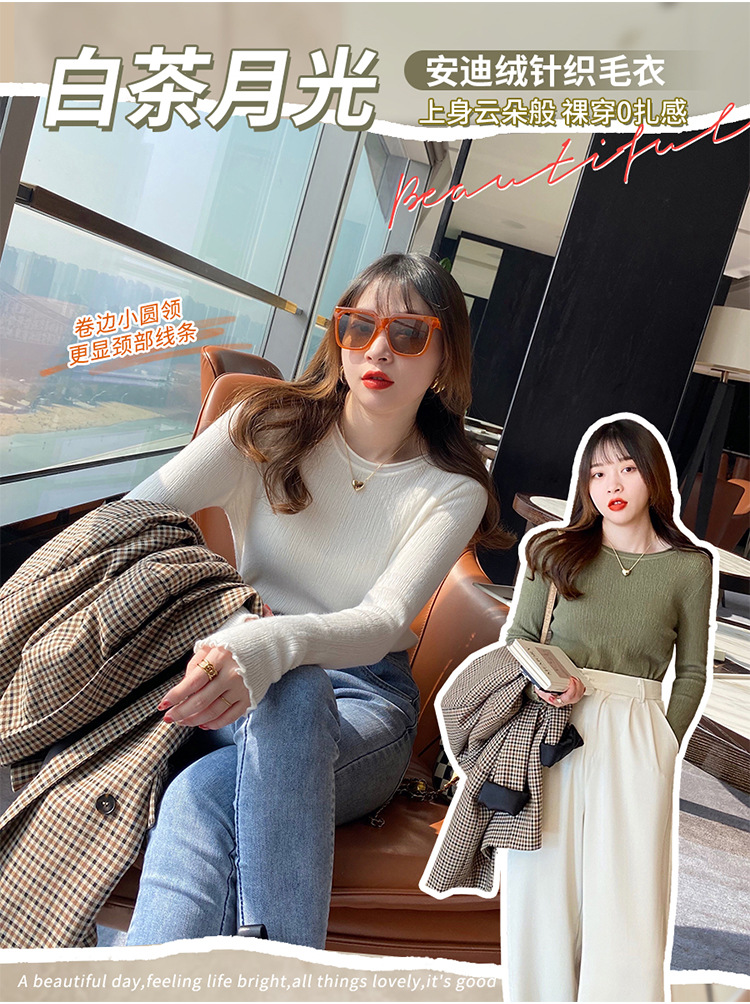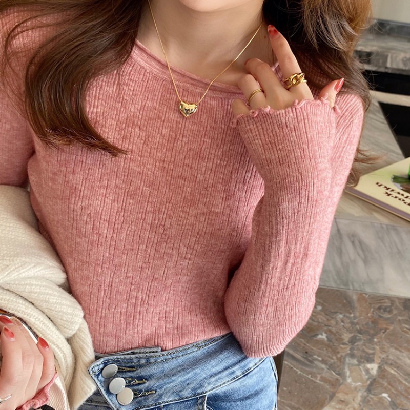 화이트 니트베이스 셔츠 여성용 봄과 가을 웨스턴 스타일 내부 슬림 핏 스웨터 디자인 틈새 긴팔 탑