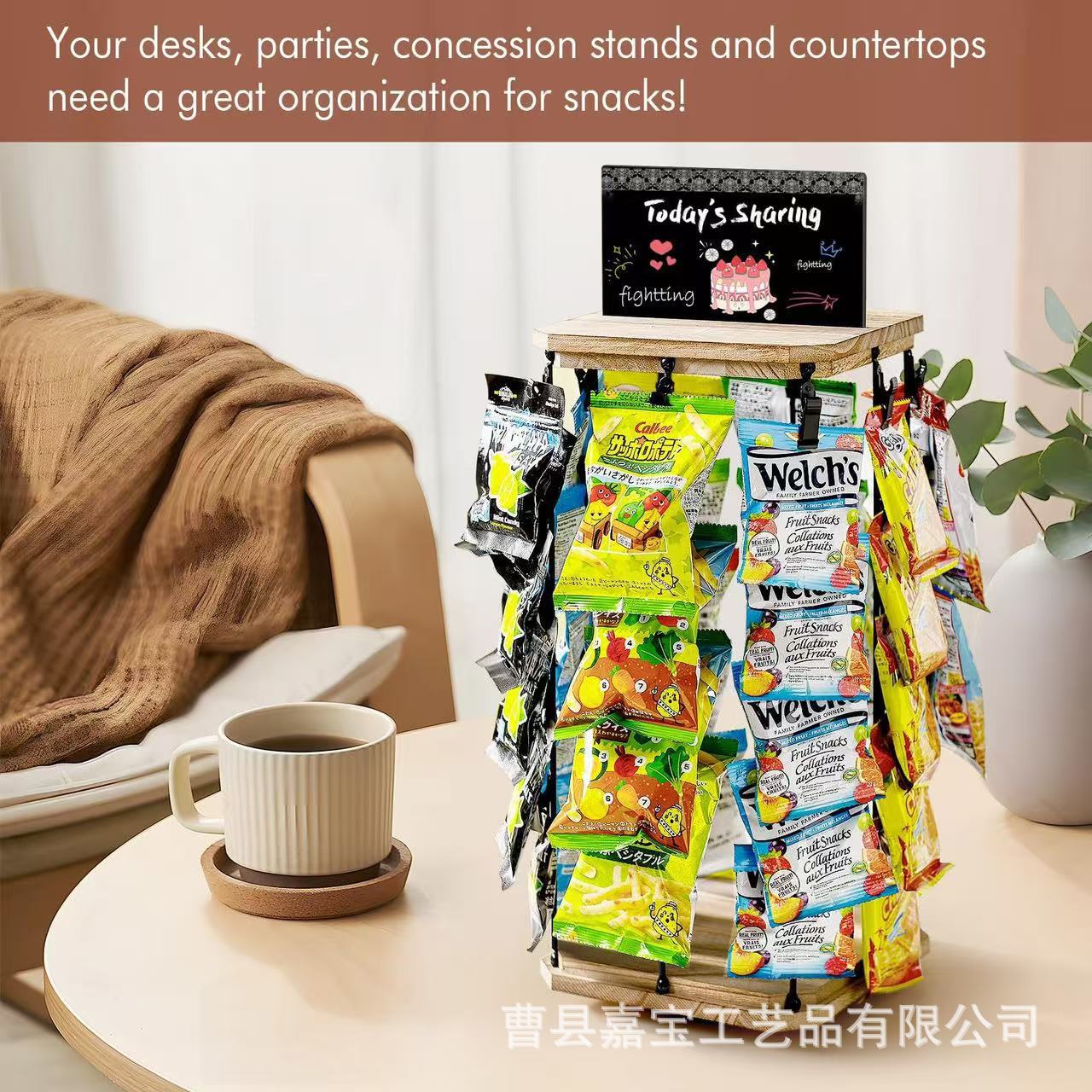 나무 탁상용 사탕 보관대 회전식 감자칩 간식 보관대 원목 다용도 사탕 진열대