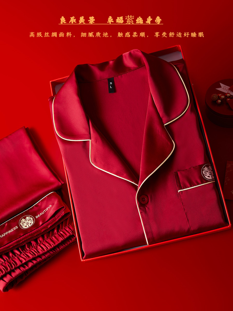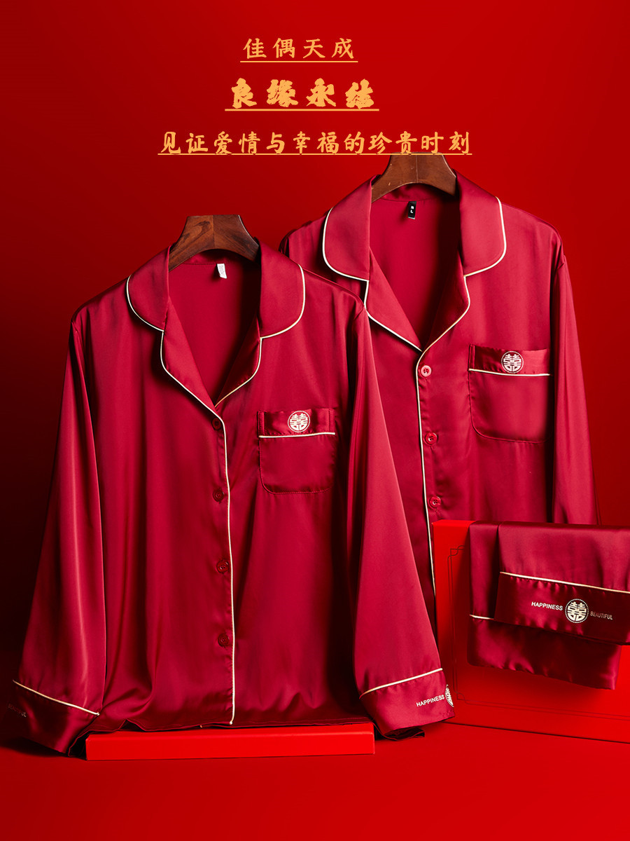 빨간 하이 엔드 웨딩 신혼 부부 세트 하이 엔드 센스 형 신부 동반 잠옷 여성, 새 커플 홈 옷 보내기스토어 가기