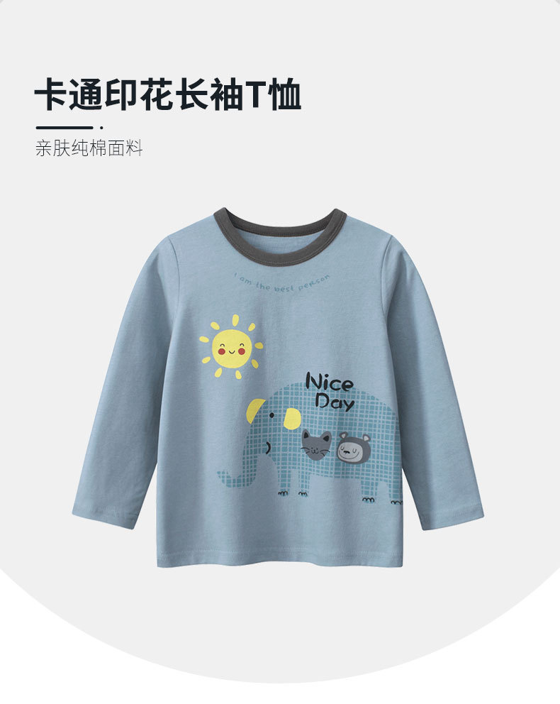 27 키즈 아동복 가을 새로운 아동복 셔츠 소년 긴팔 티셔츠 크루 넥 아기 옷 한 세대 머리카락