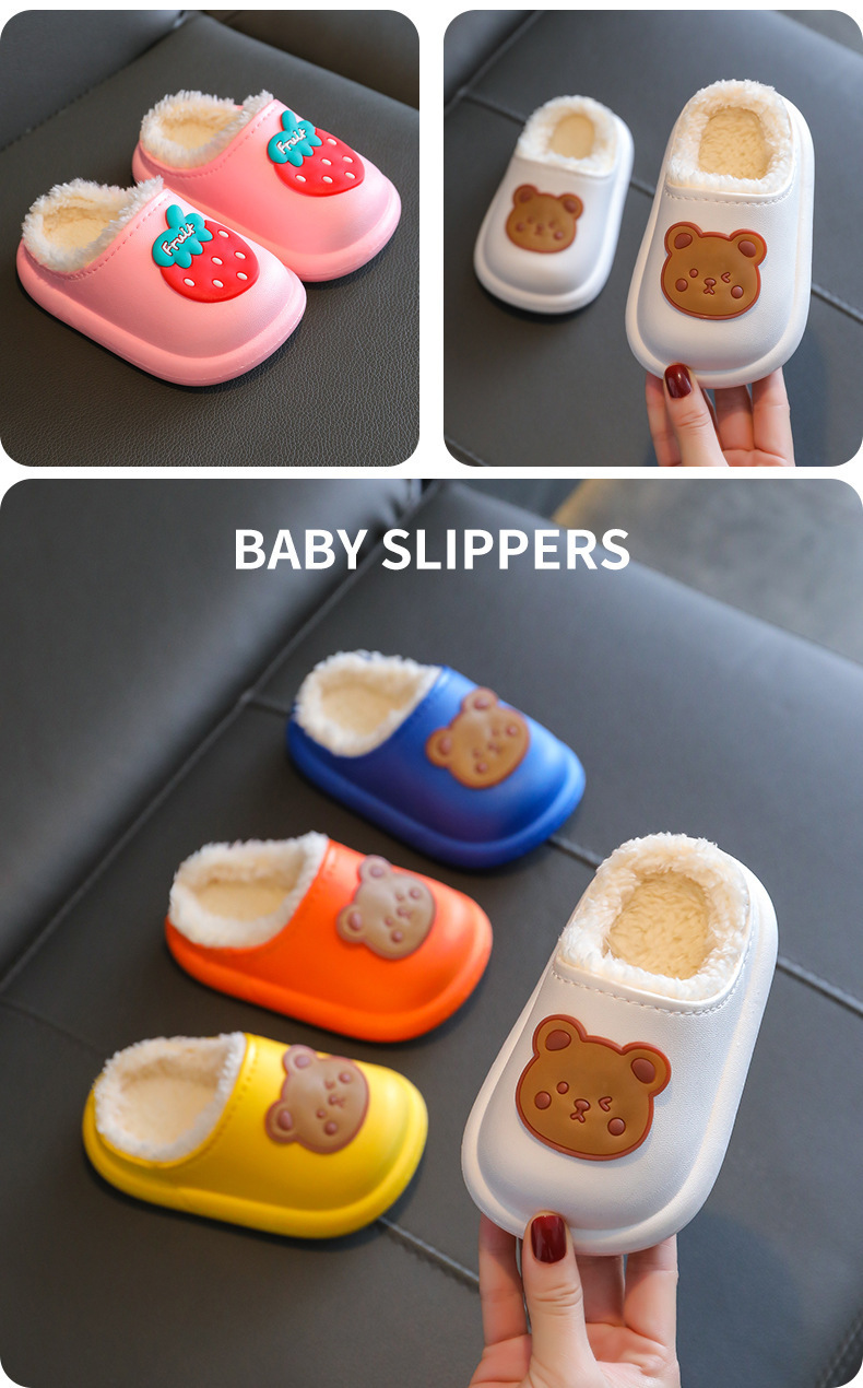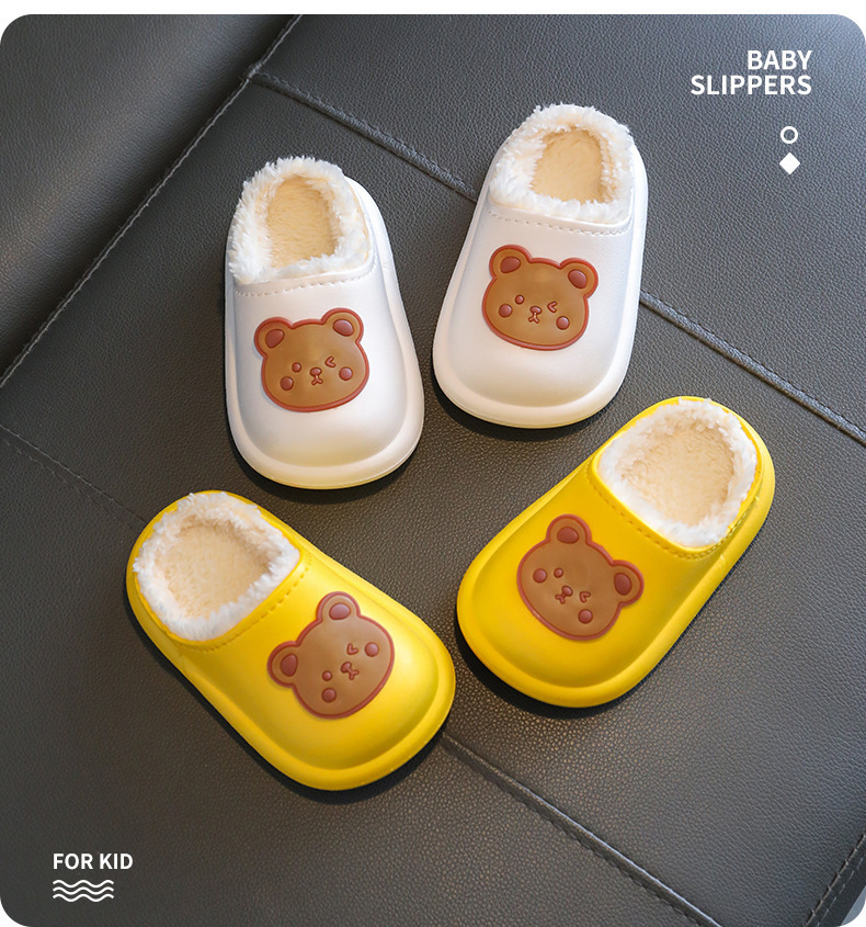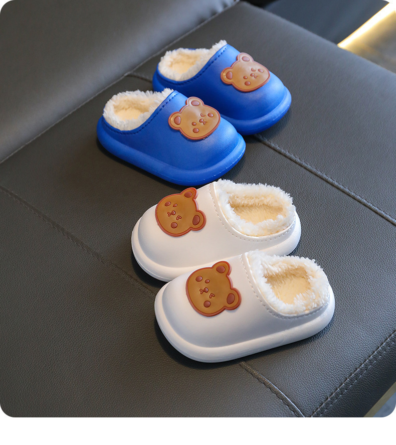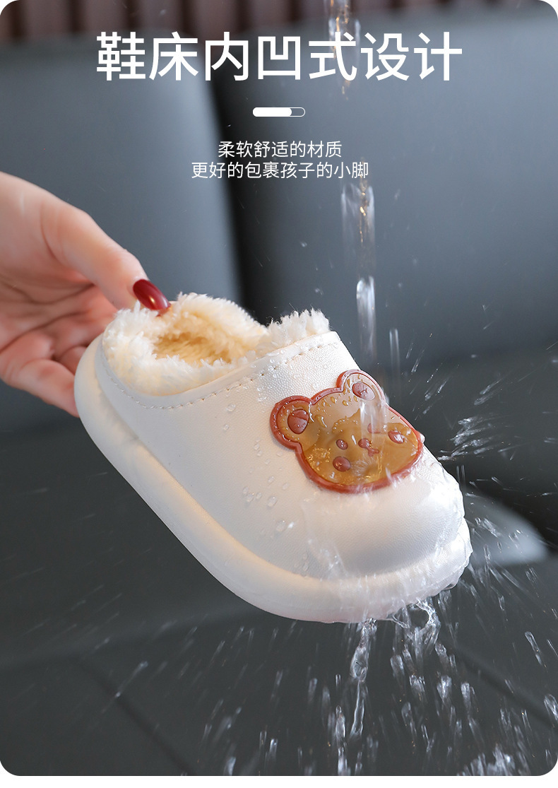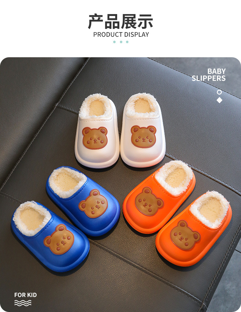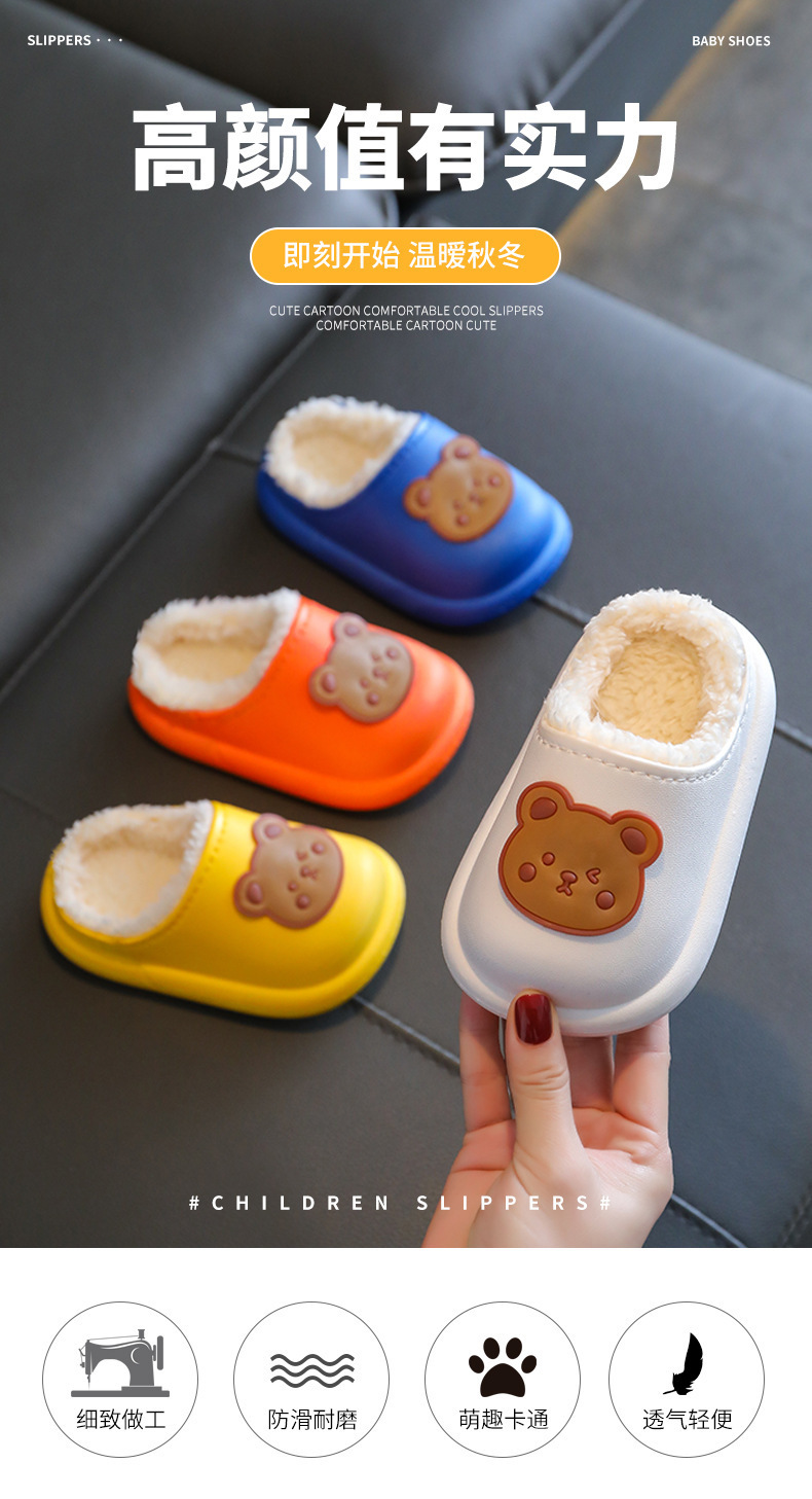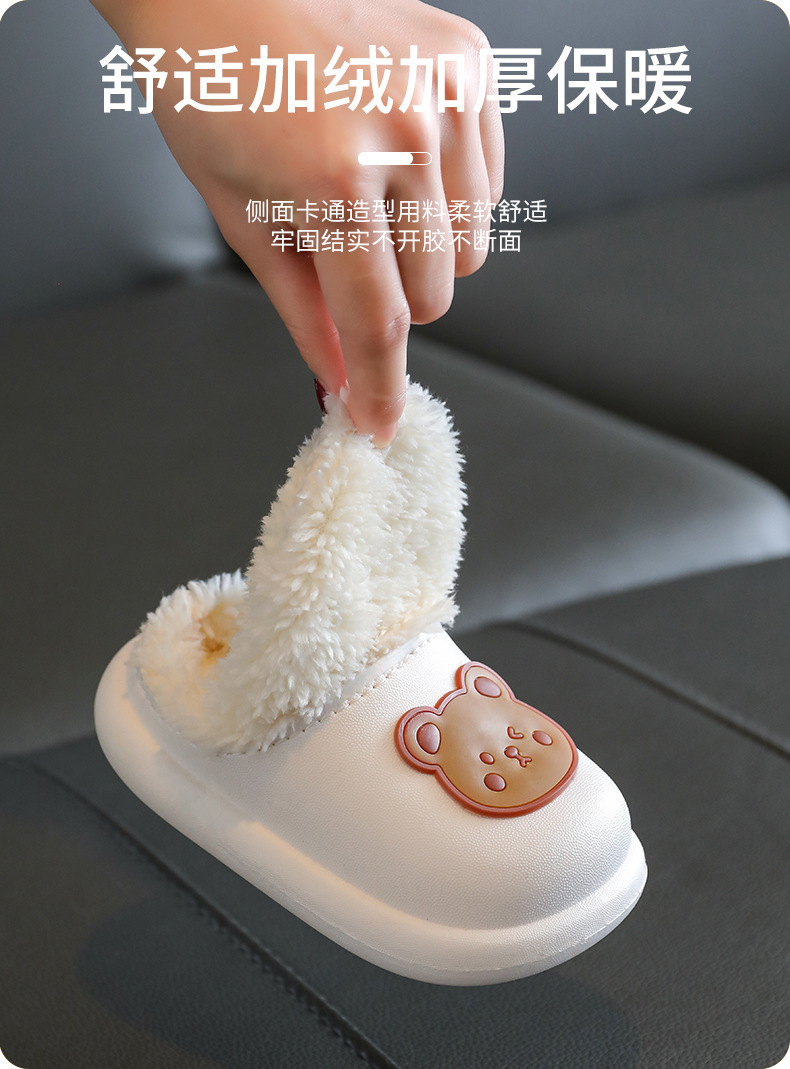 2025 가을과 겨울 새로운 귀여운 곰 어린이 면화 슬리퍼 소년과 소녀 미끄럼 방지 방수 따뜻한 마오 마오 슬리퍼