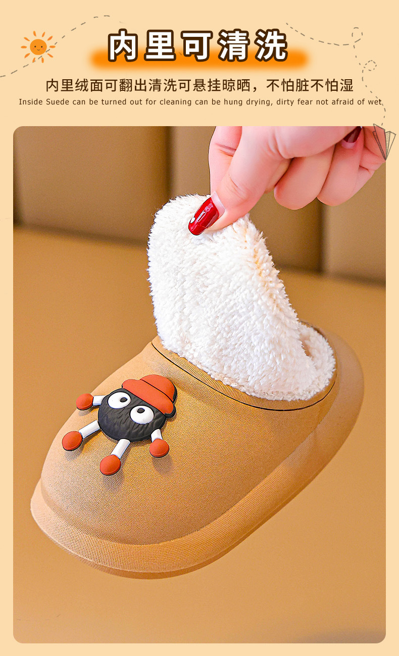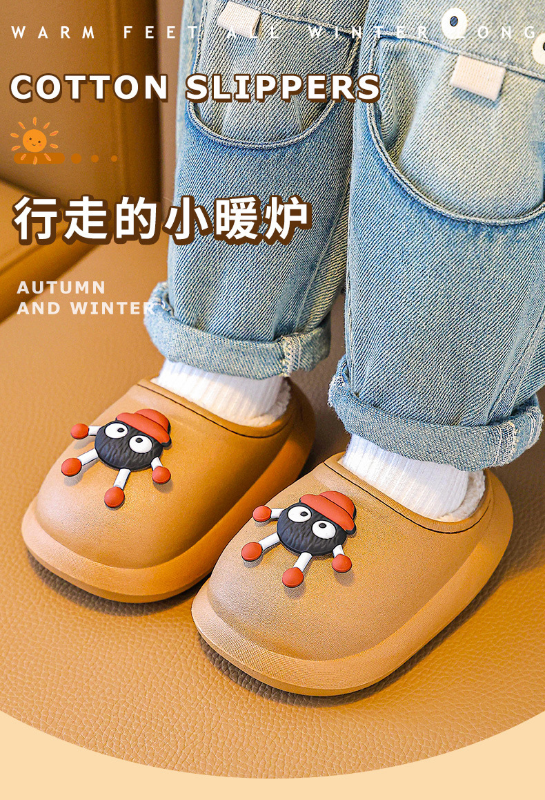 2025 가을과 겨울 새로운 귀여운 곰 어린이 면화 슬리퍼 소년과 소녀 미끄럼 방지 방수 따뜻한 마오 마오 슬리퍼스토어 가기