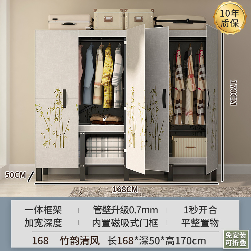 접이식 옷장, 설치 불필요, 자석 도어, 간편한 천 옷장, 가정용 침실, 강화된 전체 스틸 프레임, 옷걸이스토어 가기