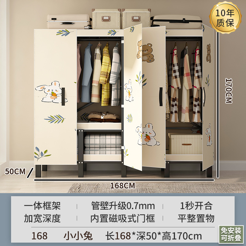 접이식 옷장, 설치 불필요, 자석 도어, 간편한 천 옷장, 가정용 침실, 강화된 전체 스틸 프레임, 옷걸이