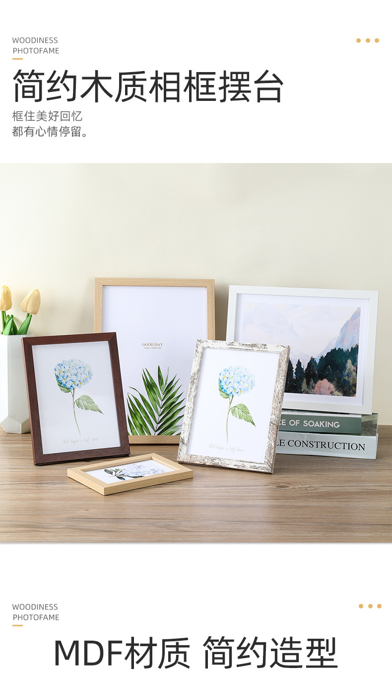 간단한 나무 사진 프레임 세트 테이블 7 인치 8 인치 10 인치 로그 컬러 액자 벽 사진 벽 어린이 탑재 그림 프레임