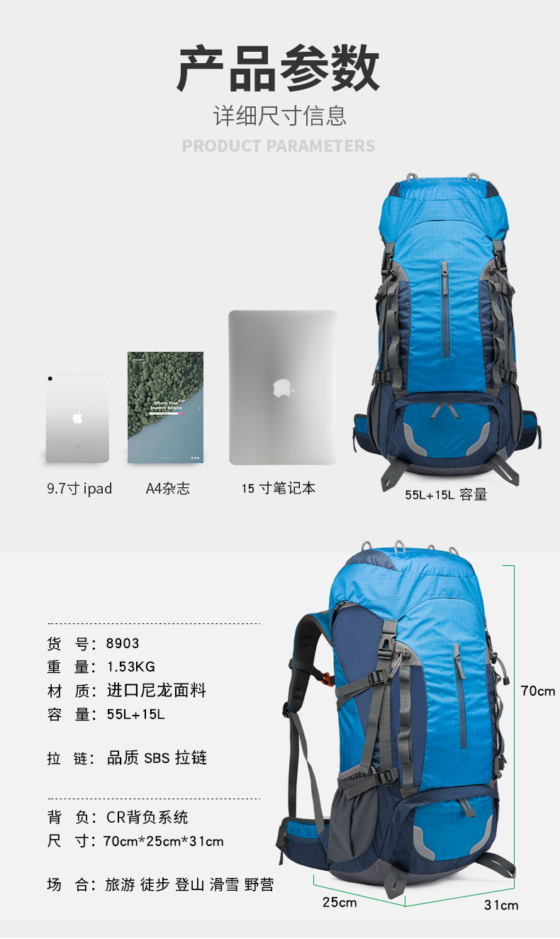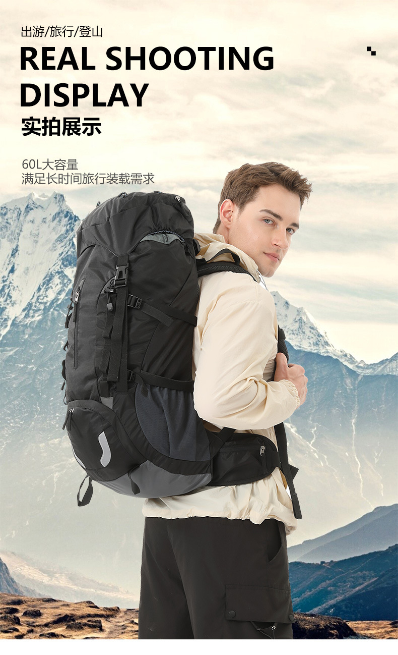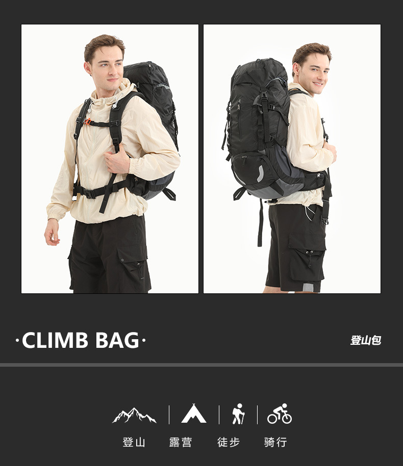 야외 스포츠 등산 가방 55 리터 대용량 2025 가을 새로운 배낭 하이킹 캠핑 여행 배낭 남자 가방