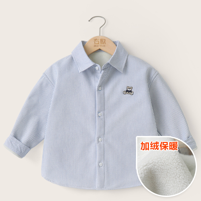 소년 기모 두꺼운 줄무늬 긴 소매 셔츠 겨울 가을과 겨울 어린이 의류 아기 어린이 셔츠 어린이 소년의 겨울 의류스토어 가기