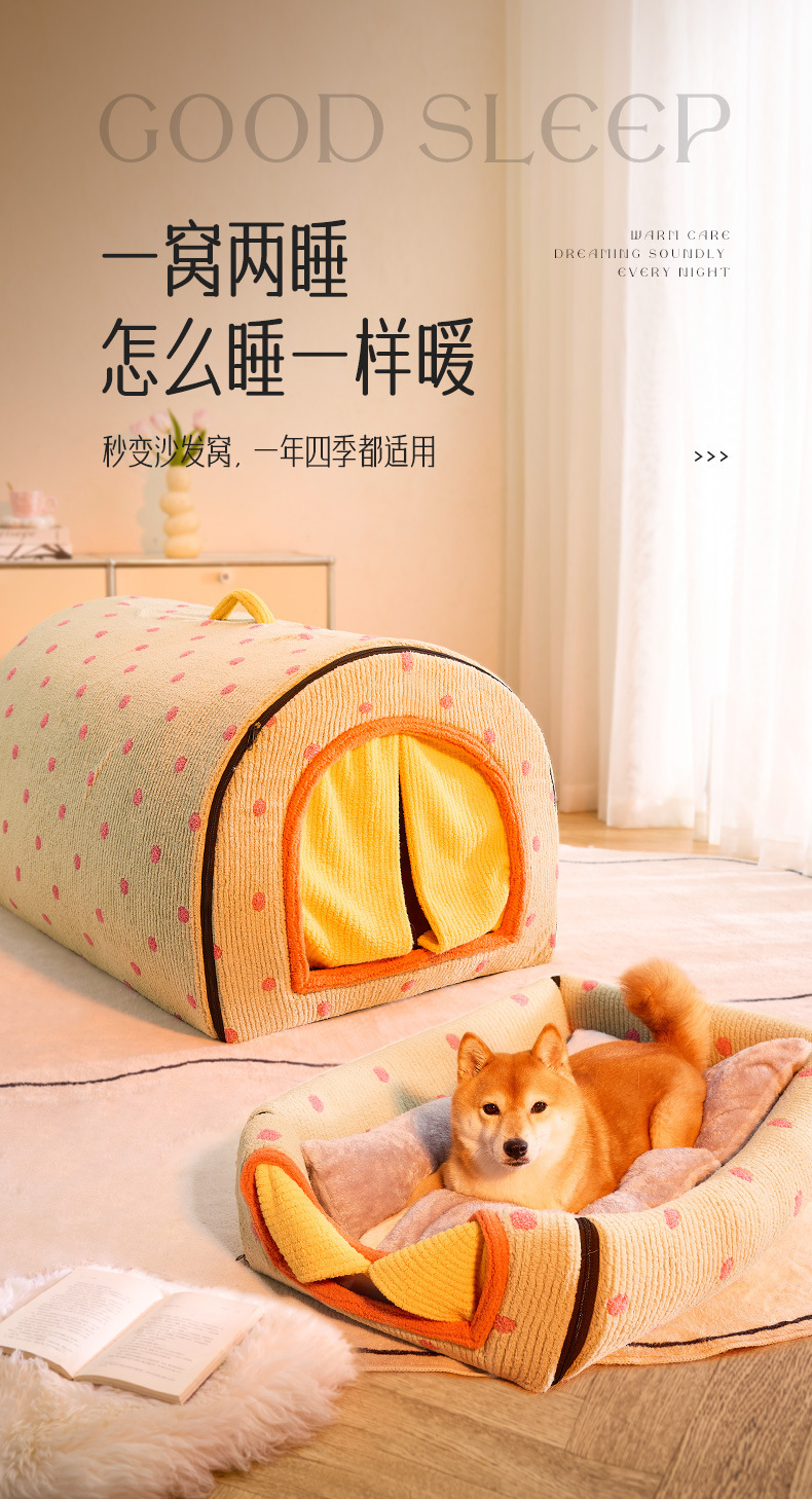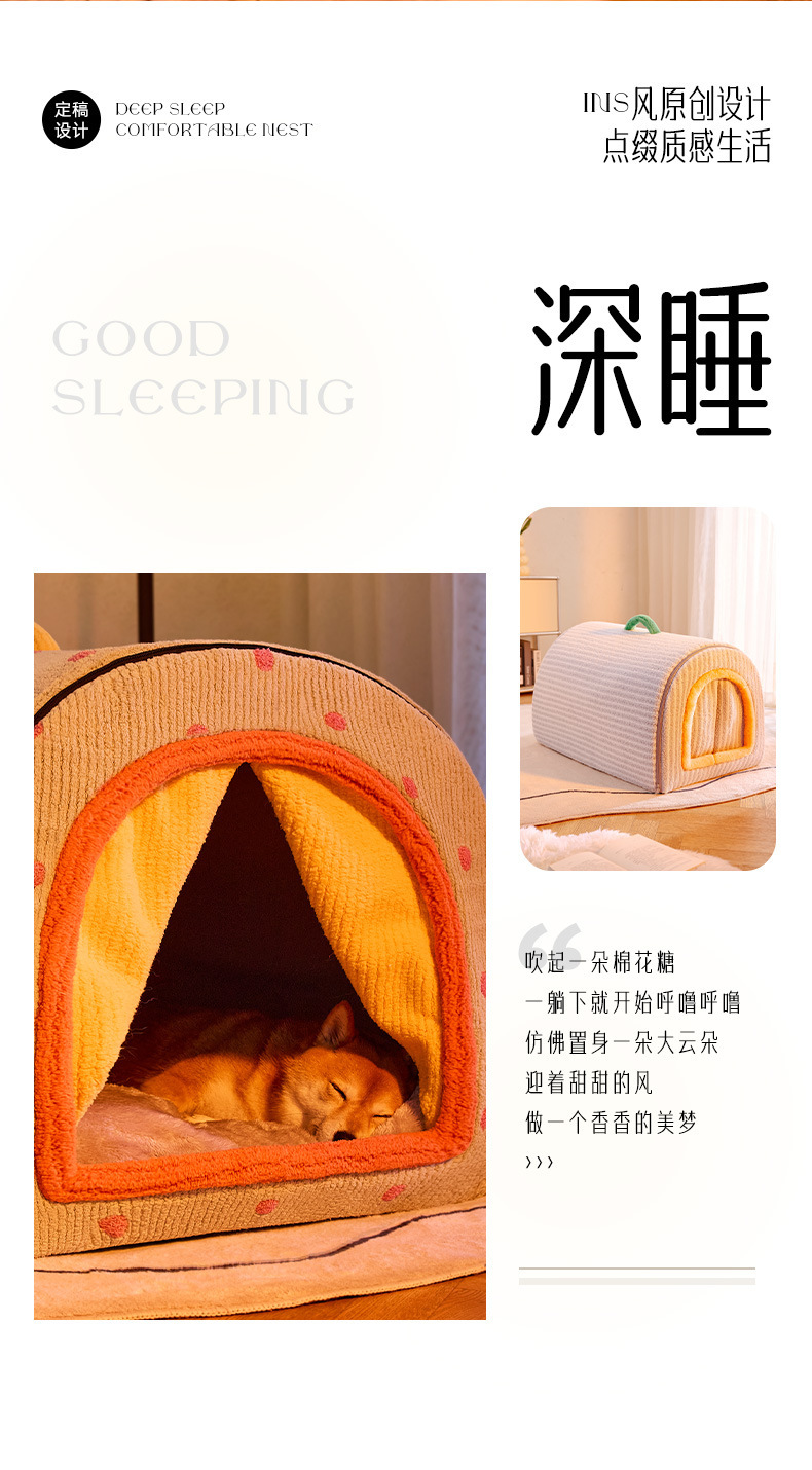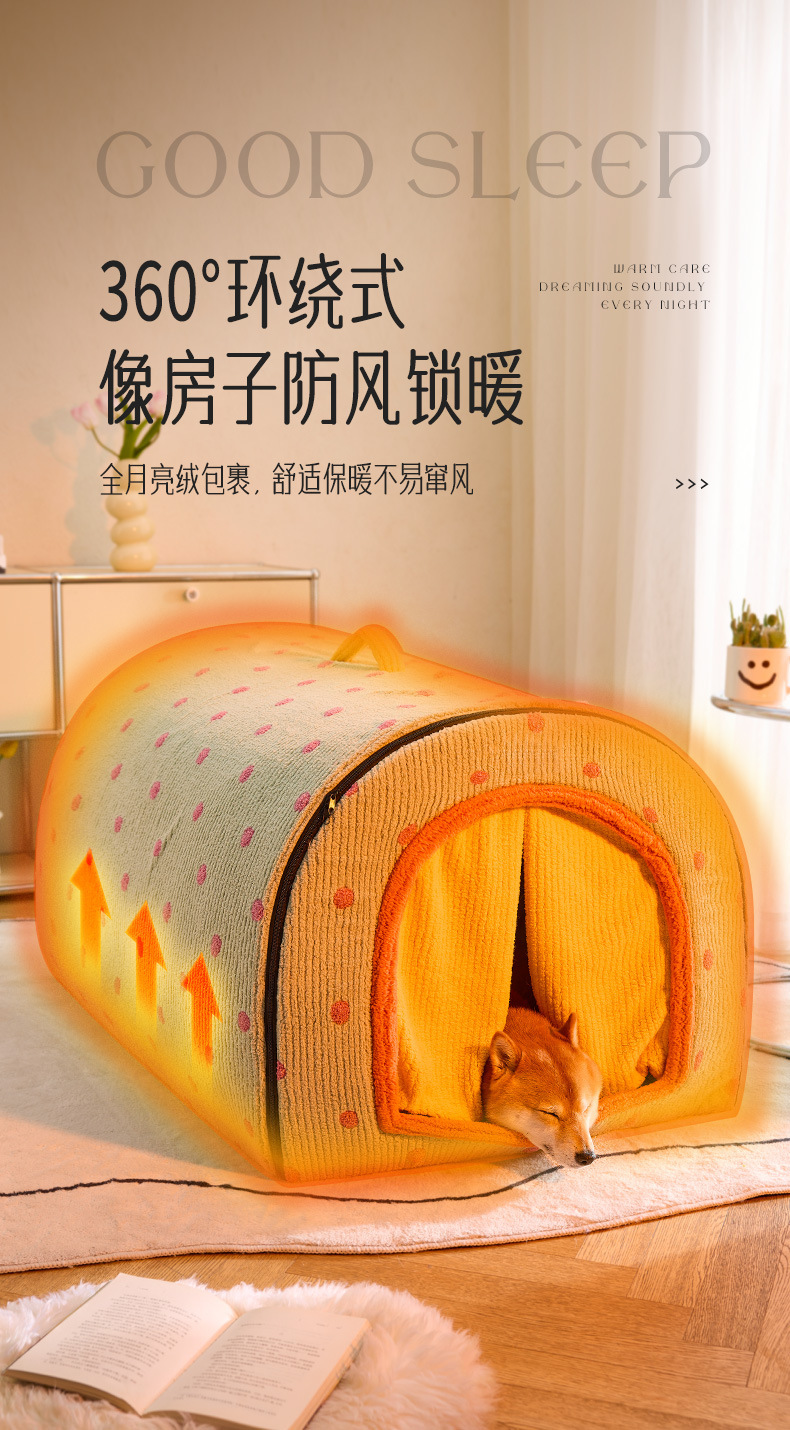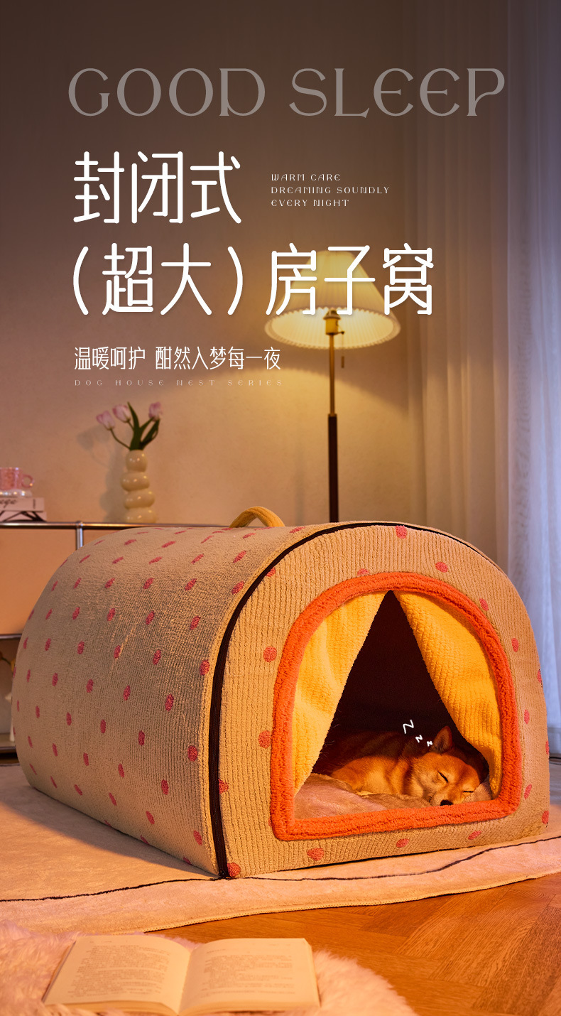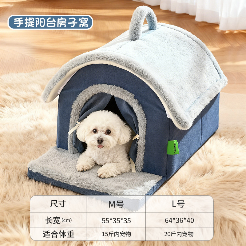 가을과 겨울 봉제 집 개 사육장 따뜻한 탈착식 및 빨 수있는 고양이 사육장은 4 시즌 골든 리트리버 큰 개 폐쇄 애완 동물 침대를 두껍게 만들었습니다.스토어 가기