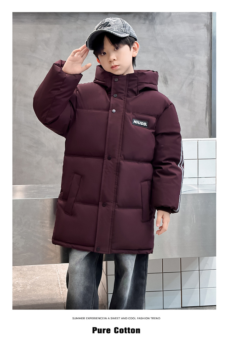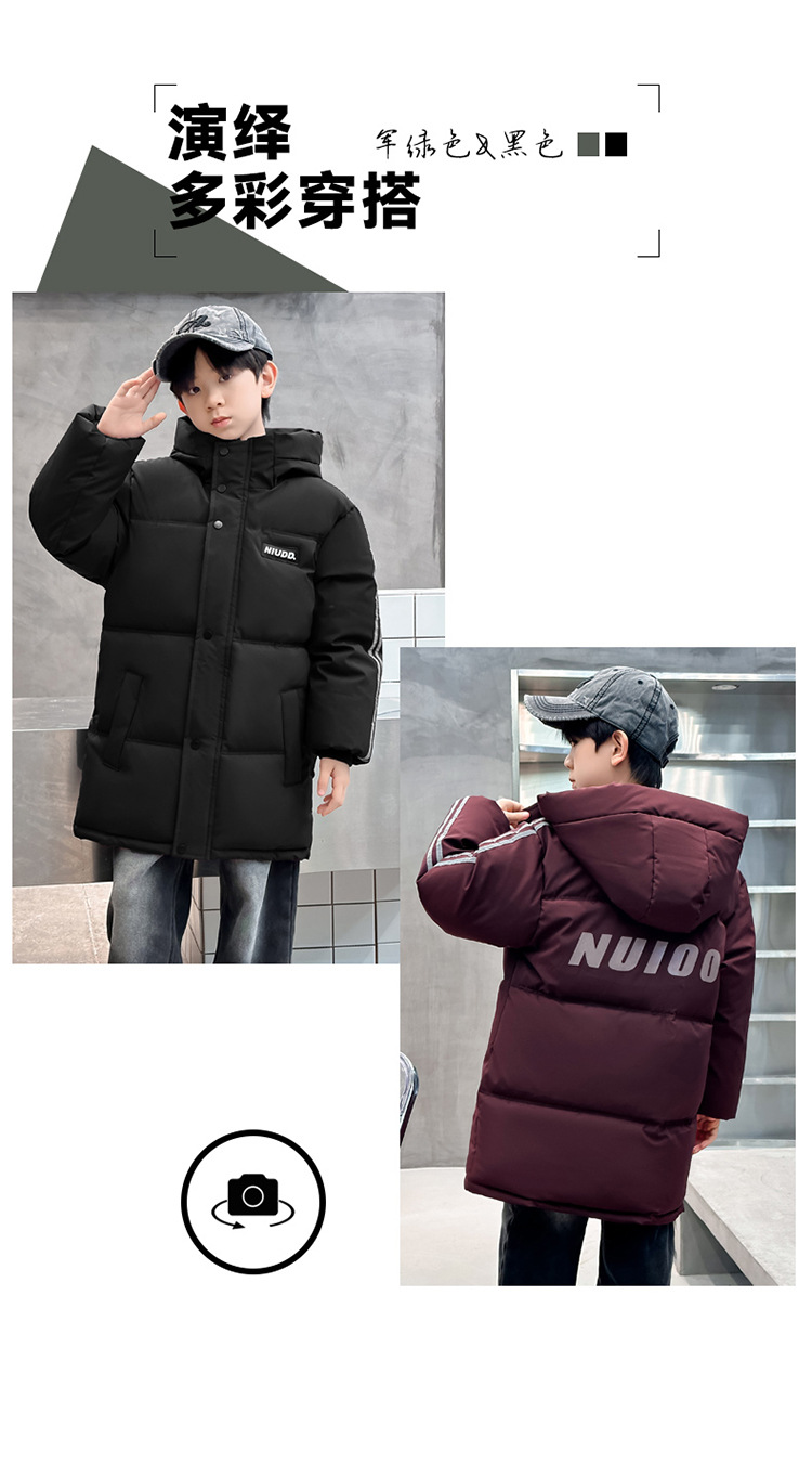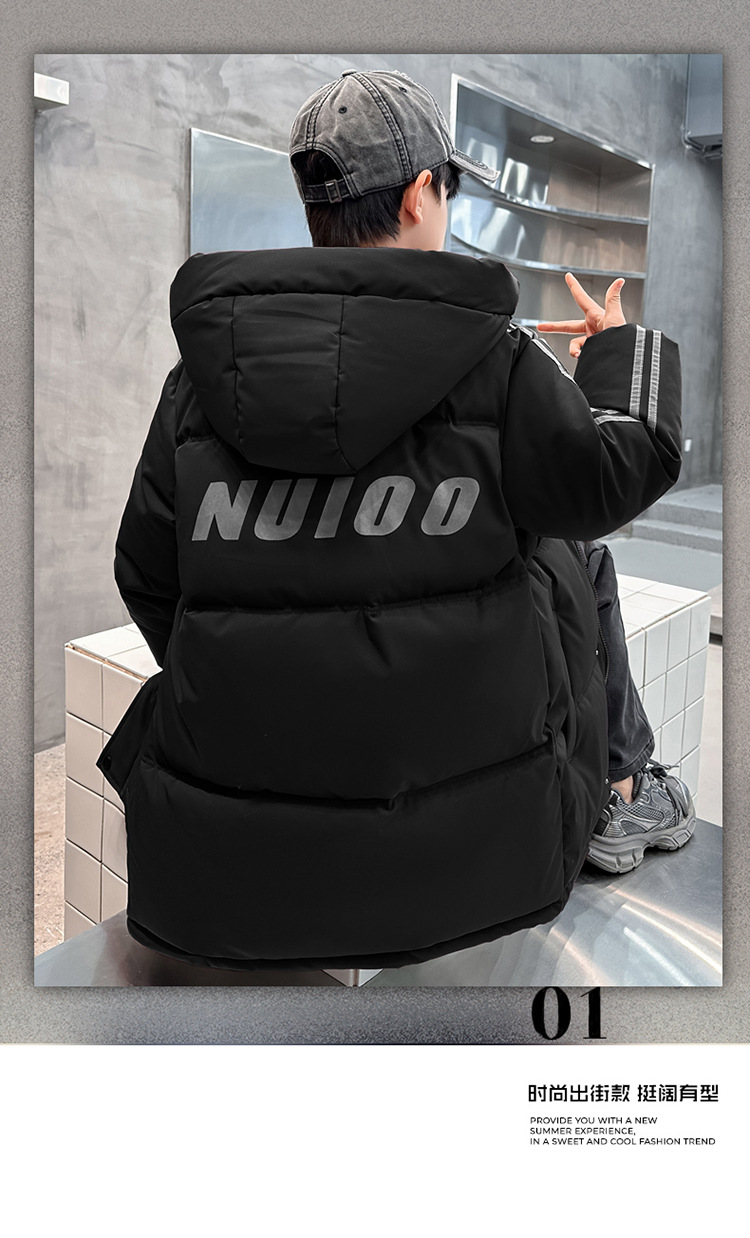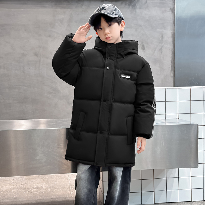 남학생 중장 면화 패딩 코트 2024 겨울 새 스타일 코튼 패딩 코트 중년 및 대형 어린이 두꺼운 따뜻한 후드 방탄 코트스토어 가기