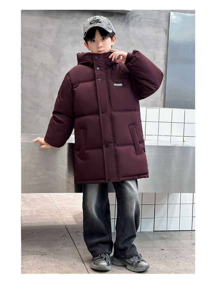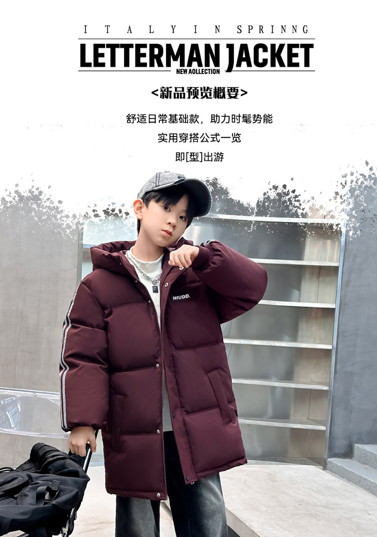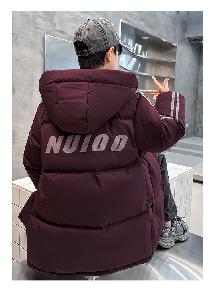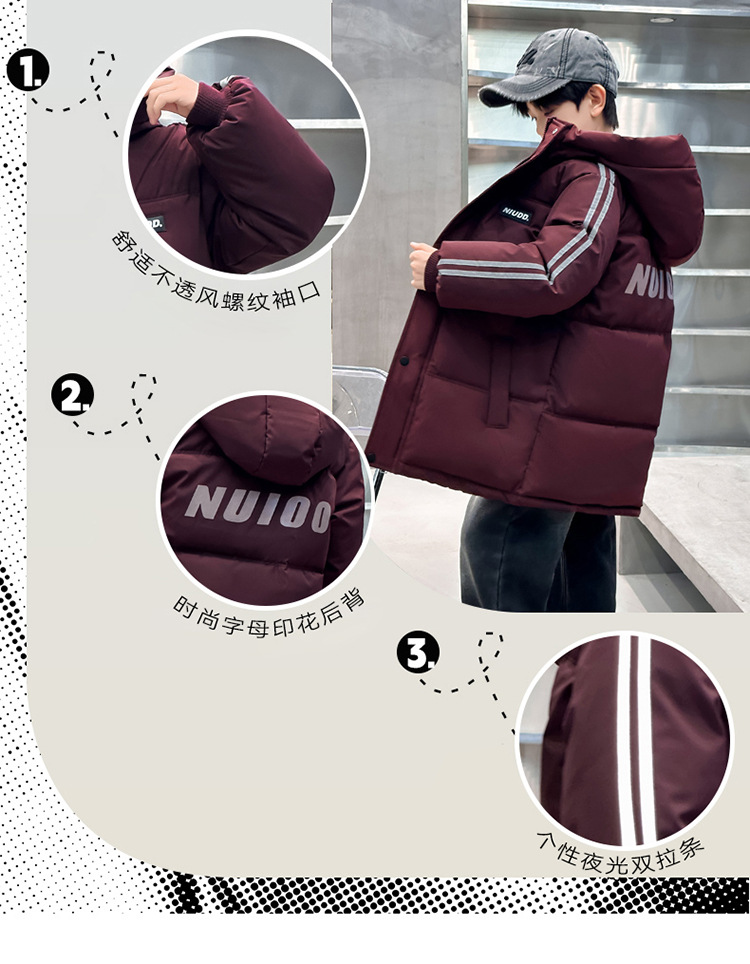 남학생 중장 면화 패딩 코트 2024 겨울 새 스타일 코튼 패딩 코트 중년 및 대형 어린이 두꺼운 따뜻한 후드 방탄 코트스토어 가기