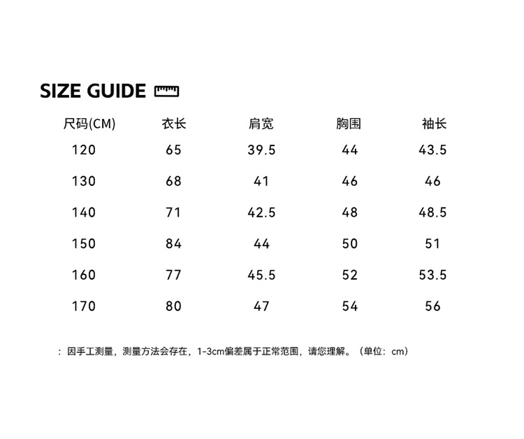 • 키 115cm 정도의 경우 120사이즈를 권장합니다.