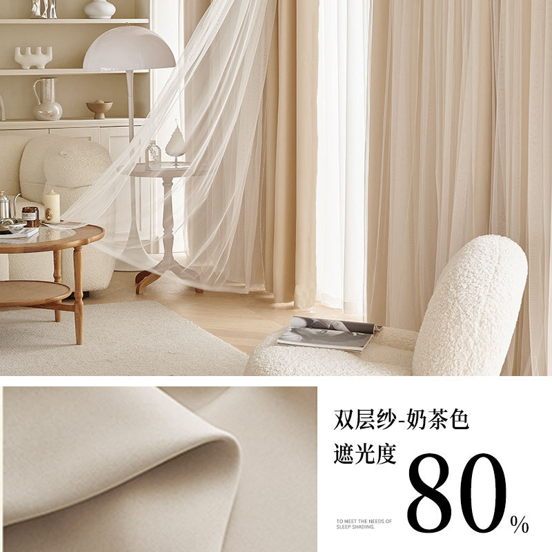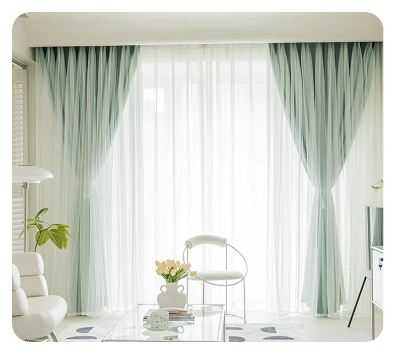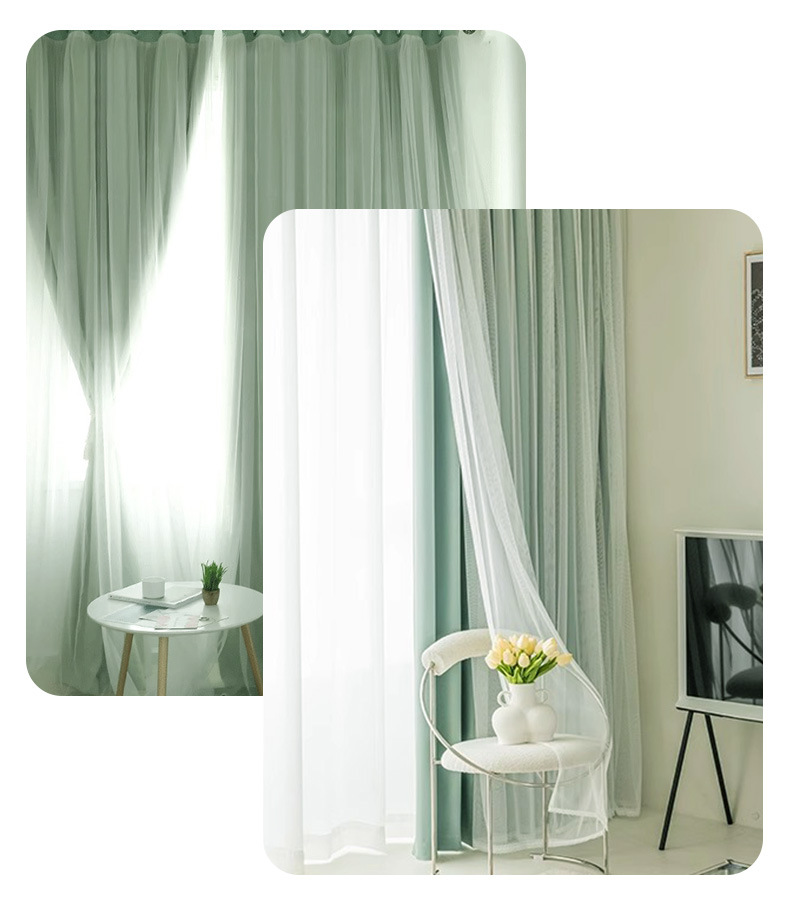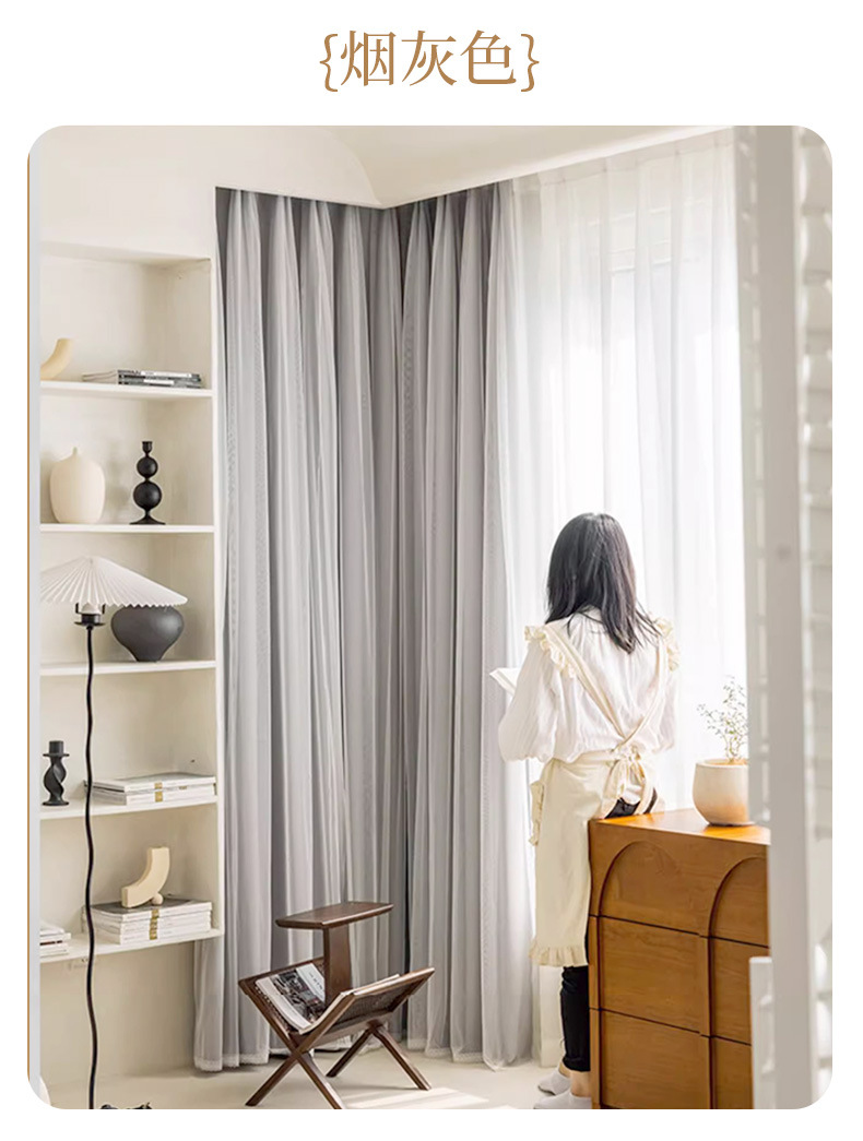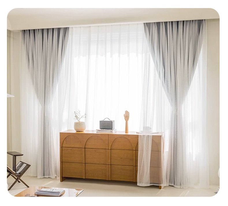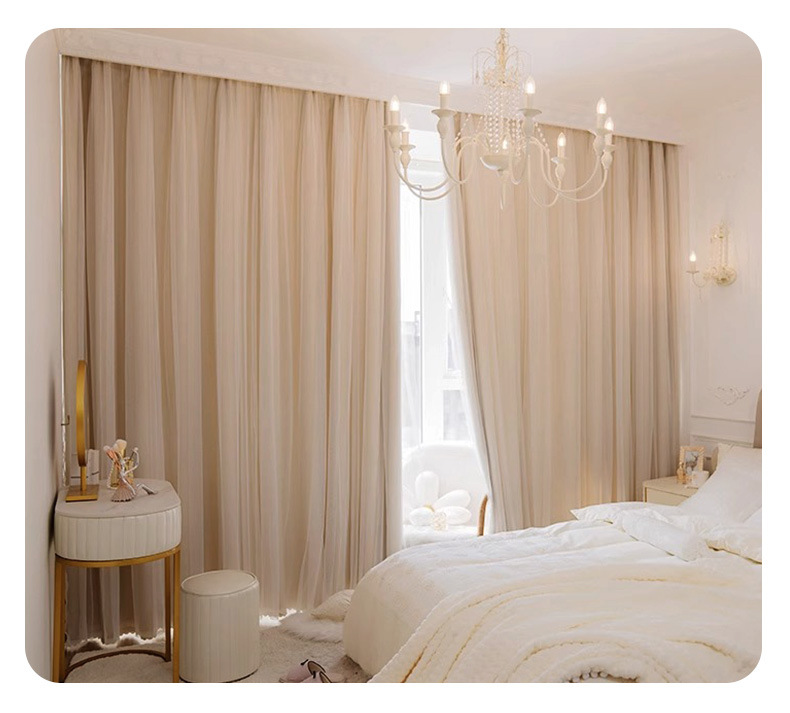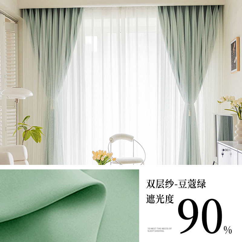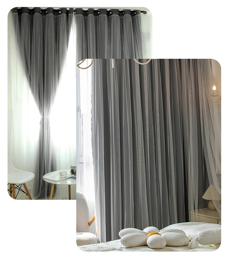 고급 슈퍼 요정 원피스 거즈 더블 레이어 커튼 빛 차단 커튼 빛 회색 임대 주택 베드룸스토어 가기