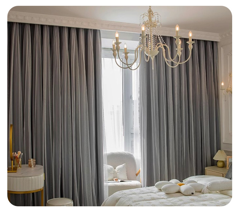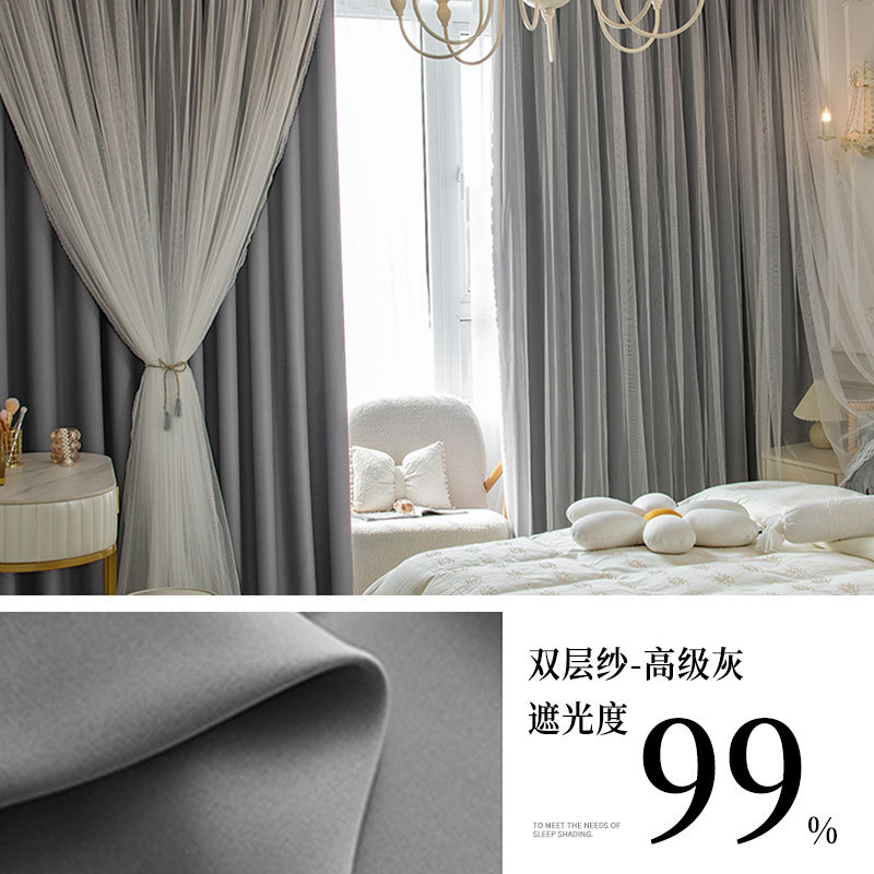 고급 슈퍼 요정 원피스 거즈 더블 레이어 커튼 빛 차단 커튼 빛 회색 임대 주택 베드룸