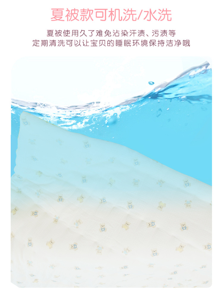 1.有专为婴幼儿生产的可水洗小包被小垫被等。(填充物为全棉可水洗棉絮片)