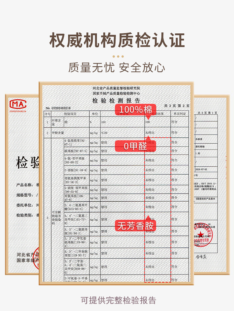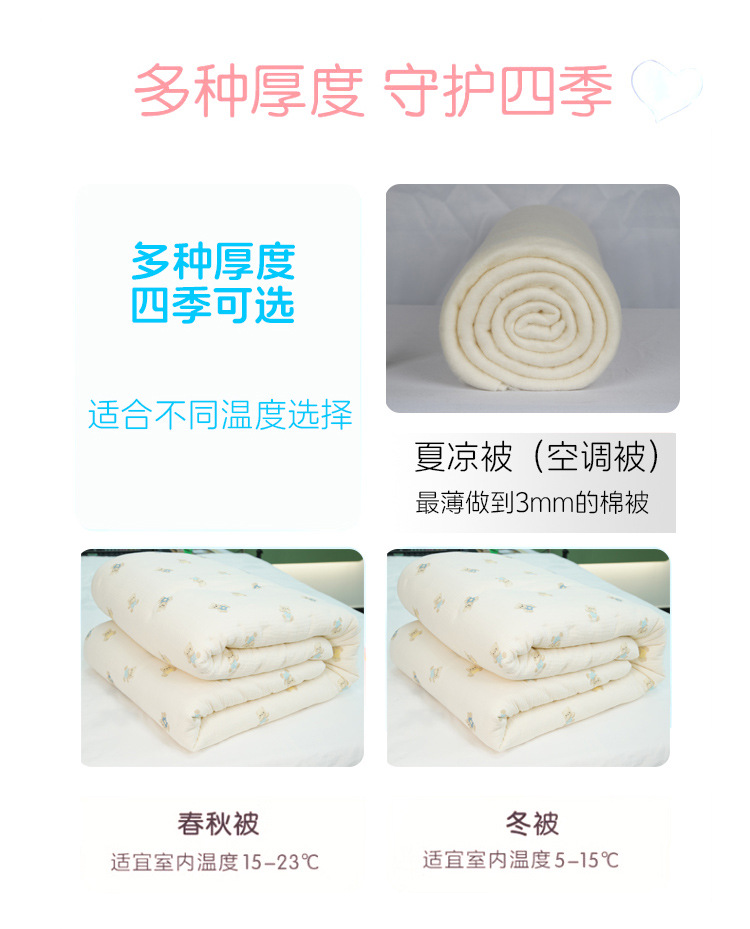 2.春秋以及冬季使用的棉被,填充物为新疆长绒棉。(可提供检验报告,支持检验)