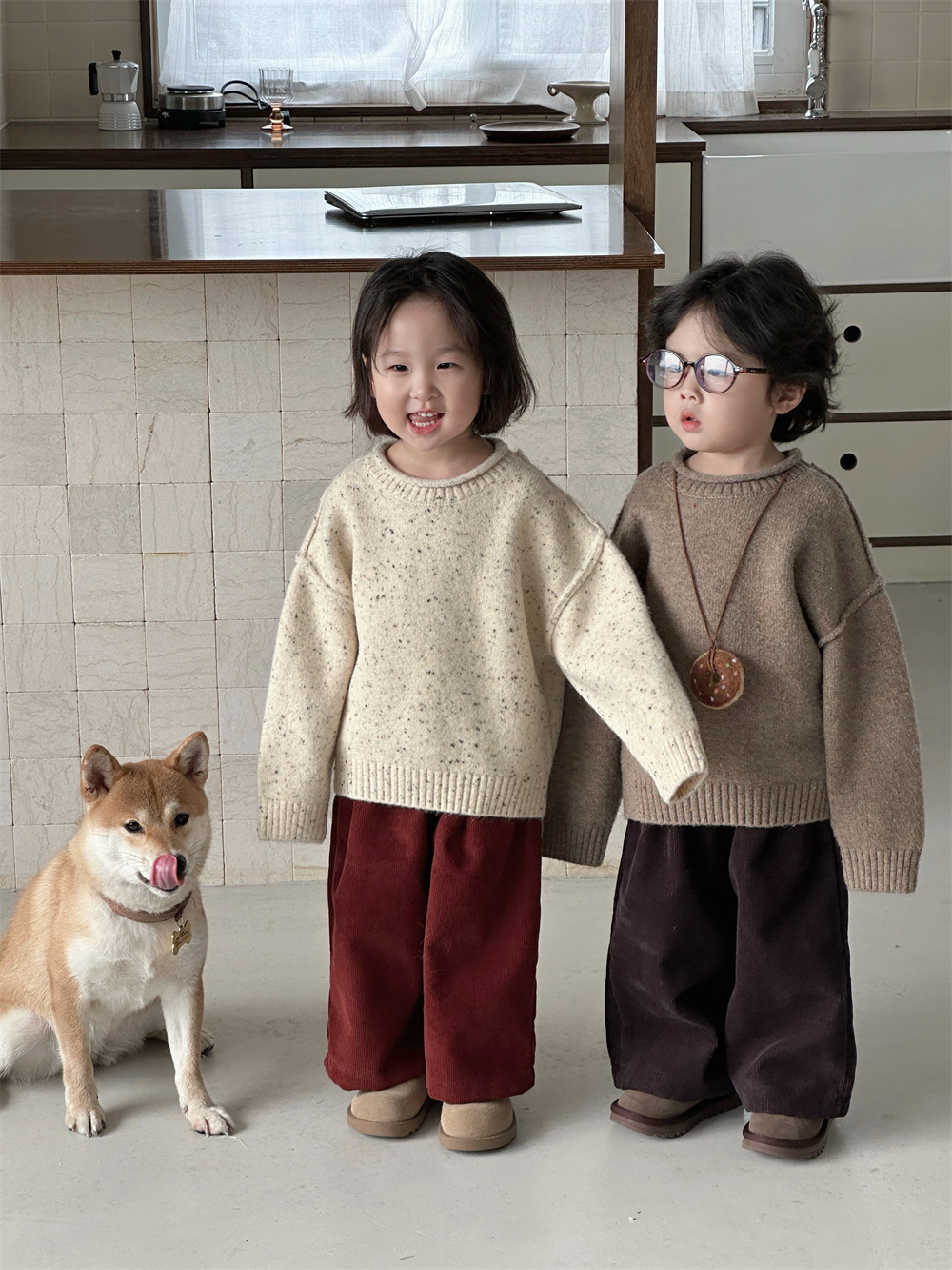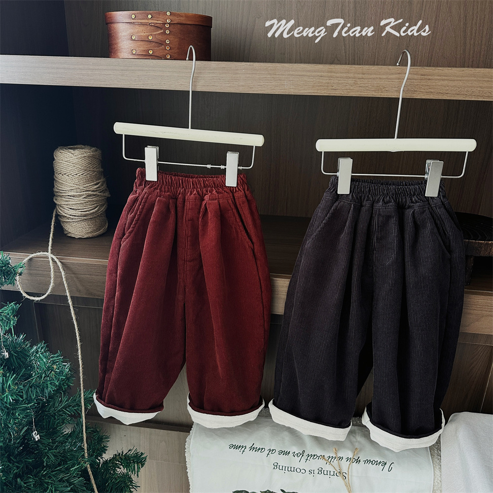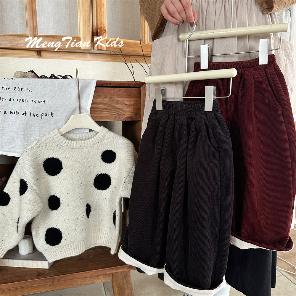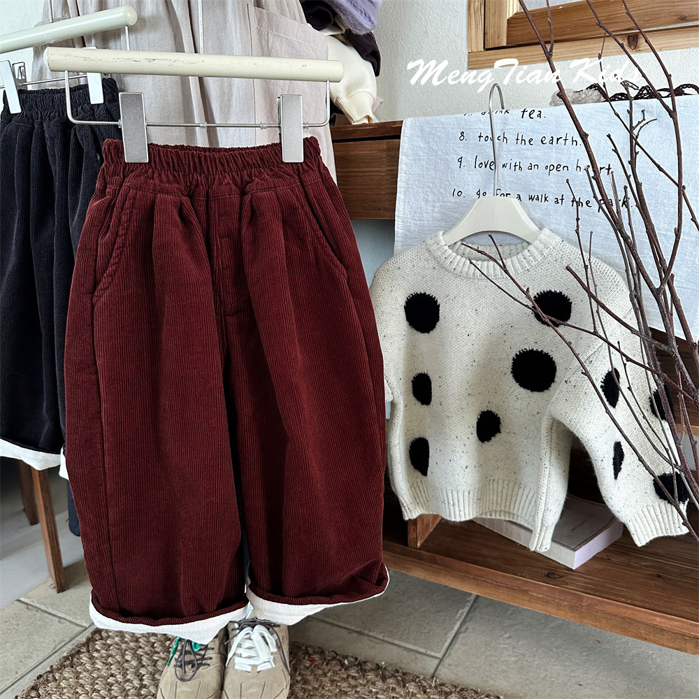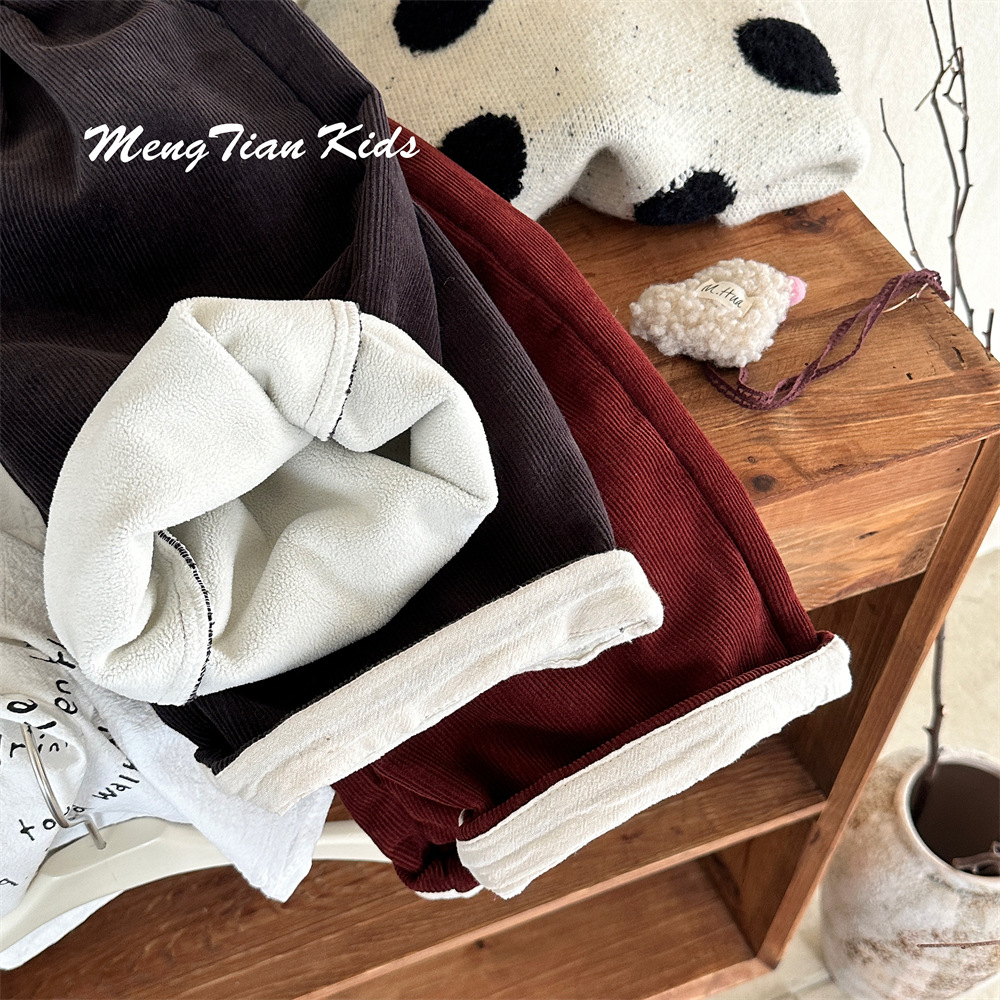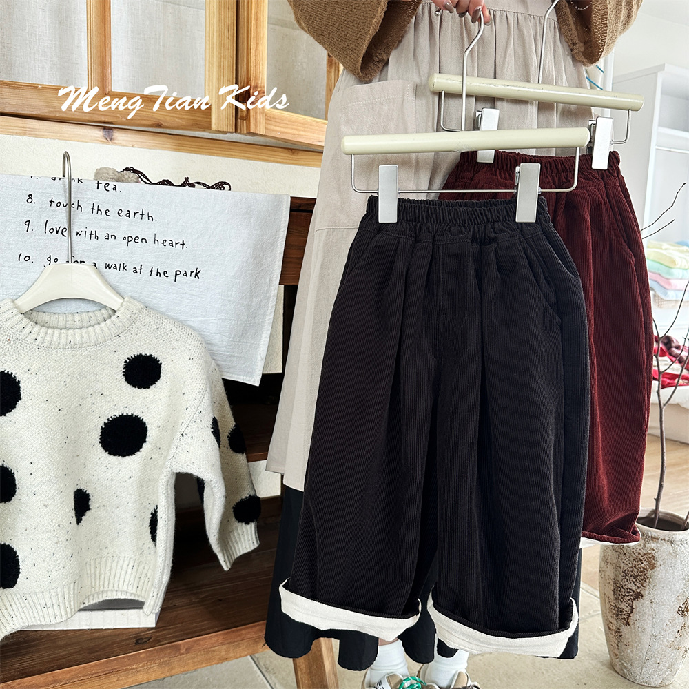 Montaigne 한국 아동복 어린이 레트로 모리 스타일 일본과 한국 벨벳 기모 캐주얼 바지 남녀 보물 2024 가을 겨울 새스토어 가기