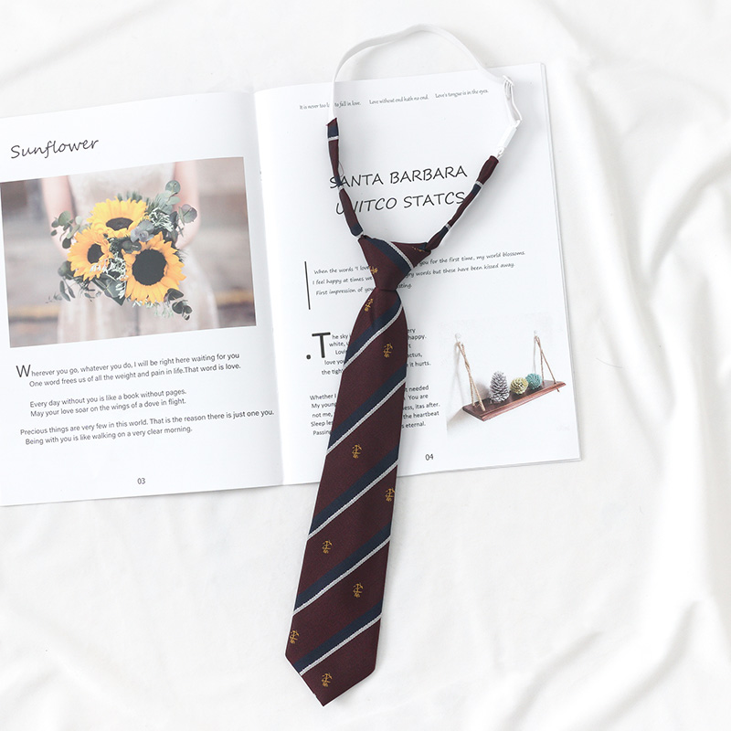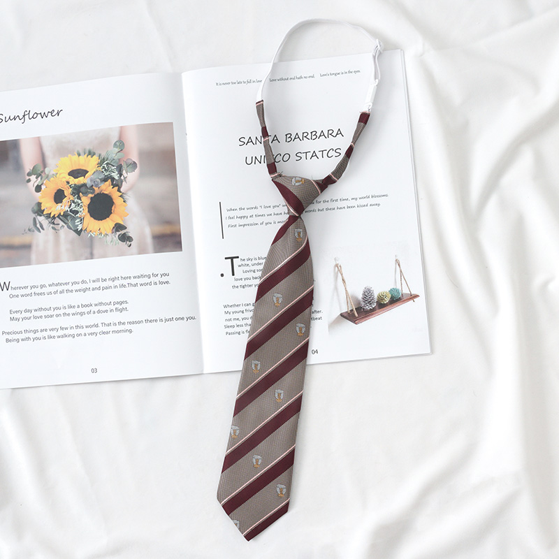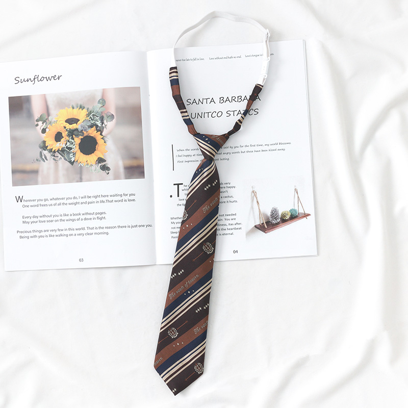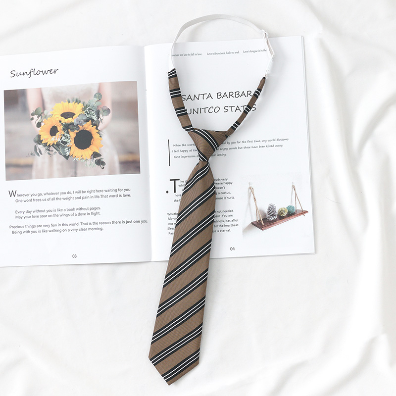 커피 다크 브라운 JK 넥타이 소녀 줄무늬 게으른 히트 프리 장식 빈티지 학생 대학 스타일 DK 남성 셔츠 액세서리