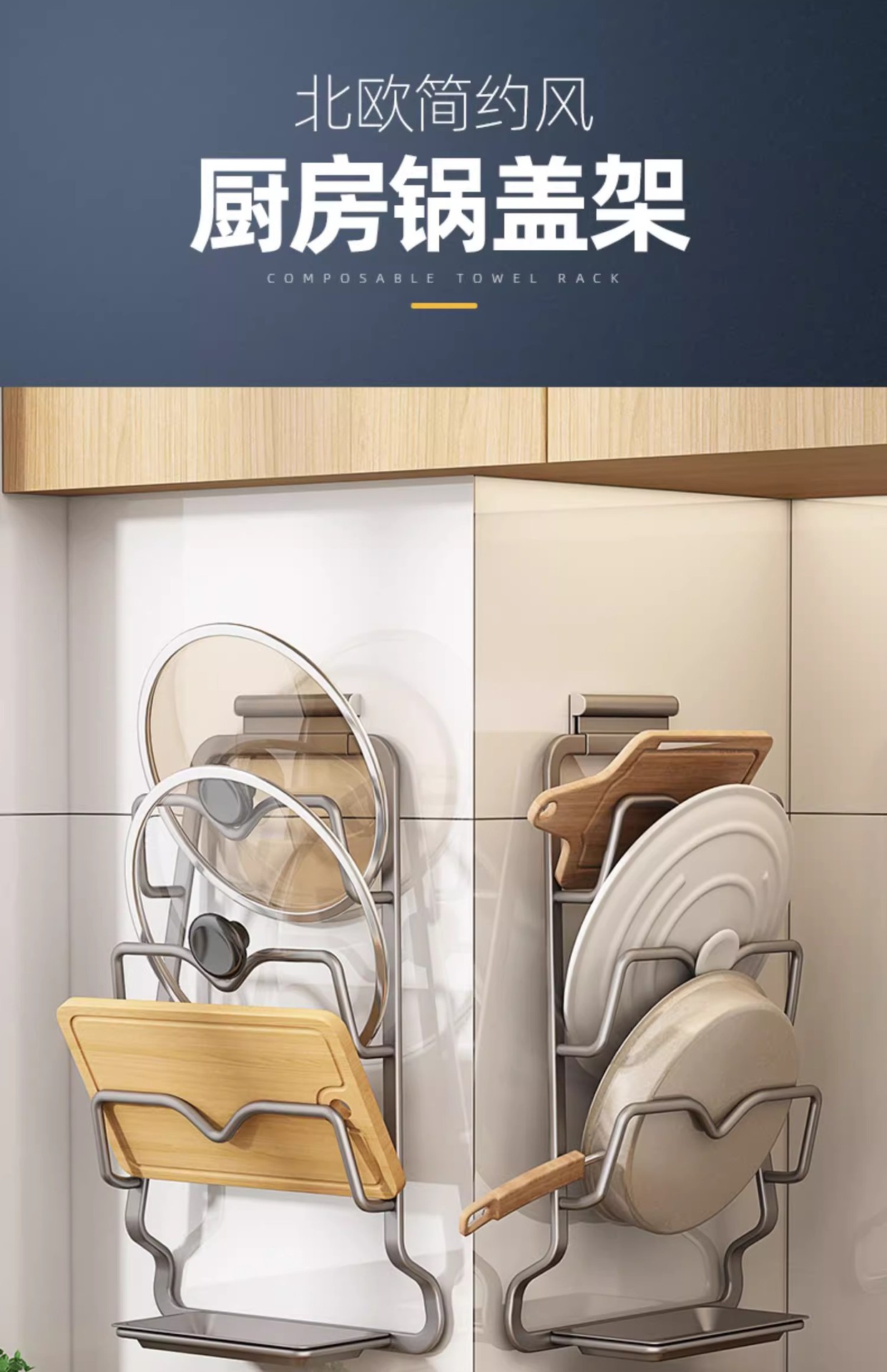 주방 냄비 커버 선반 다기능 벽걸이 플레이서 벽걸이 형 스토리지 랙 펀칭 도마 스토리지스토어 가기